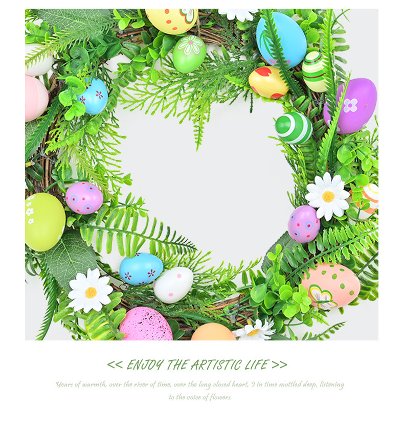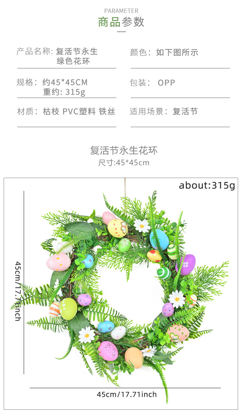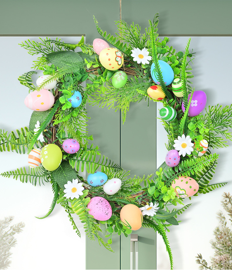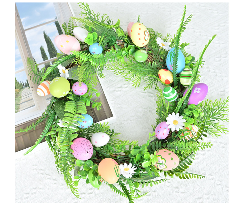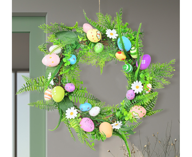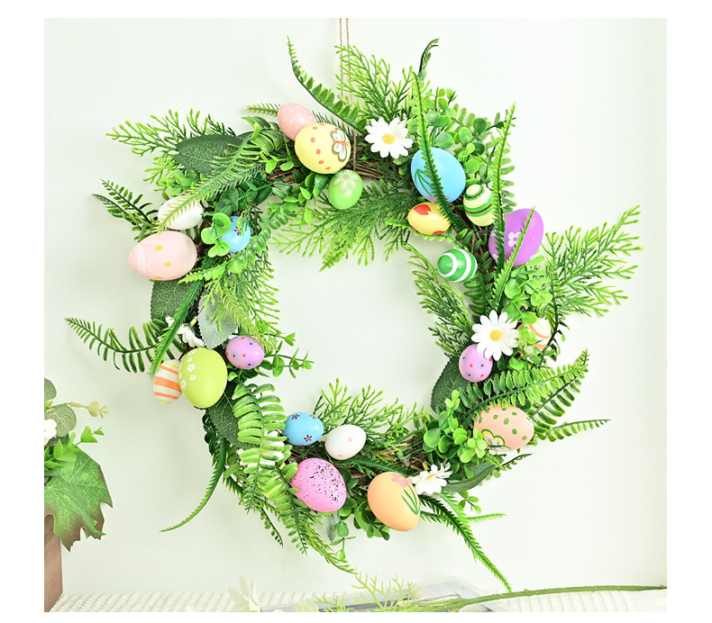 跨境复活节花环仿真水草藤圈花环门庭挂饰复活节装饰品彩色复活蛋