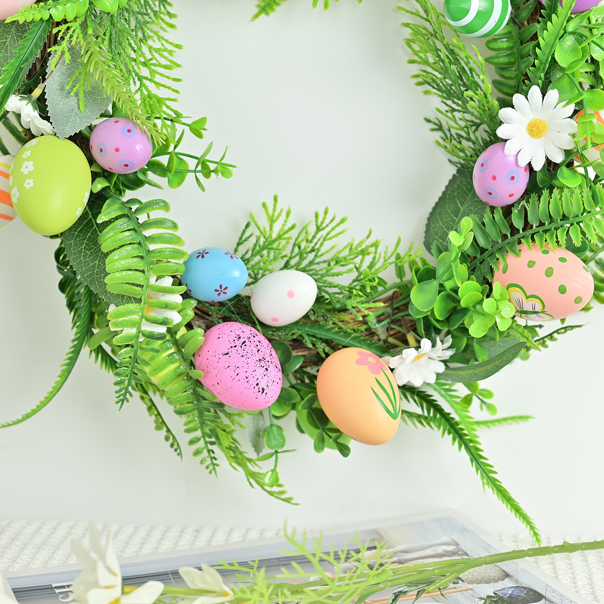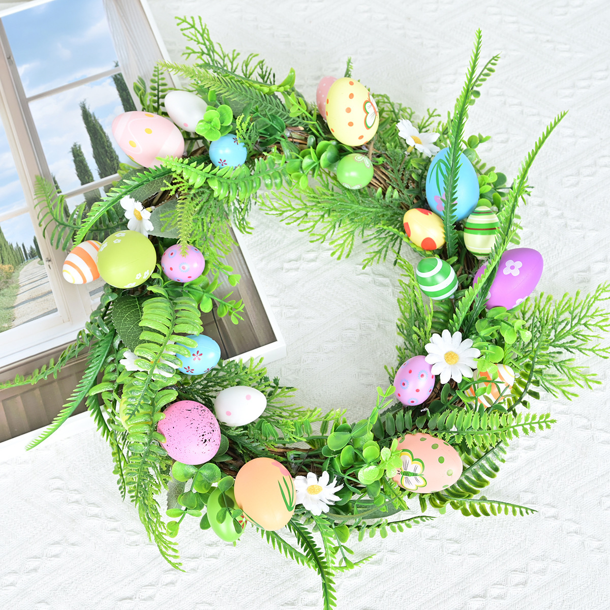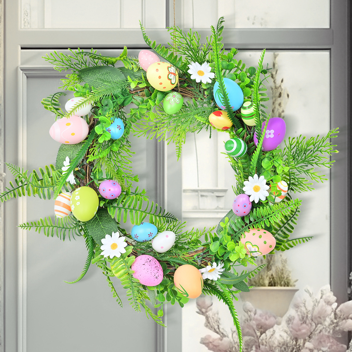 跨境复活节花环仿真水草藤圈花环门庭挂饰复活节装饰品彩色复活蛋