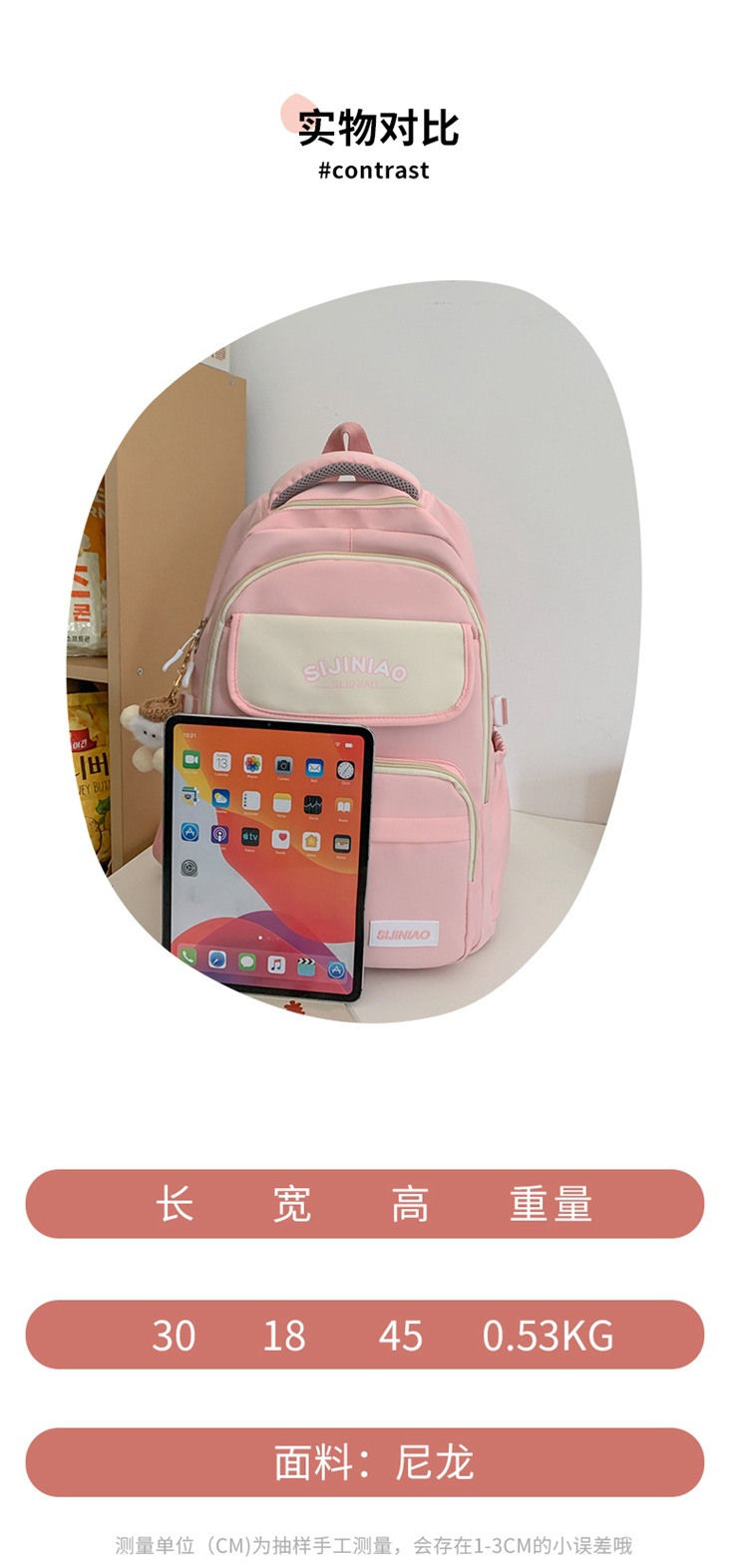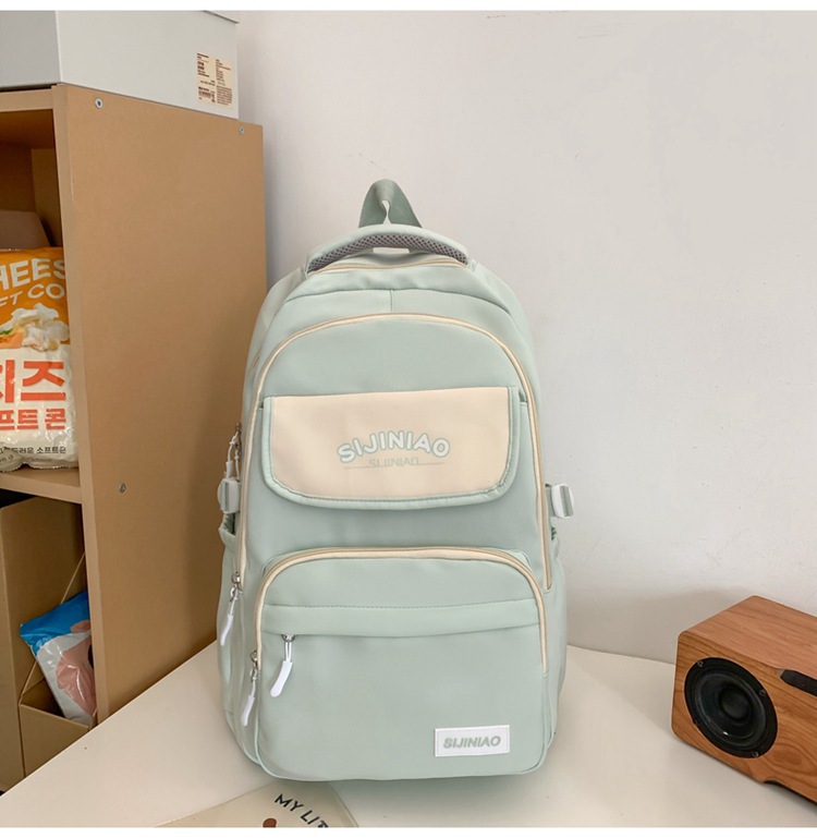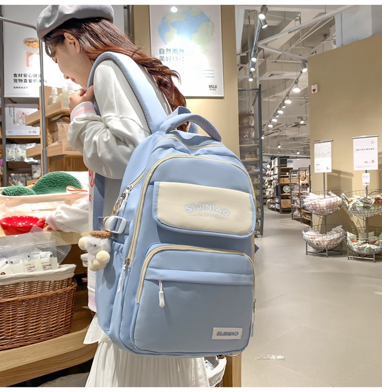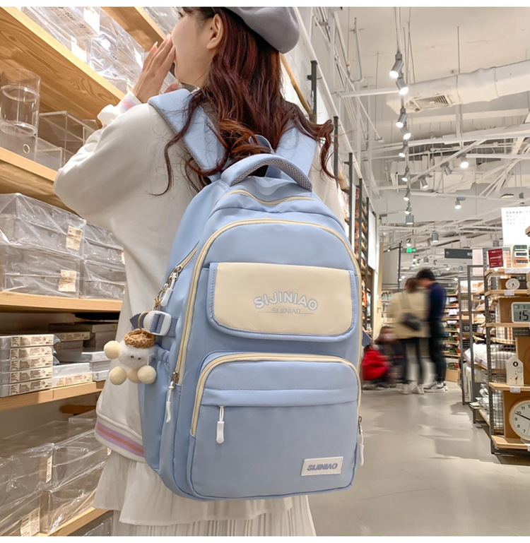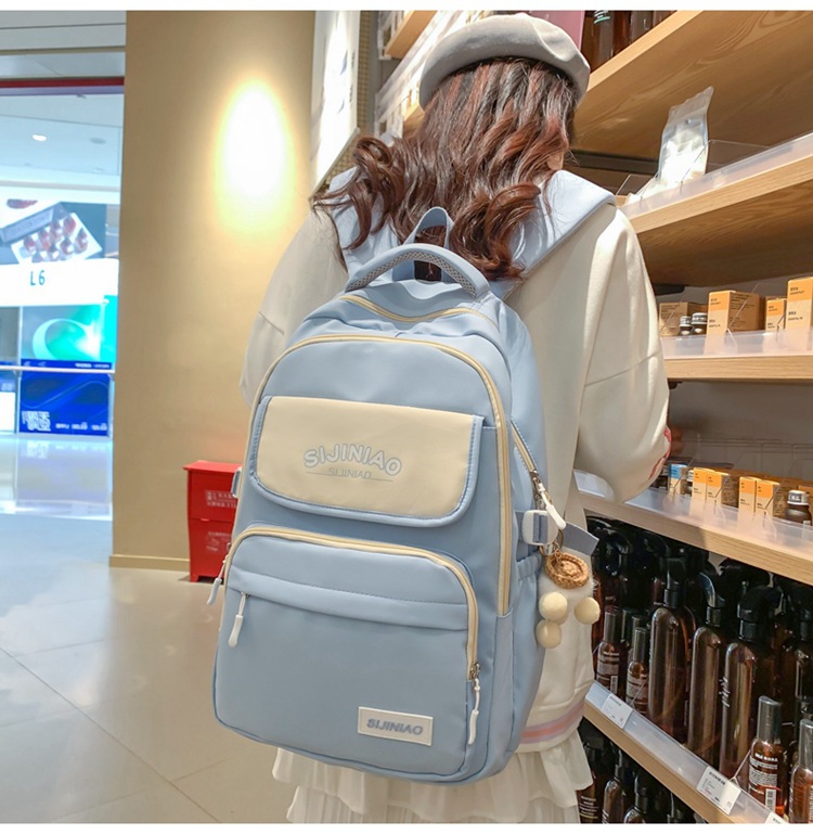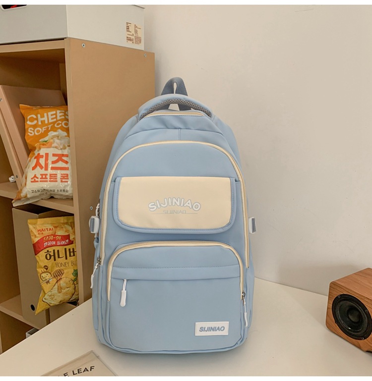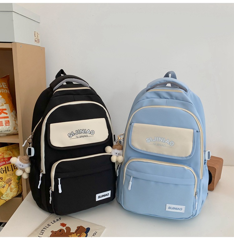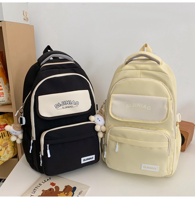新款书包ins可爱初中生撞色拼接休闲背包多层高中生双肩包