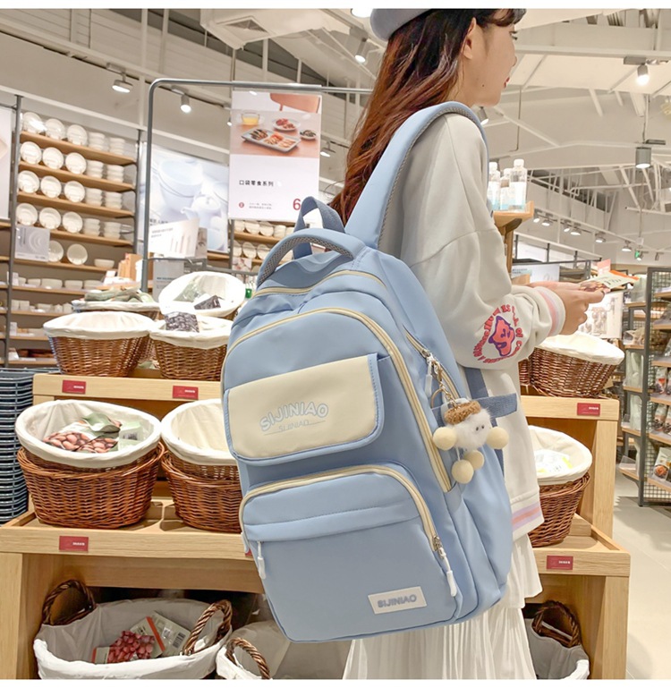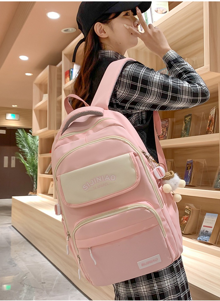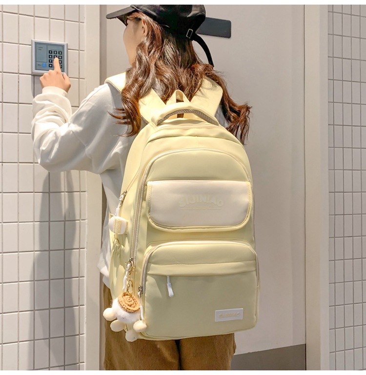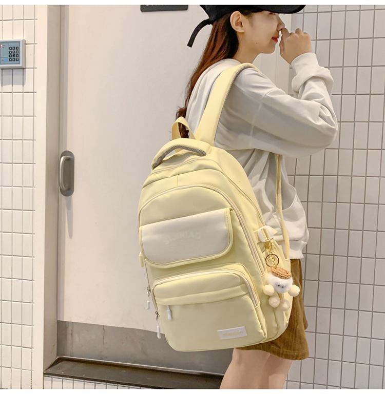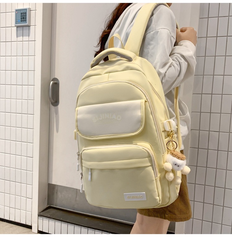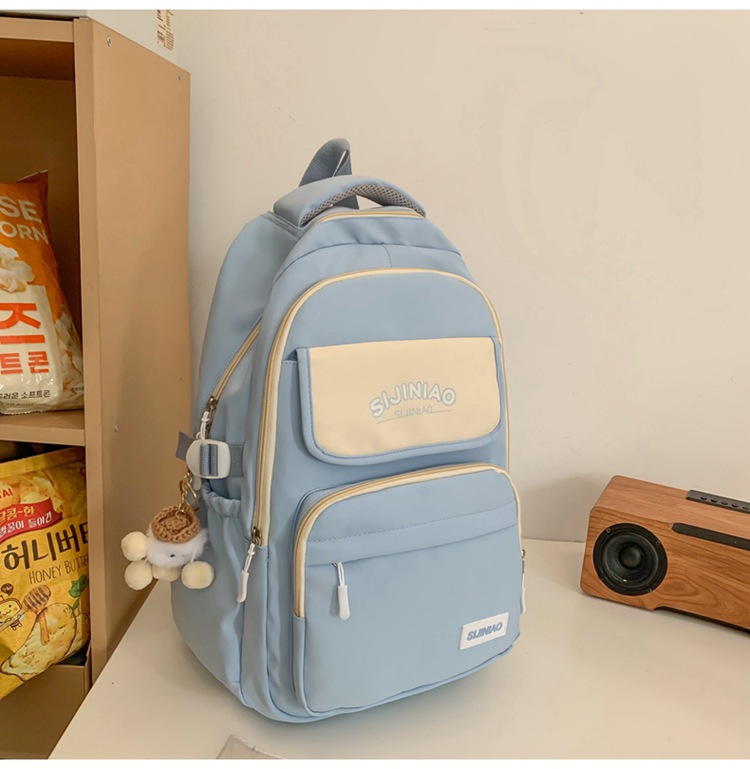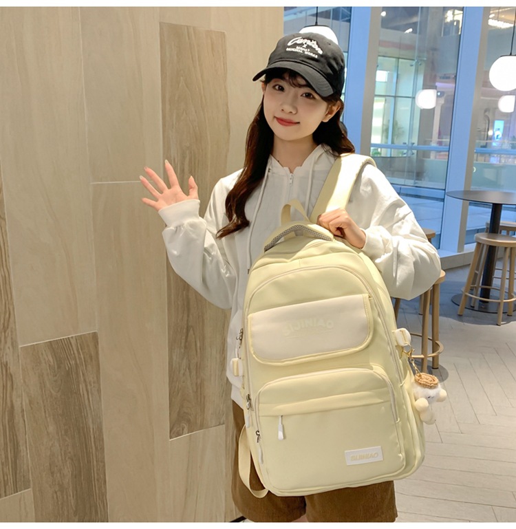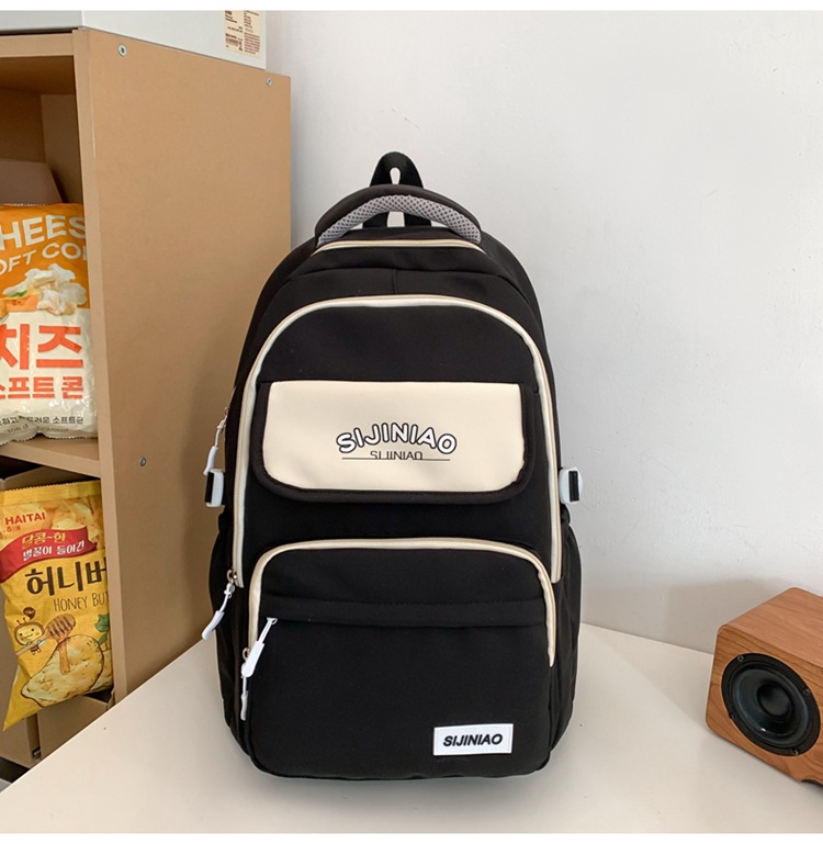 新款书包ins可爱初中生撞色拼接休闲背包多层高中生双肩包
