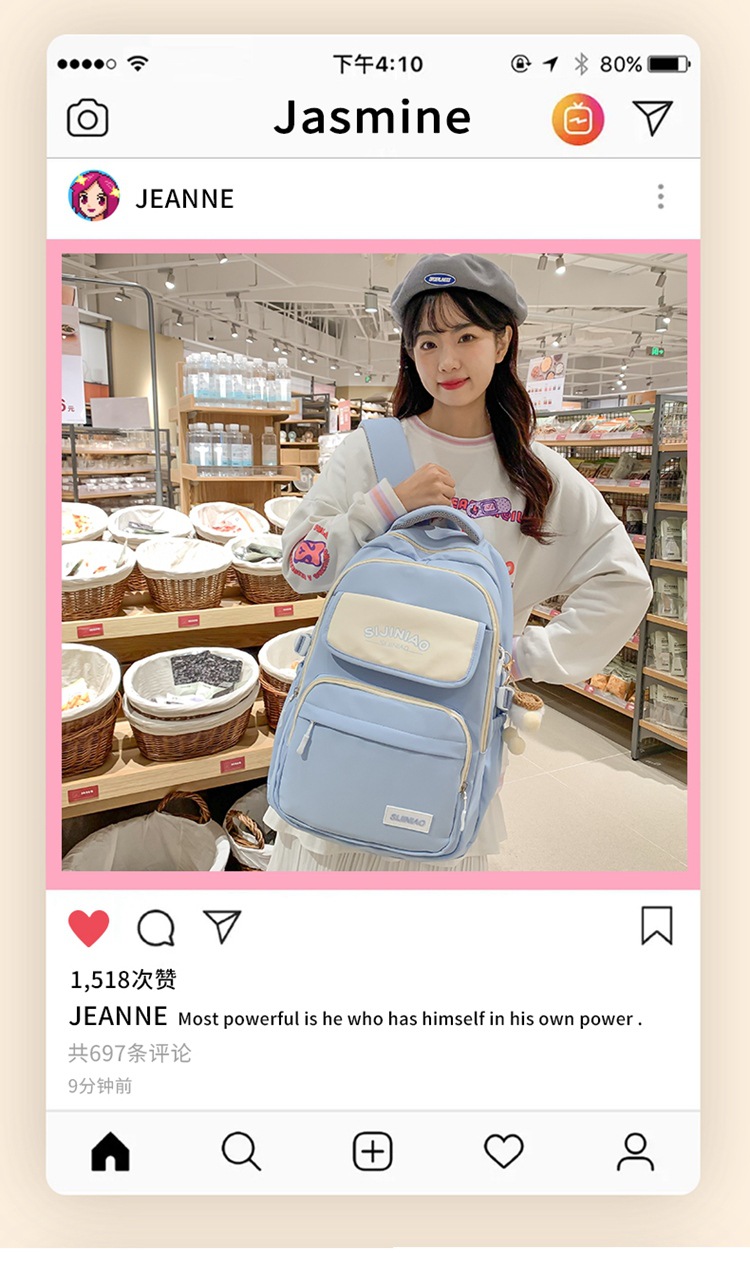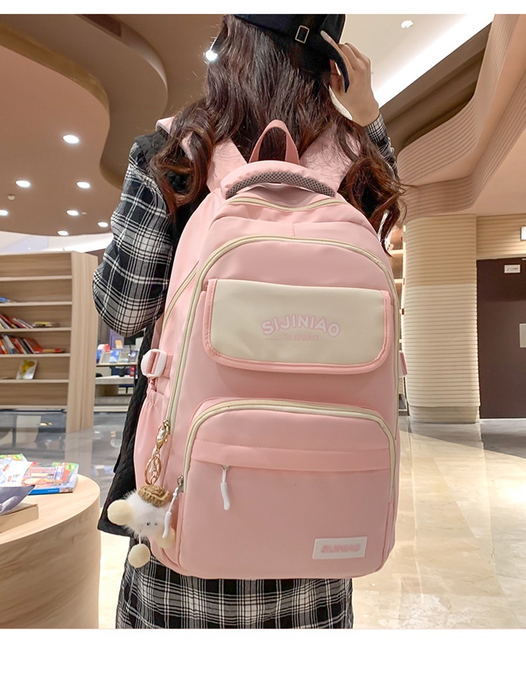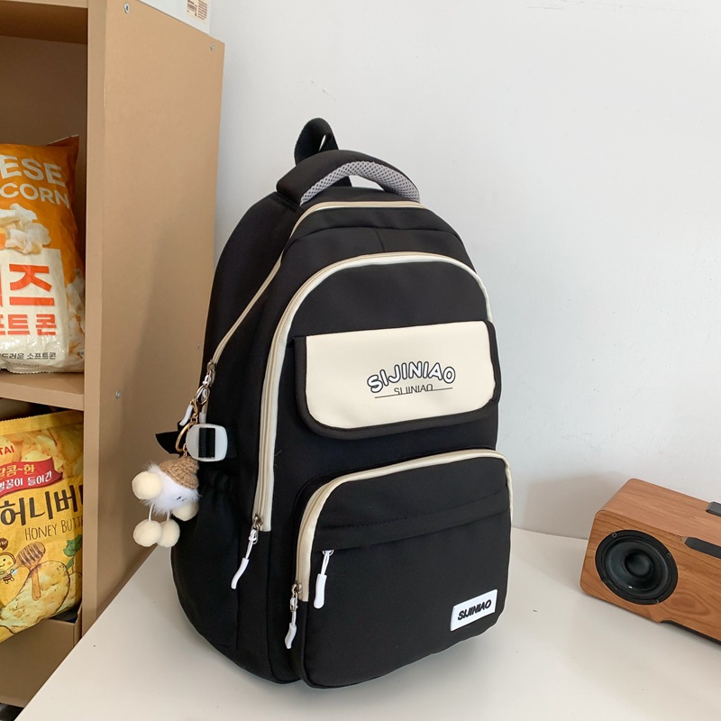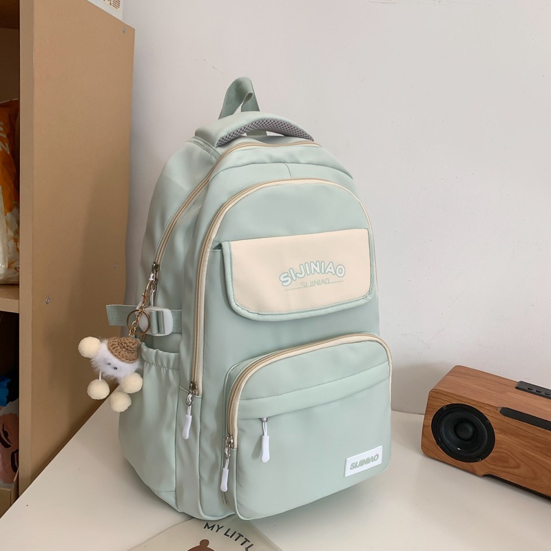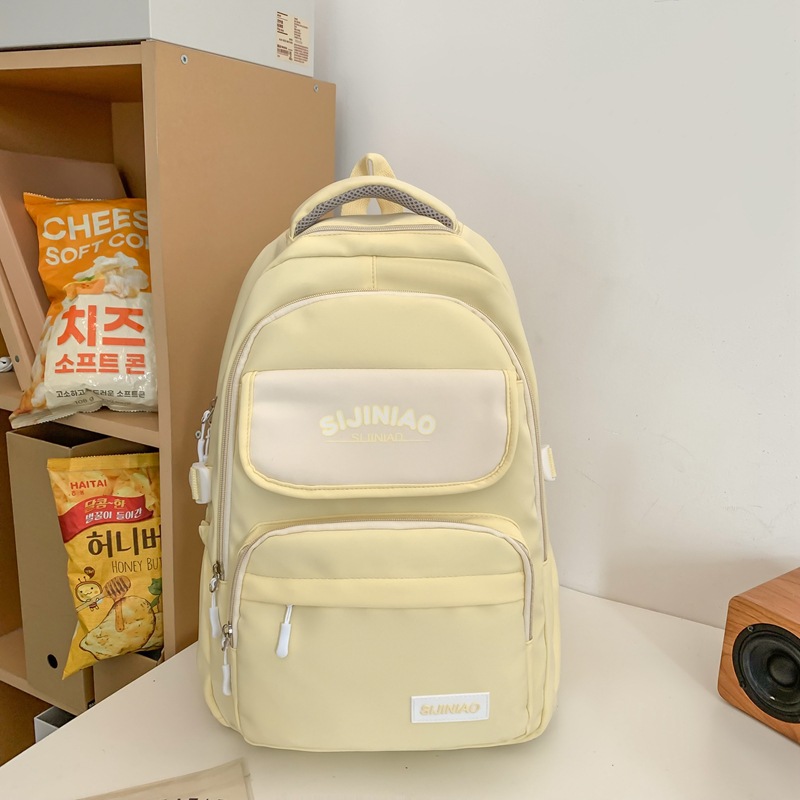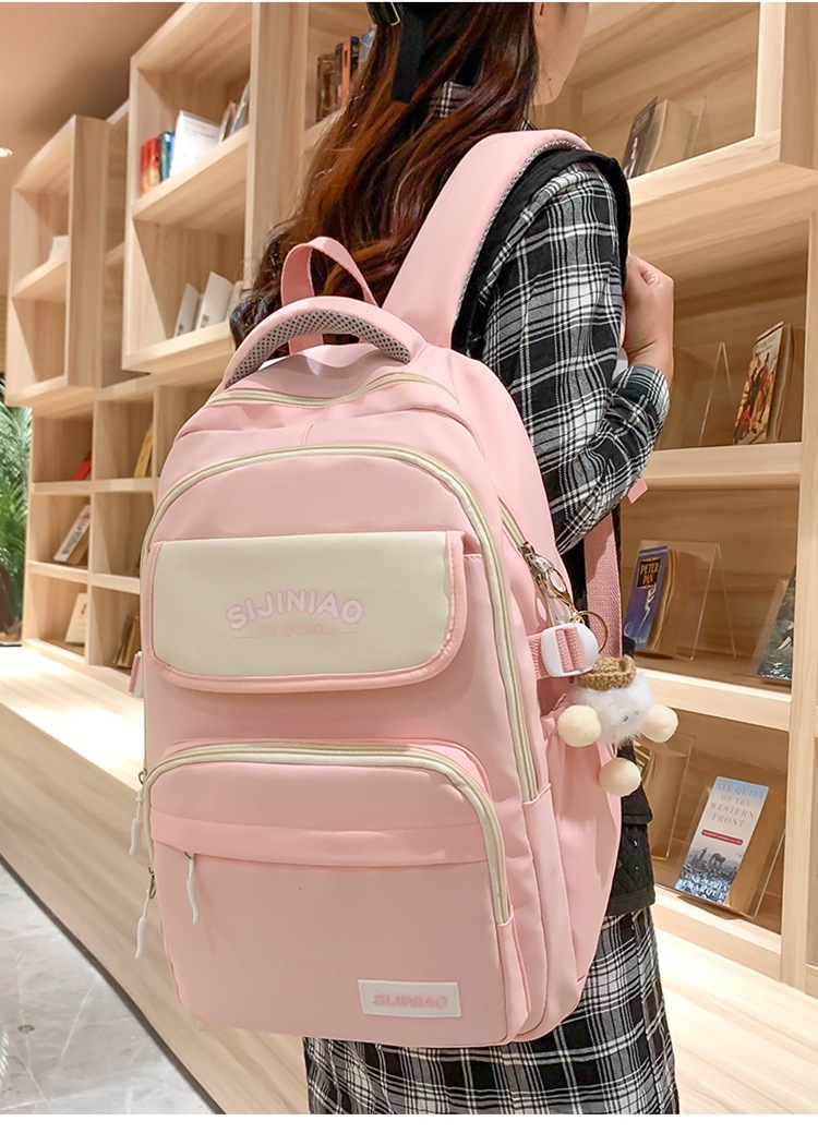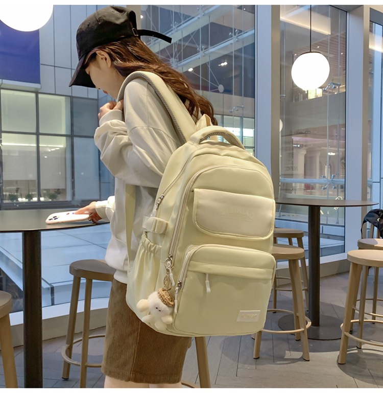 新款书包ins可爱初中生撞色拼接休闲背包多层高中生双肩包