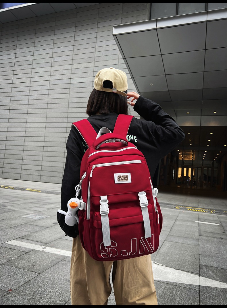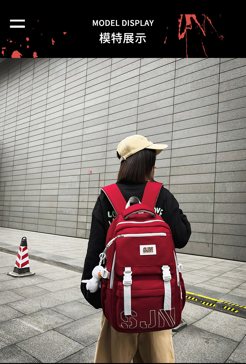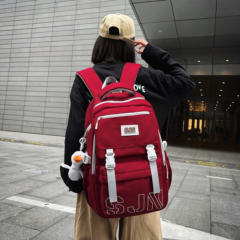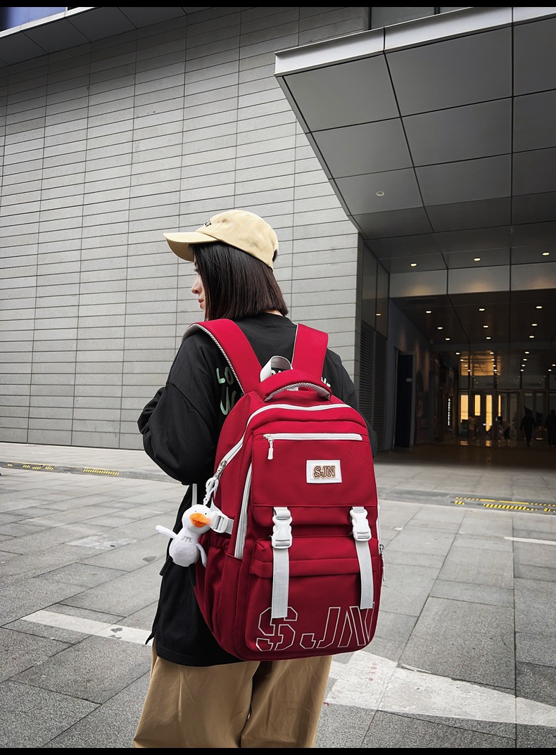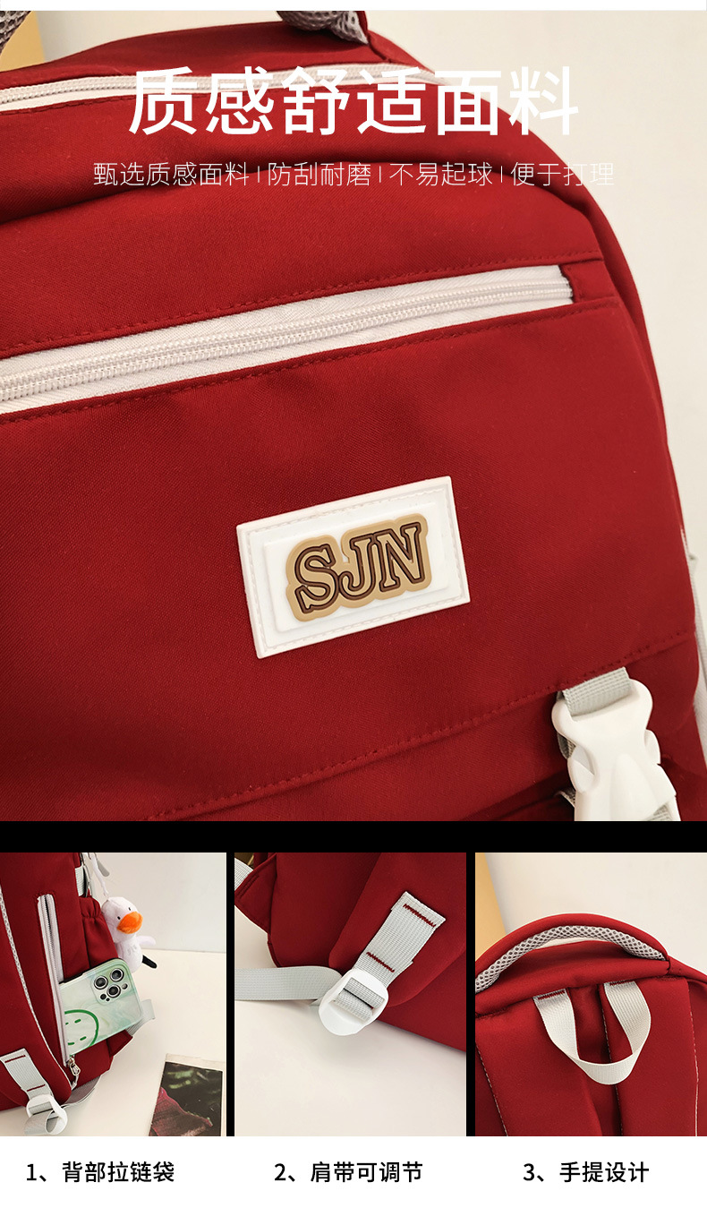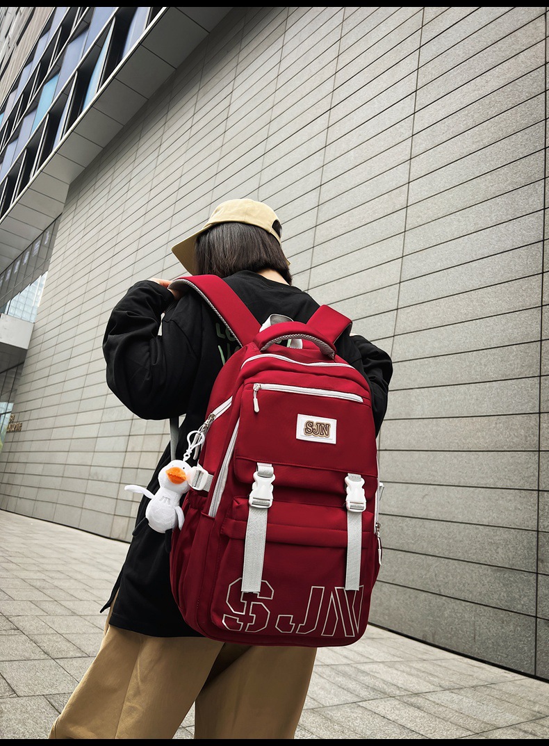 高颜值纯色书包女大学生简约双肩包初高中生背包