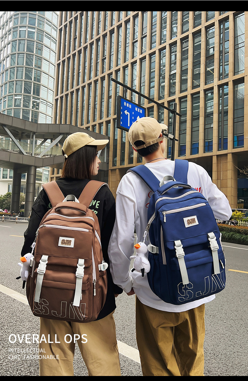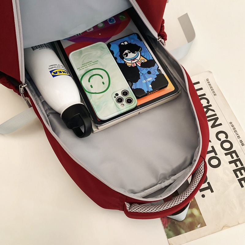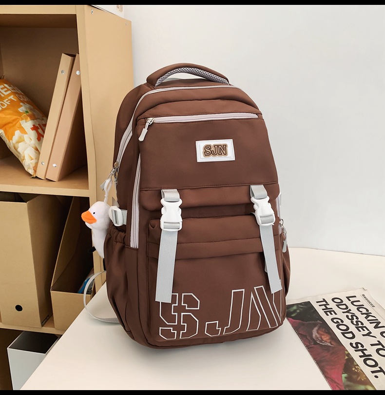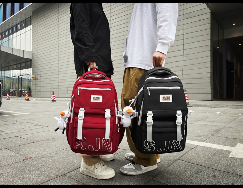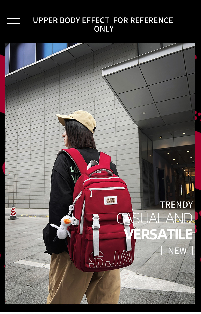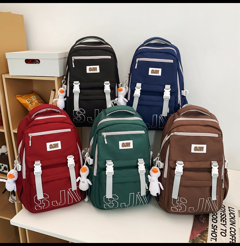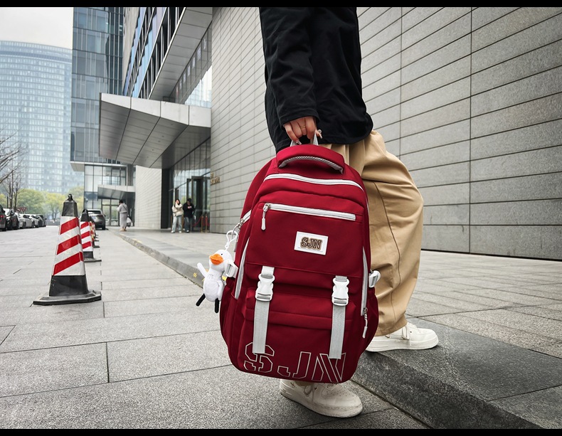 高颜值纯色书包女大学生简约双肩包初高中生背包