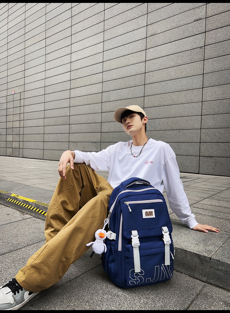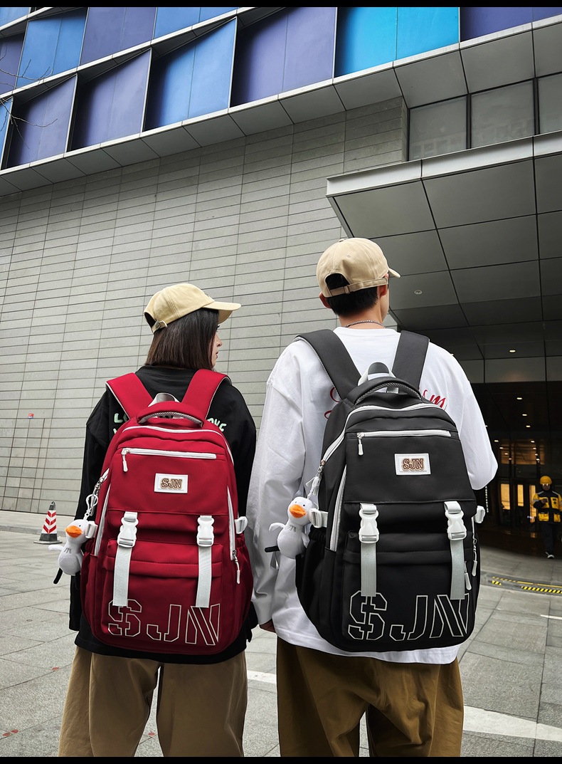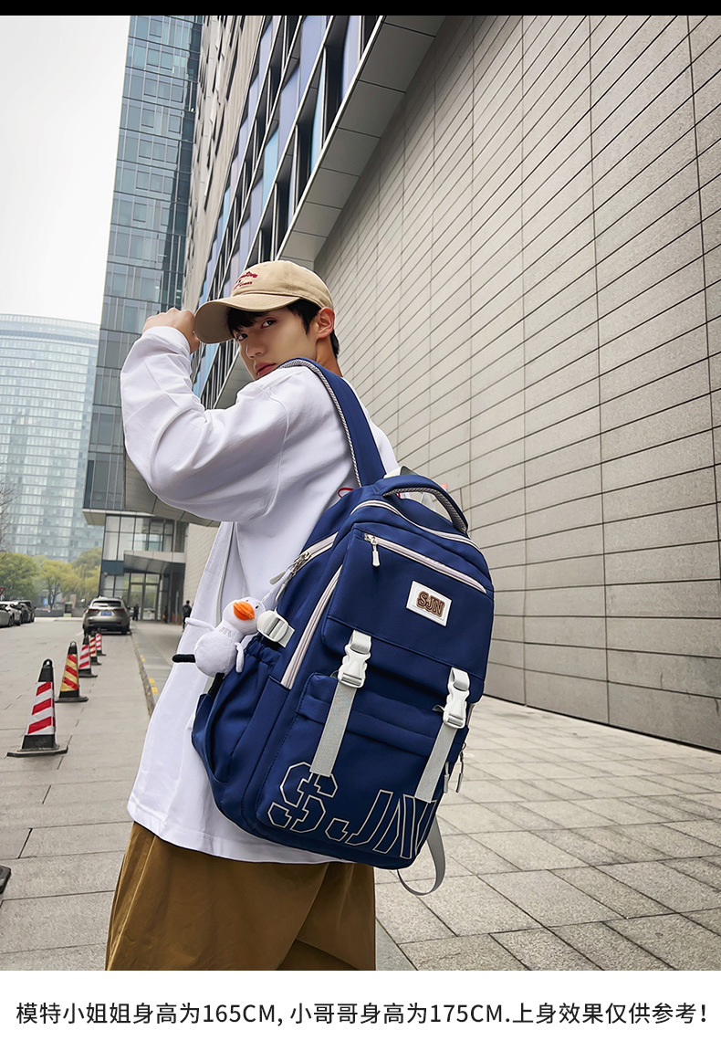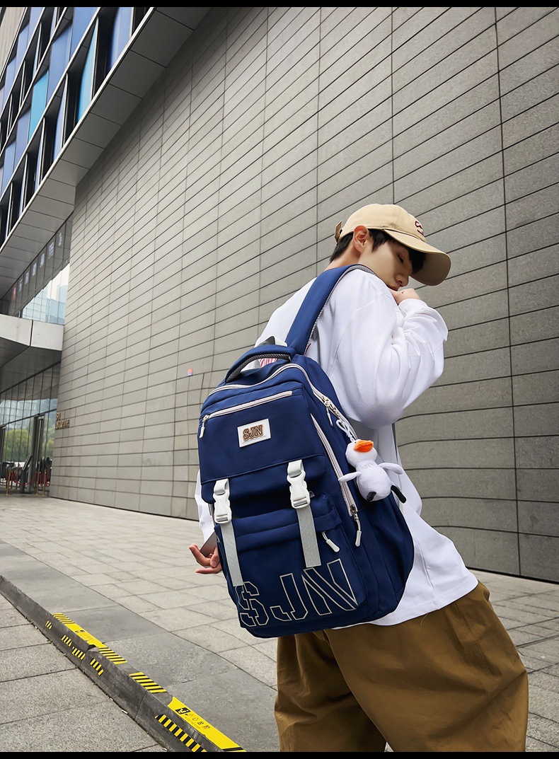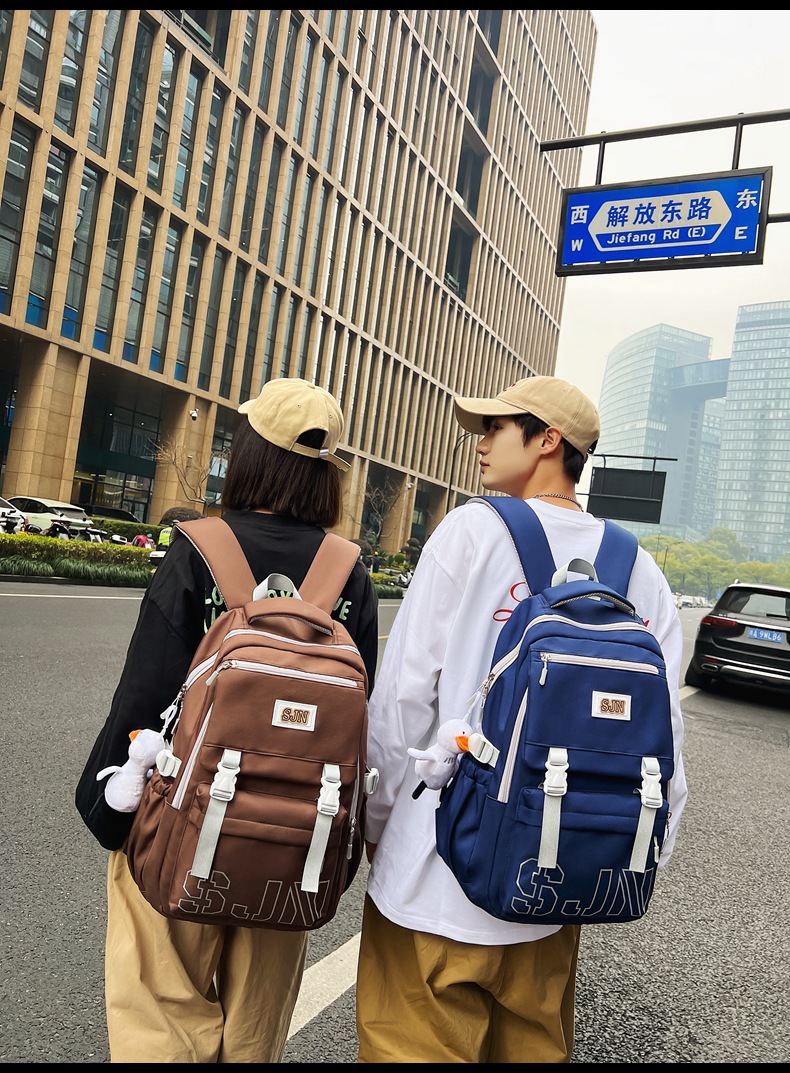 高颜值纯色书包女大学生简约双肩包初高中生背包