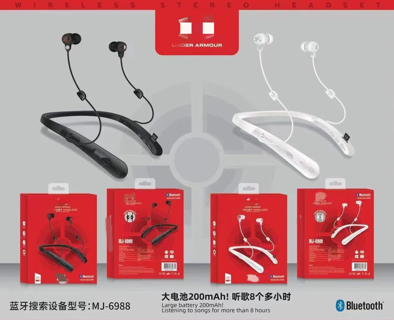 外贸热销6988挂脖蓝牙耳机颈挂式运动带插卡蓝牙耳机多品牌配包装