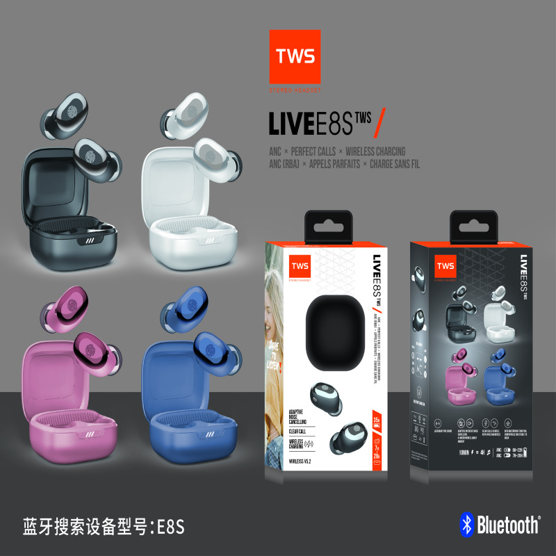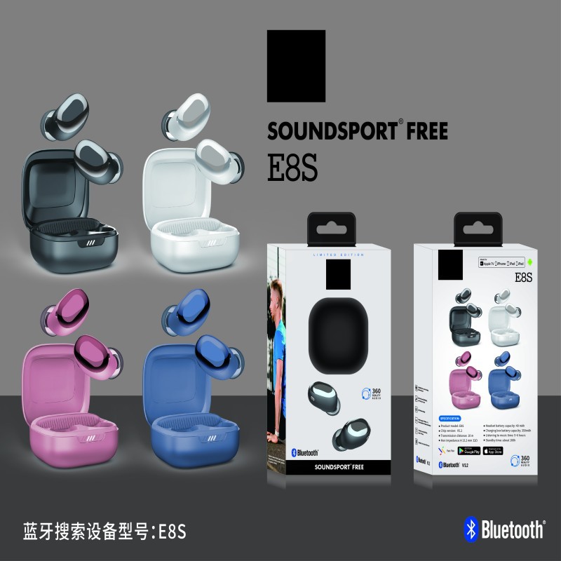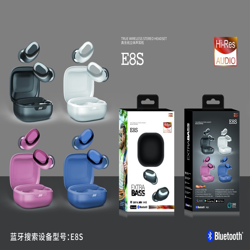 E8S新款无线蓝牙耳机入耳式对耳立体声耳塞运动游戏电竞外贸爆款H