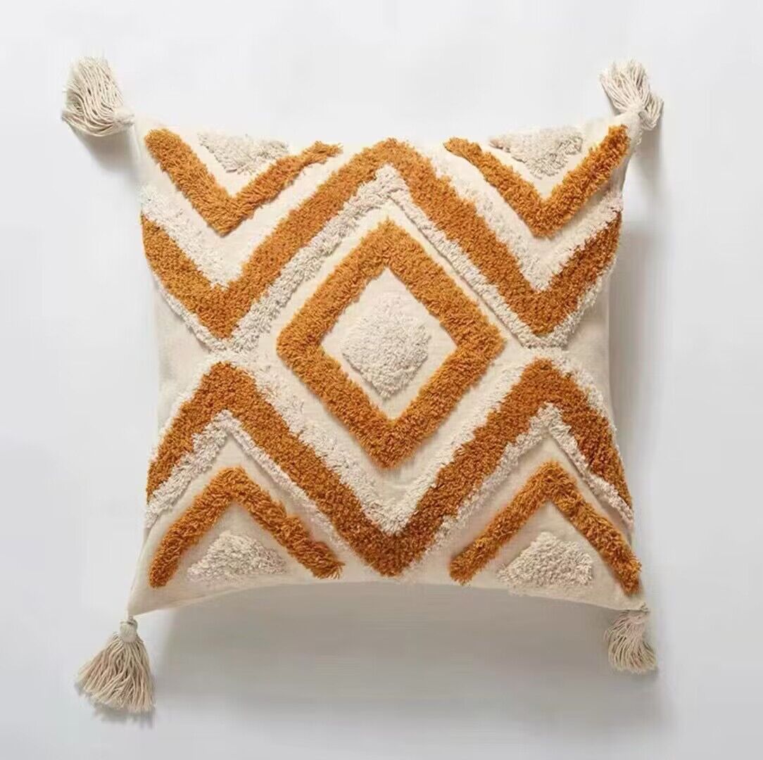 新款圈绒流苏抱枕靠垫套家居沙发抱枕几何菱形跨境帆布靠枕