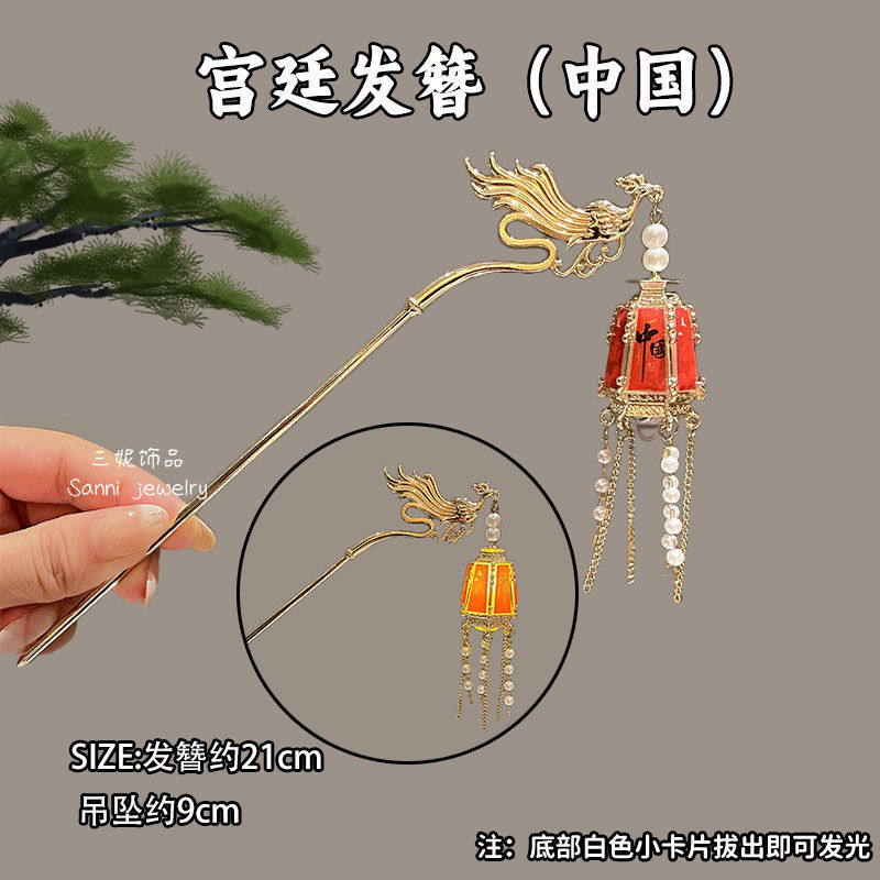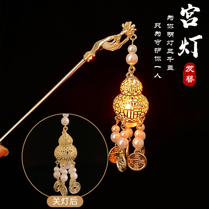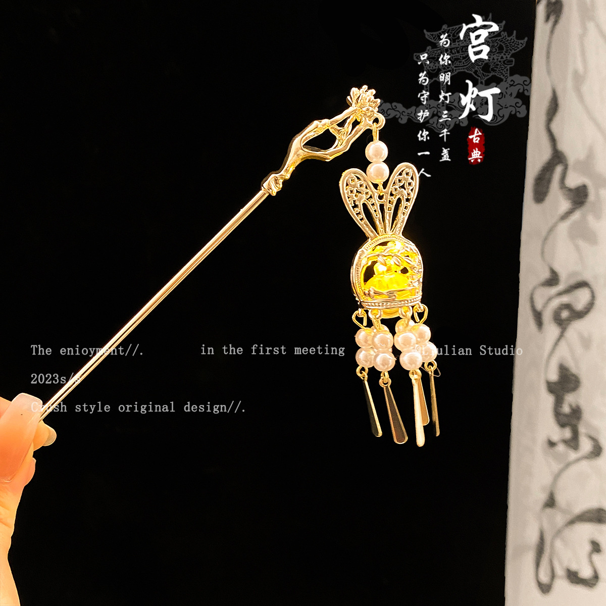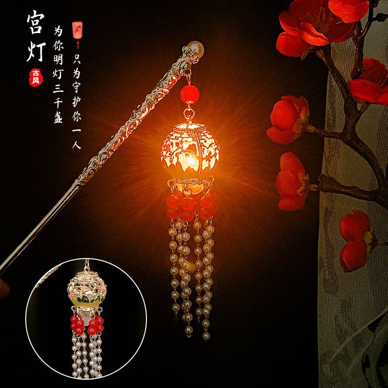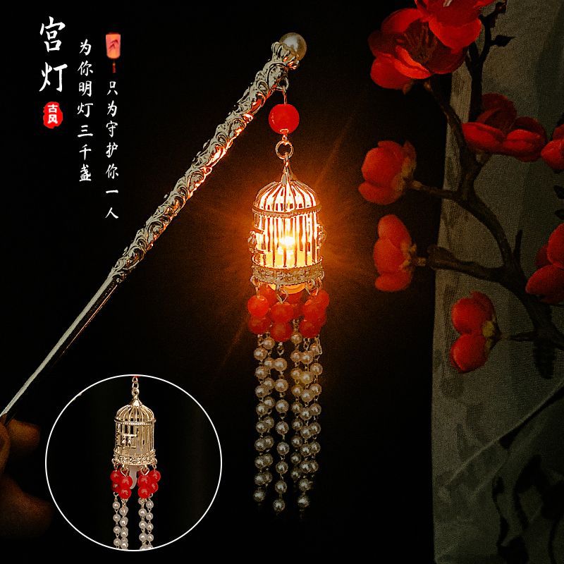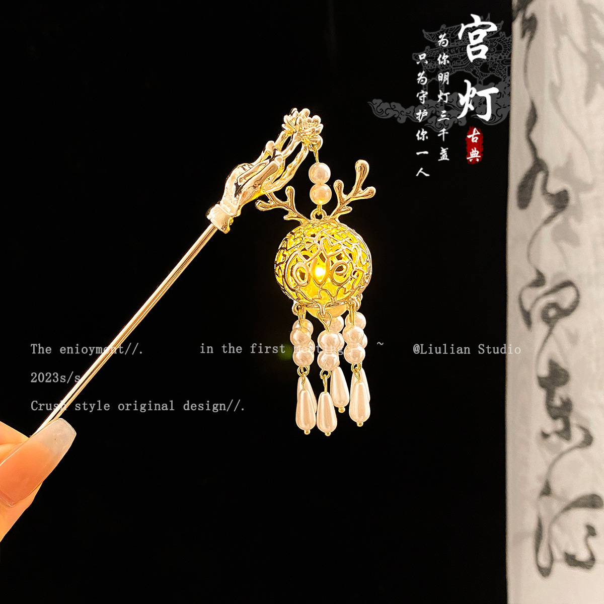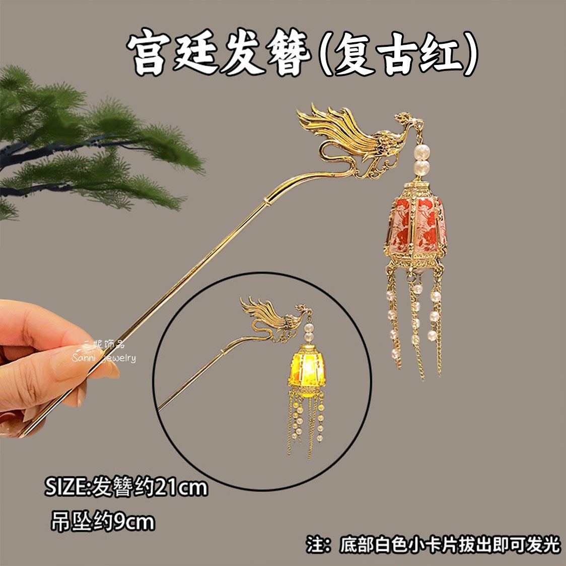 会发光的灯笼发簪女中式古风汉服簪子后脑勺盘发发钗步摇头饰发饰