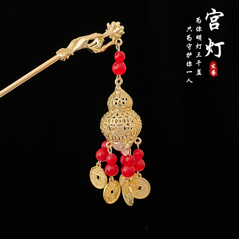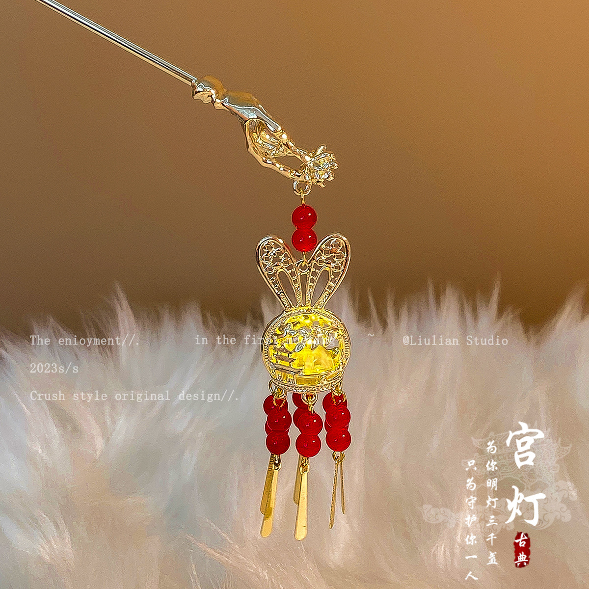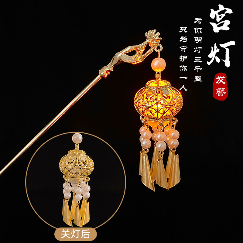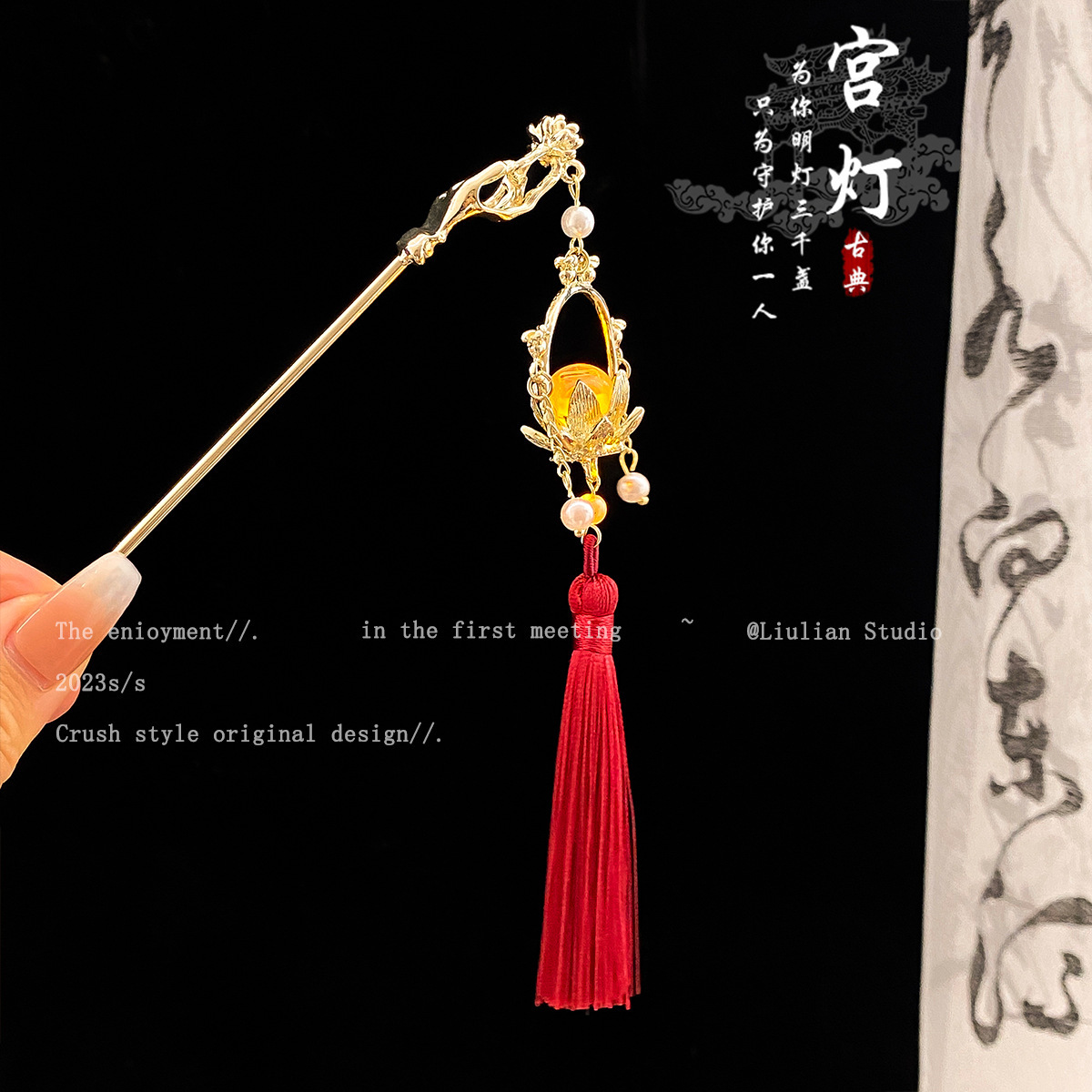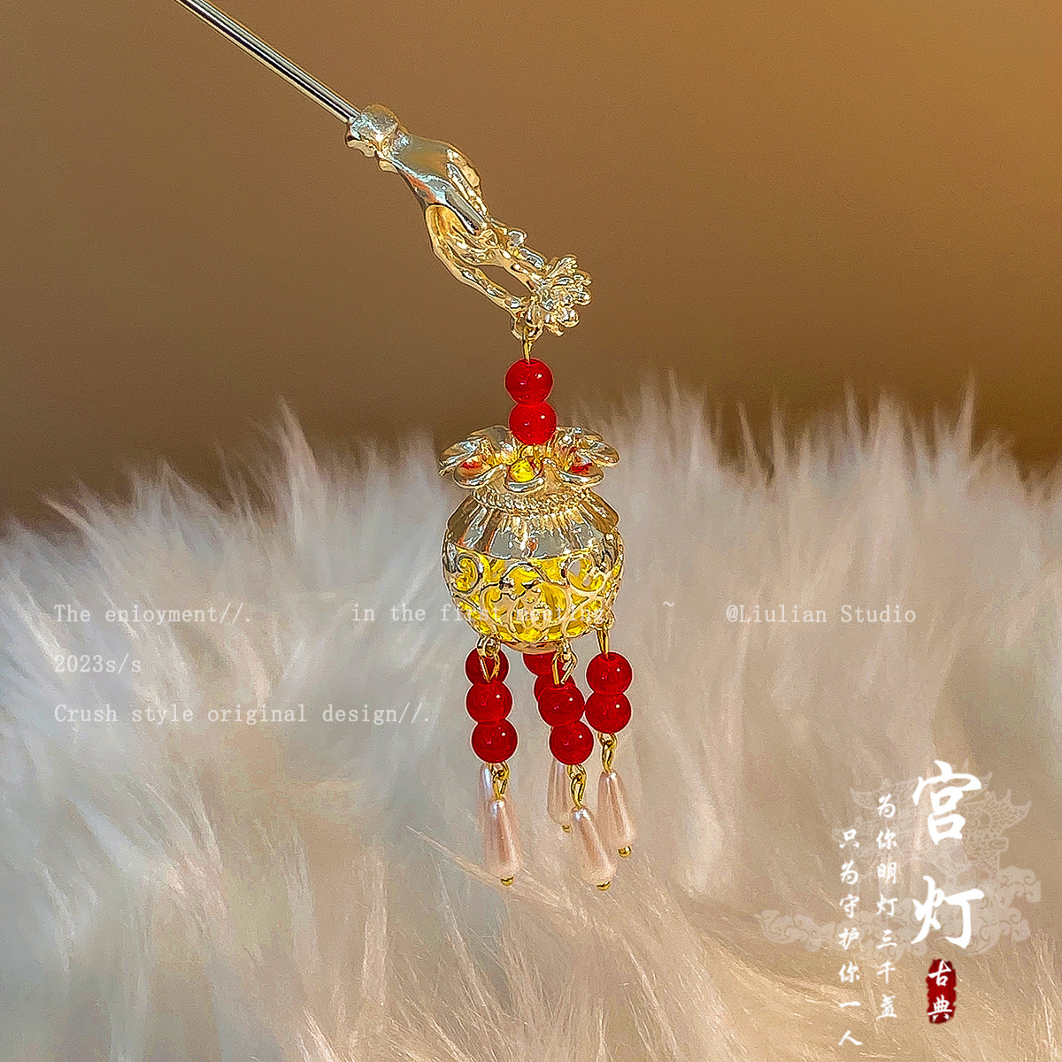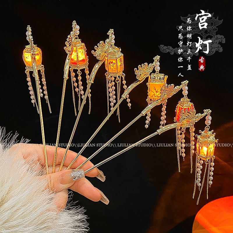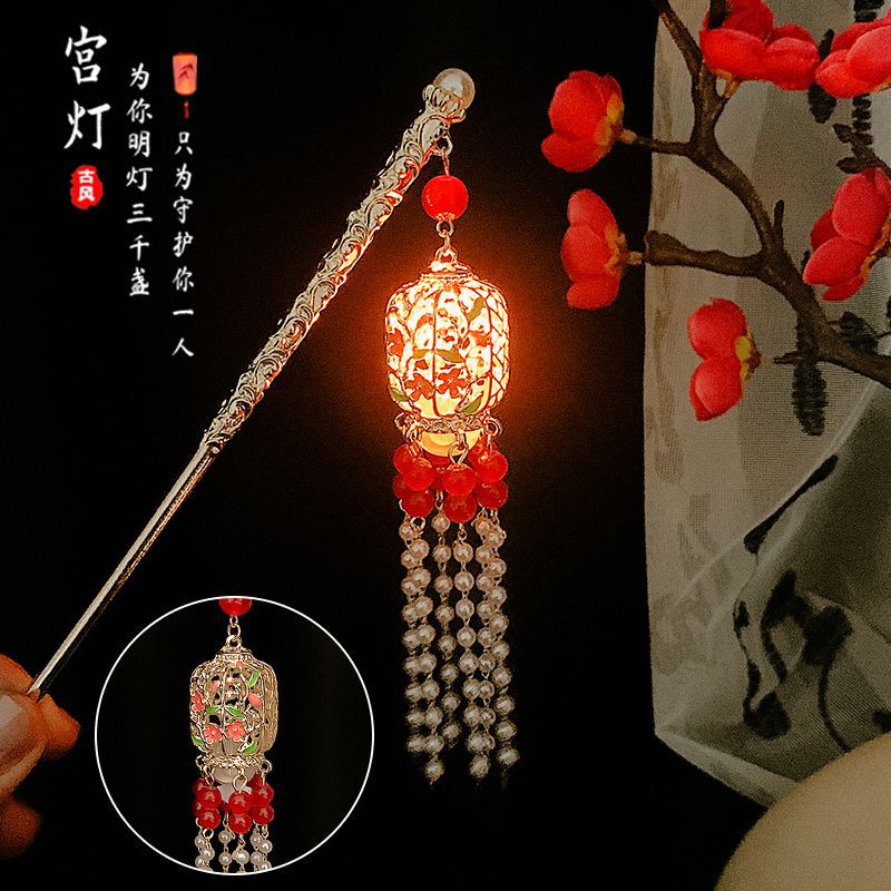 会发光的灯笼发簪女中式古风汉服簪子后脑勺盘发发钗步摇头饰发饰