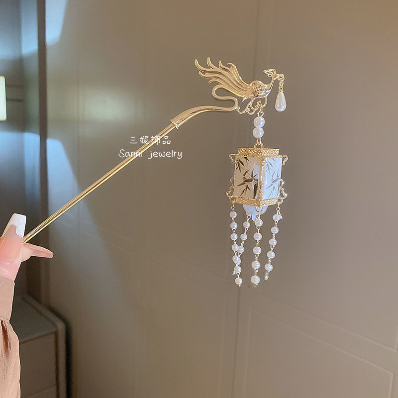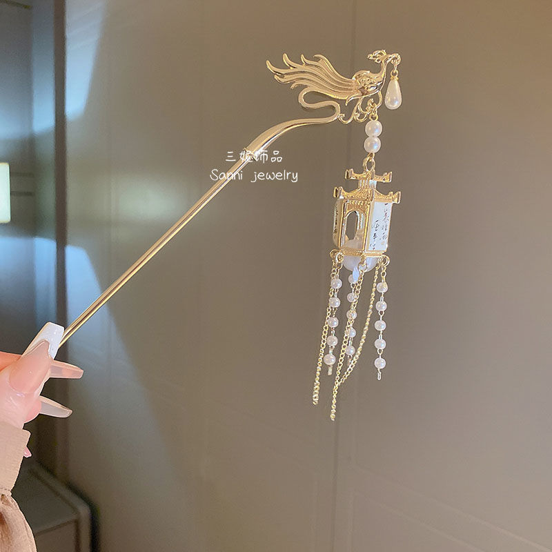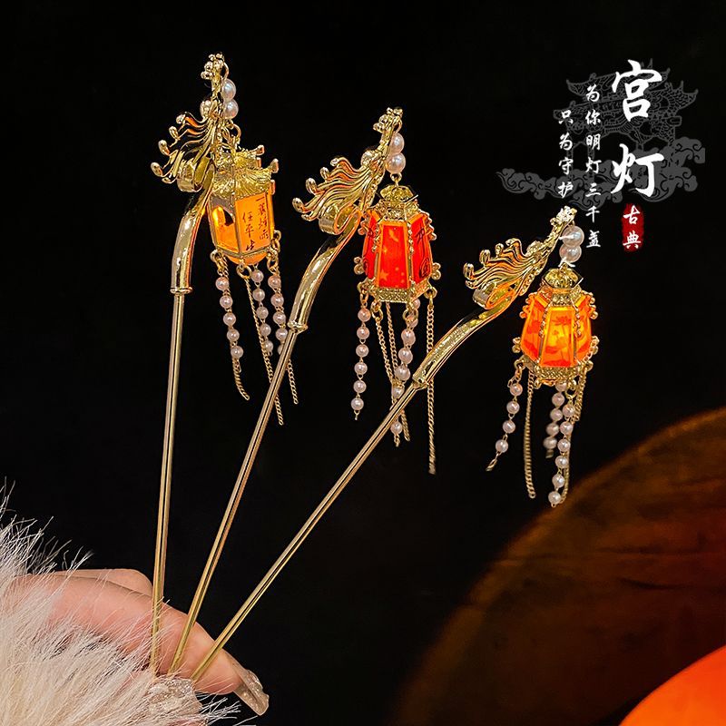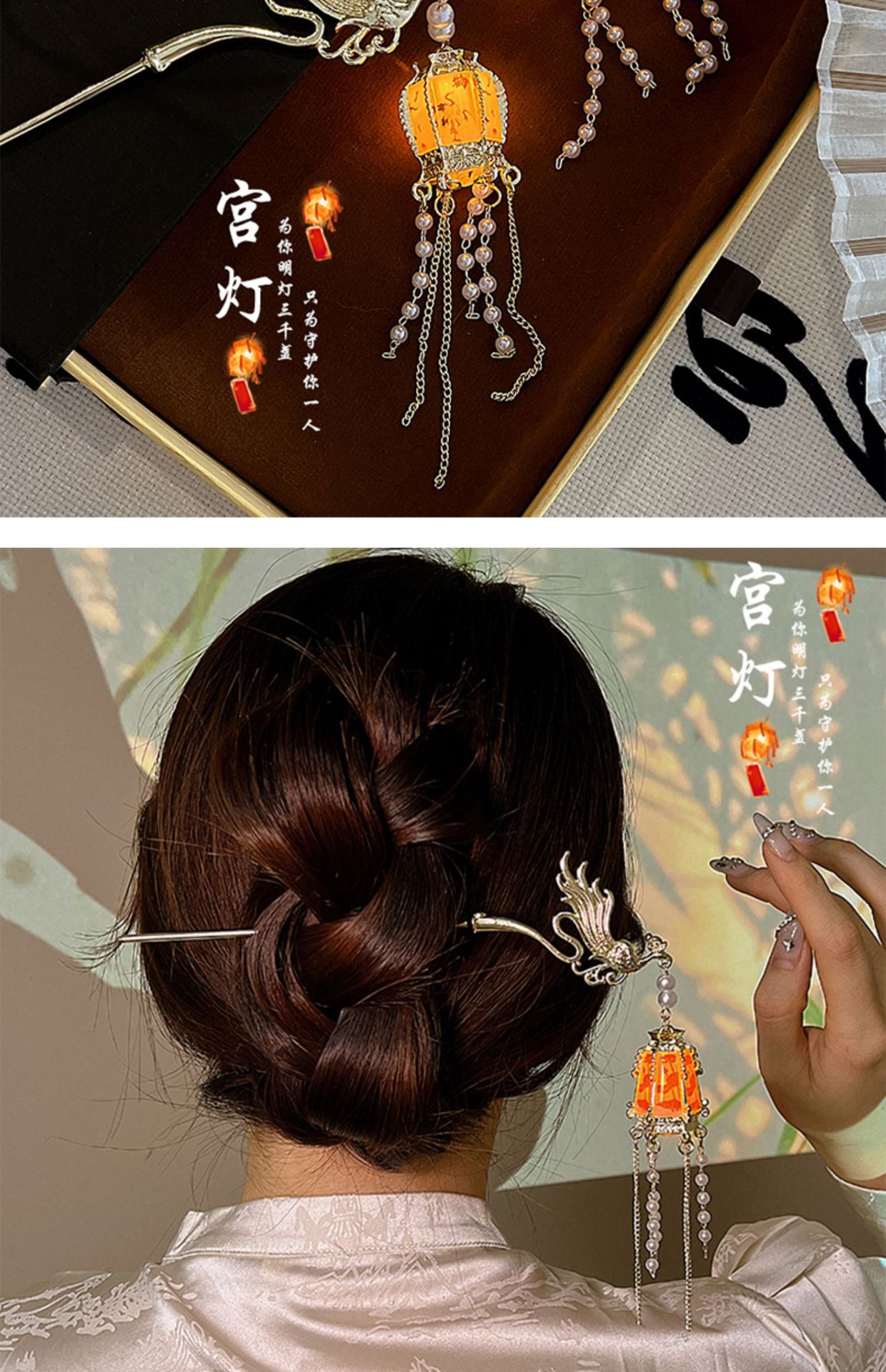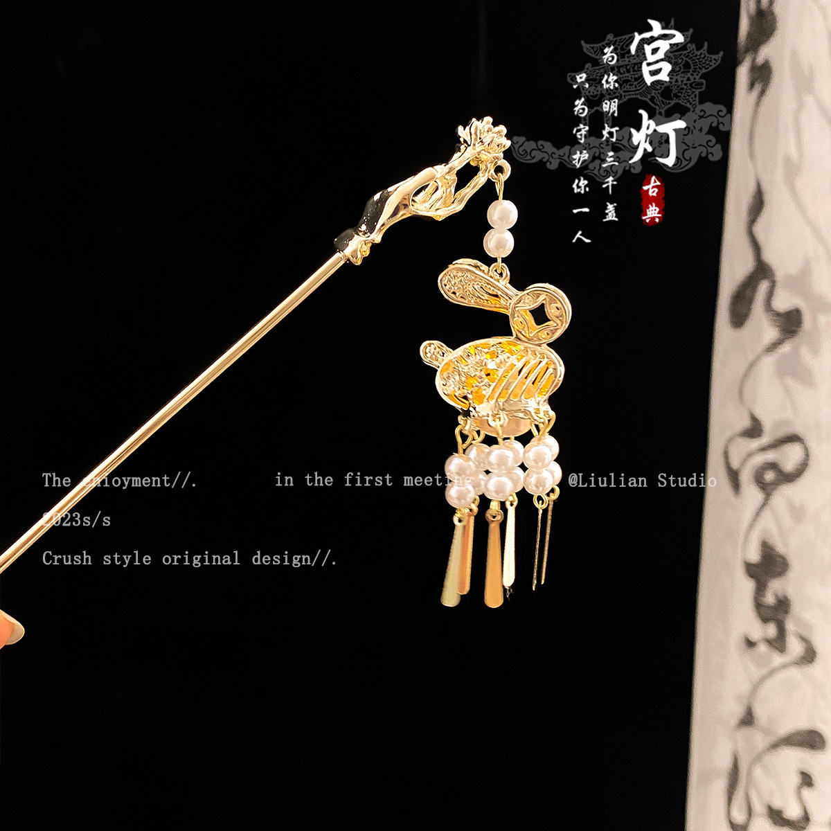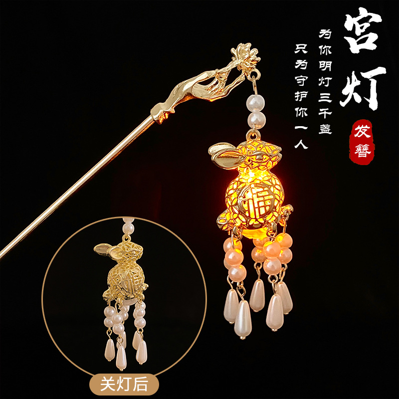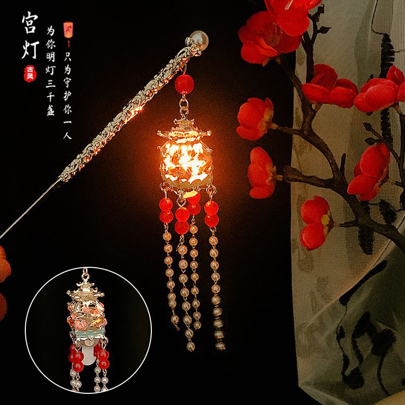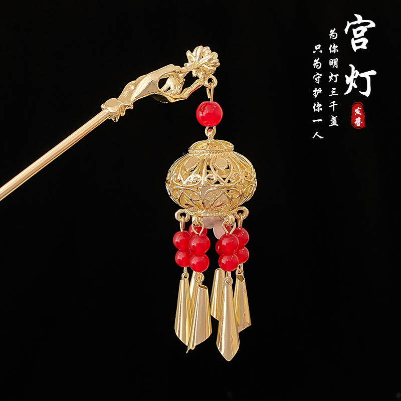 会发光的灯笼发簪女中式古风汉服簪子后脑勺盘发发钗步摇头饰发饰