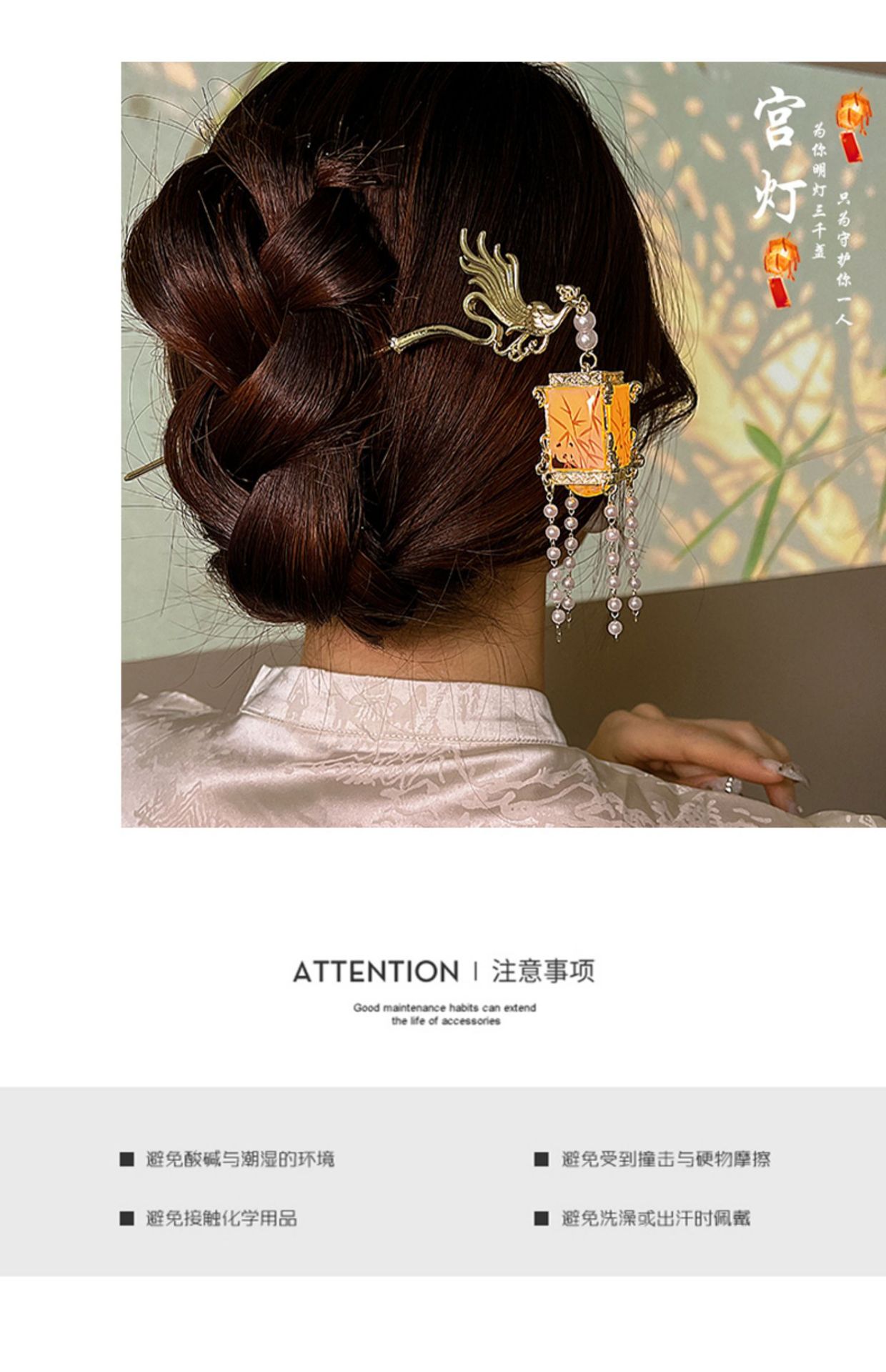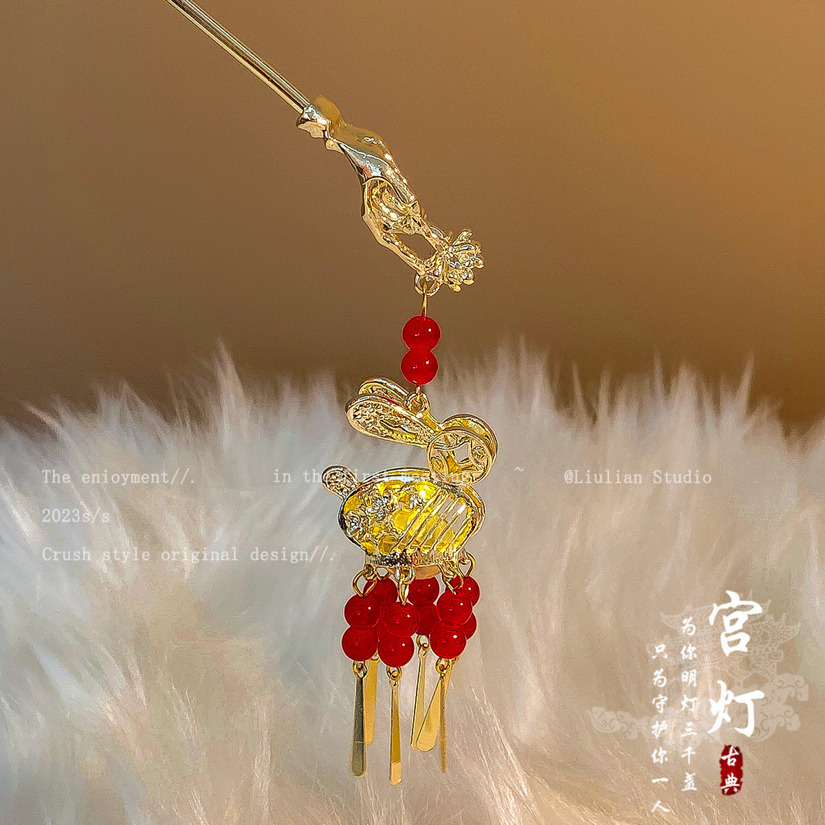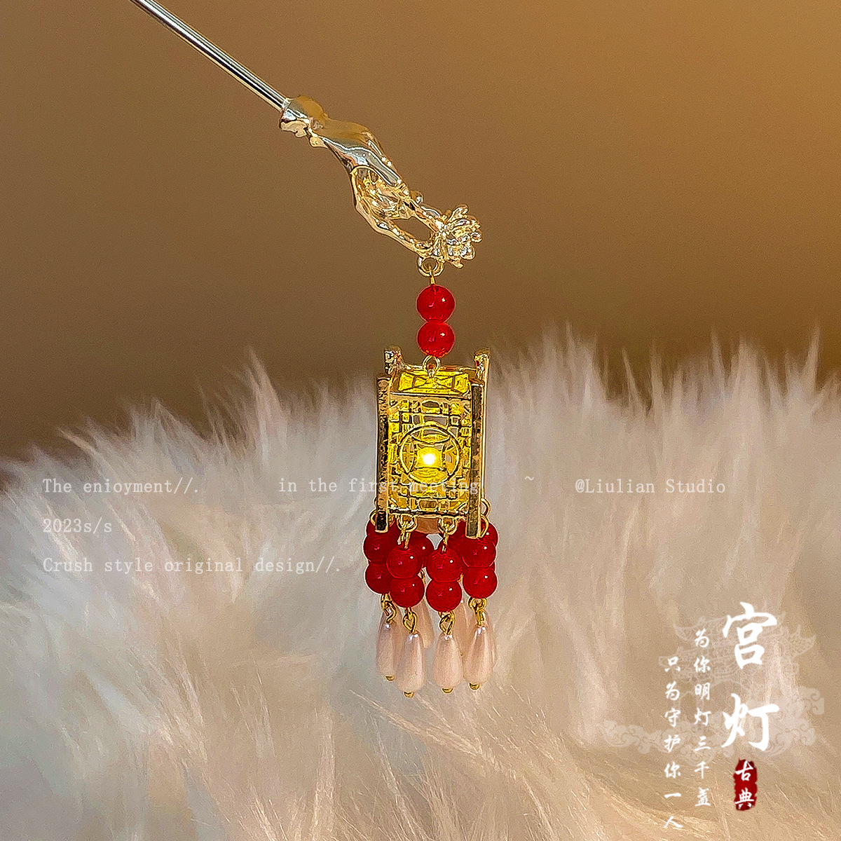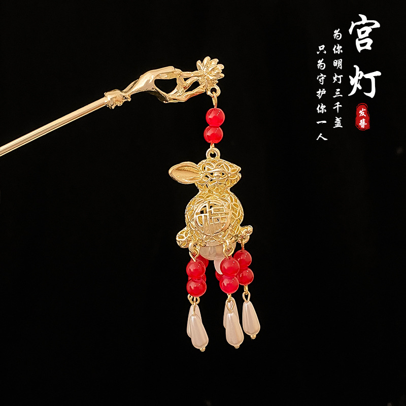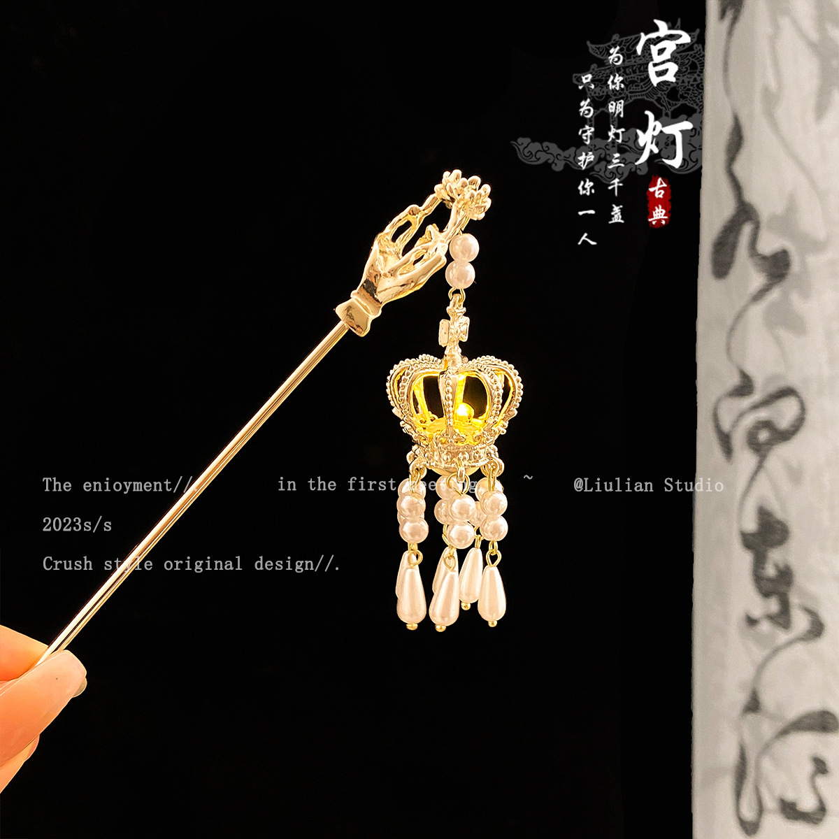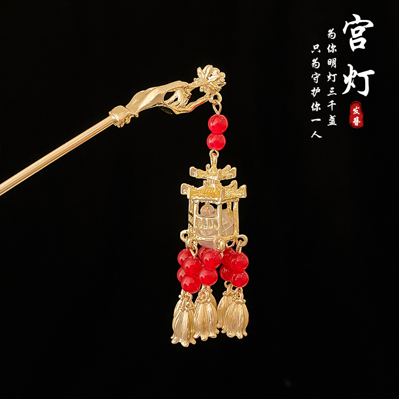 会发光的灯笼发簪女中式古风汉服簪子后脑勺盘发发钗步摇头饰发饰