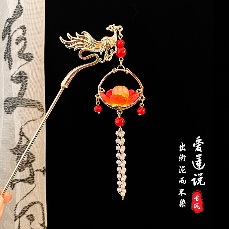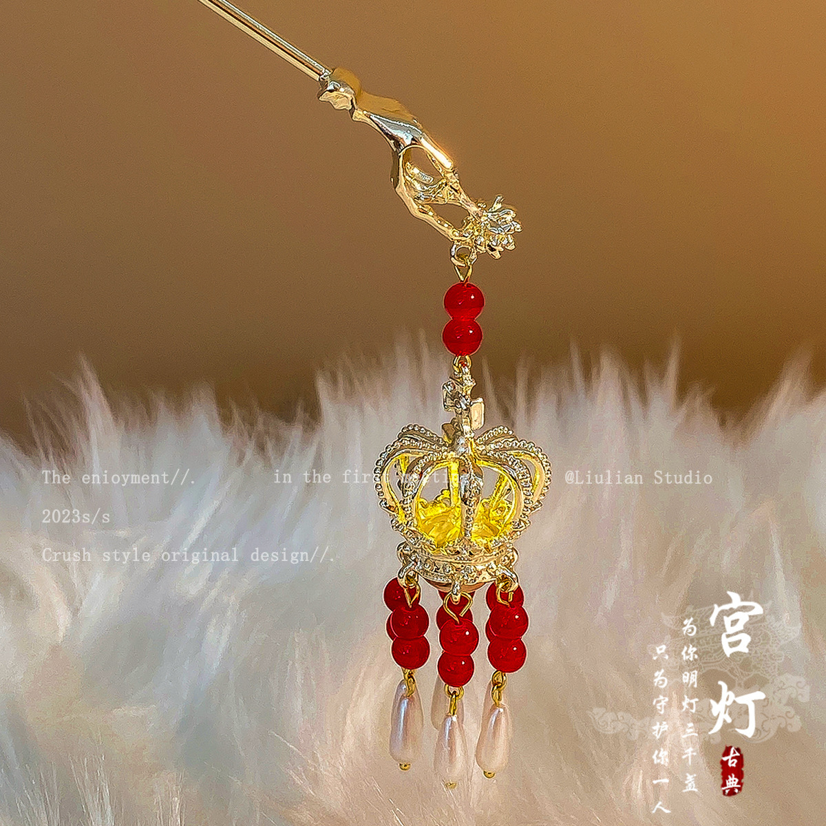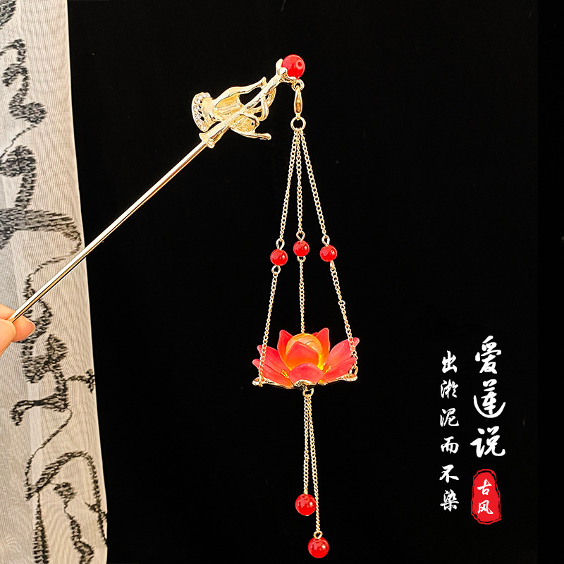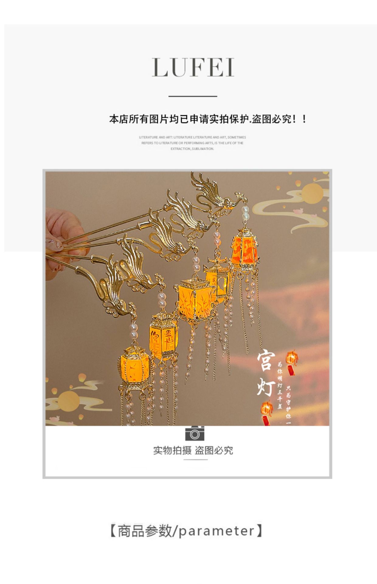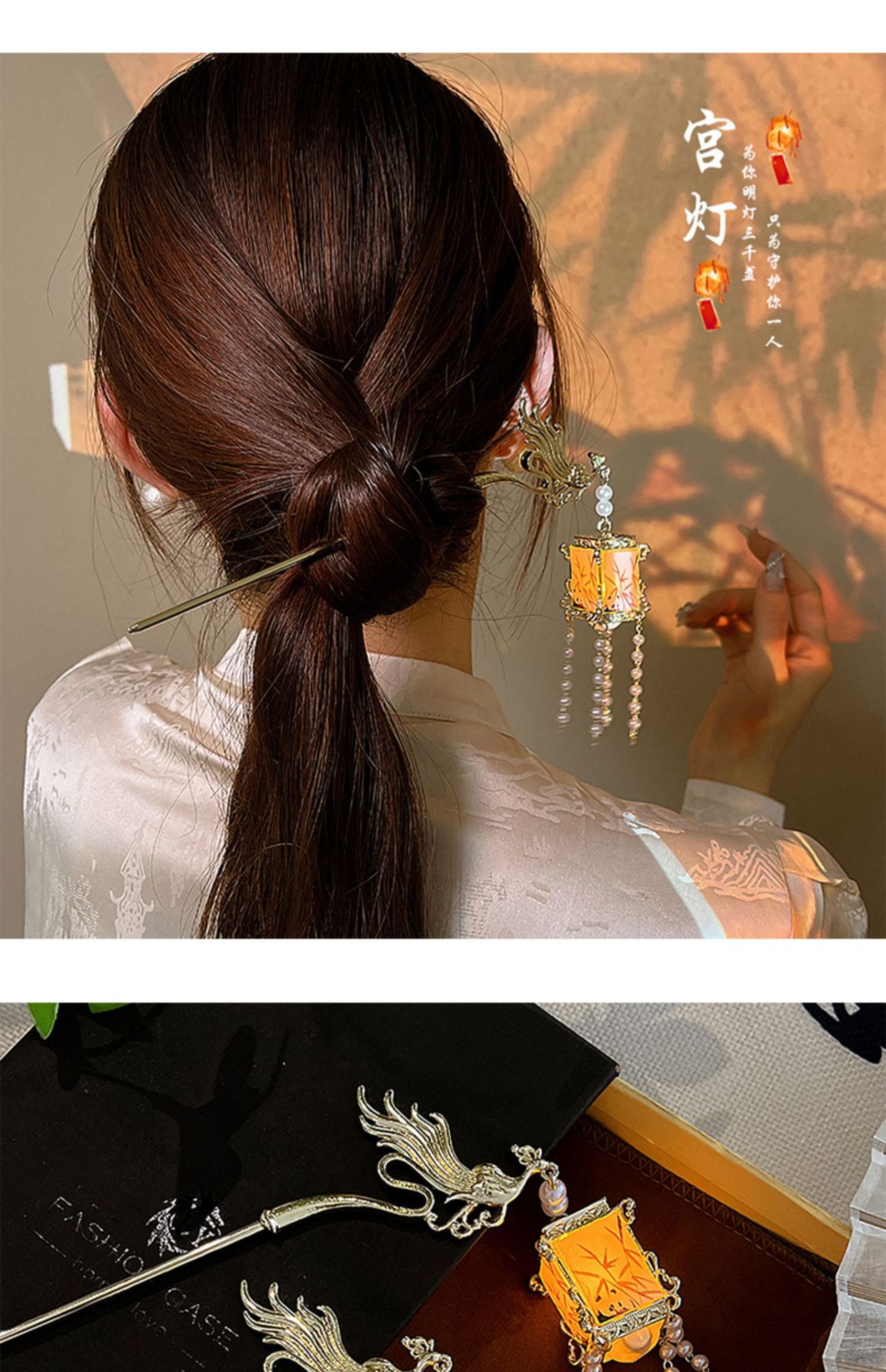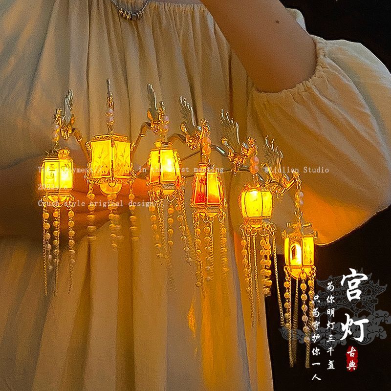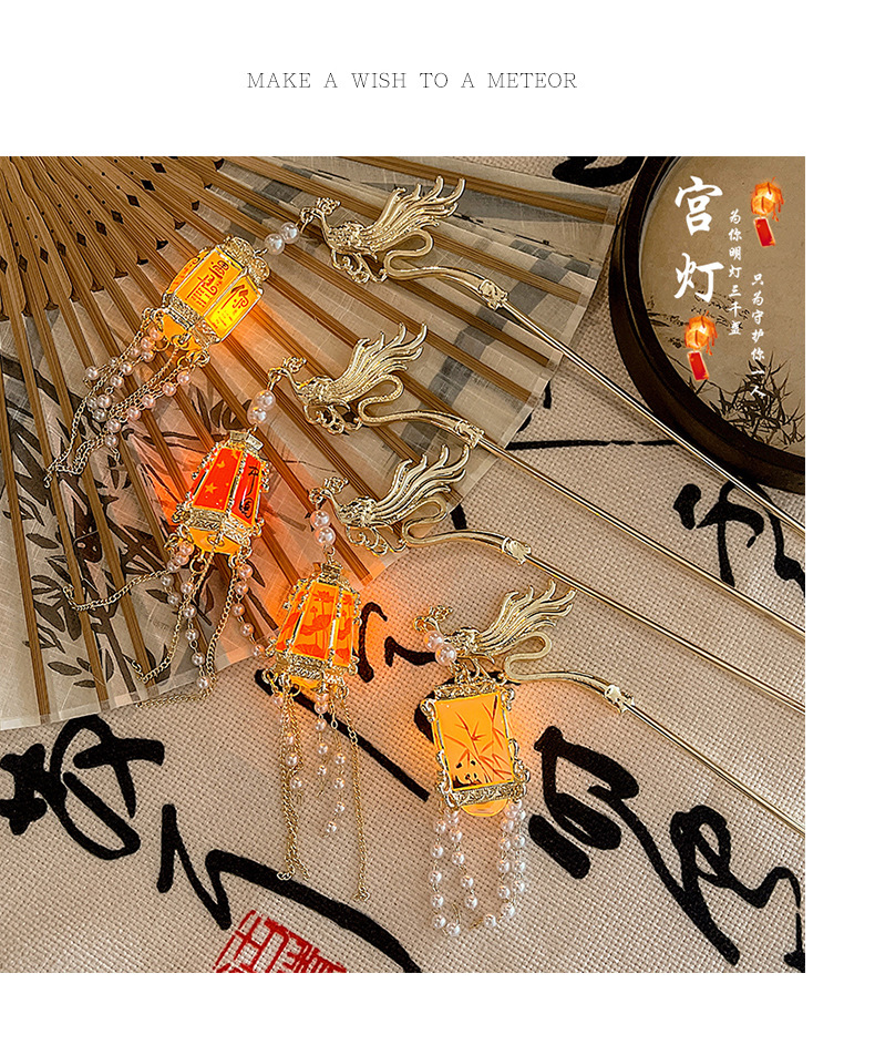 会发光的灯笼发簪女中式古风汉服簪子后脑勺盘发发钗步摇头饰发饰