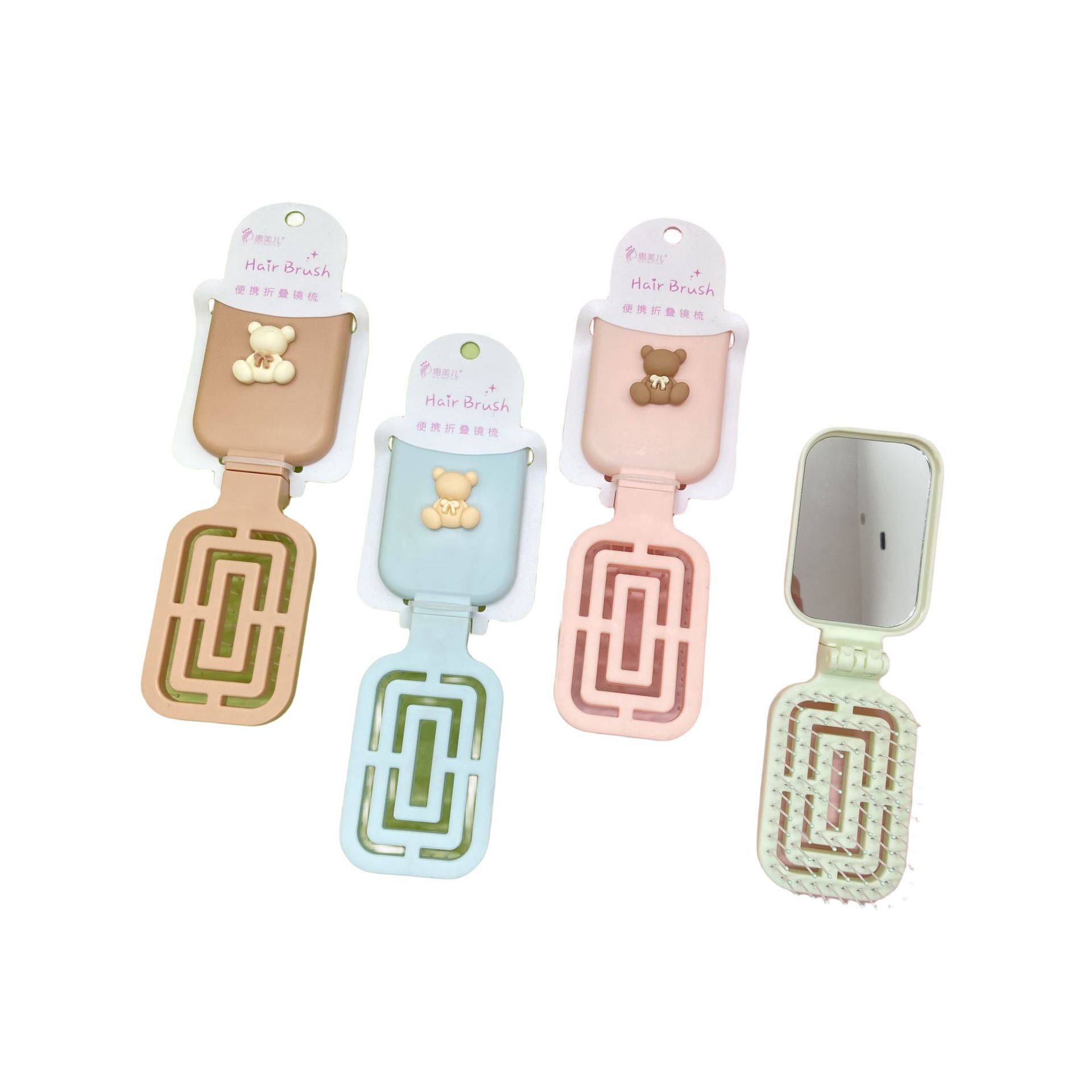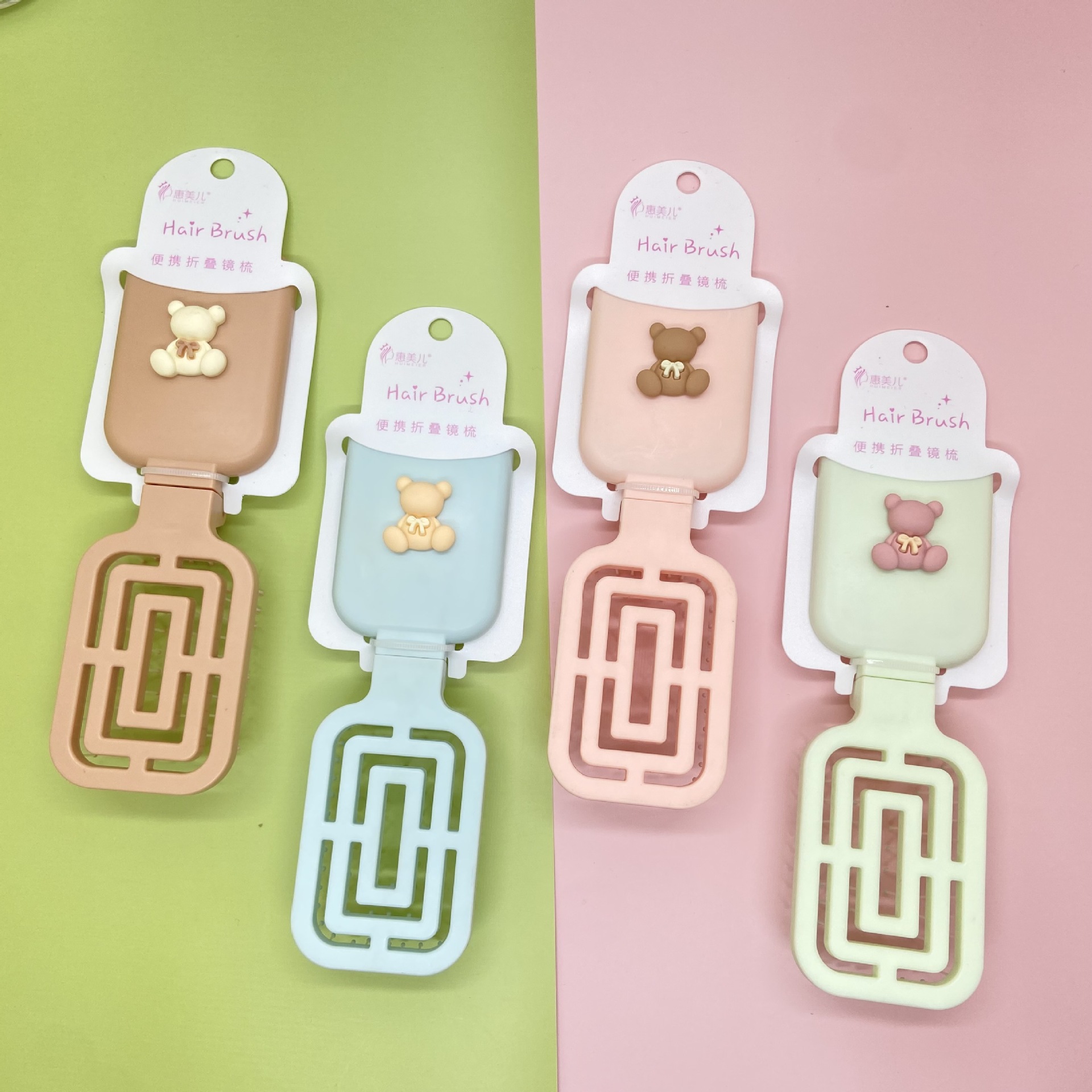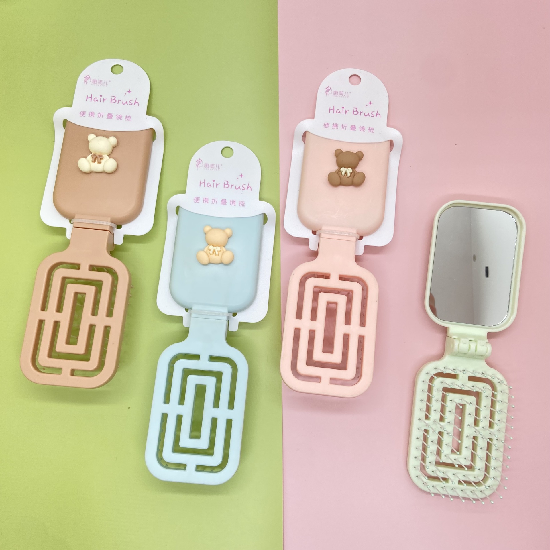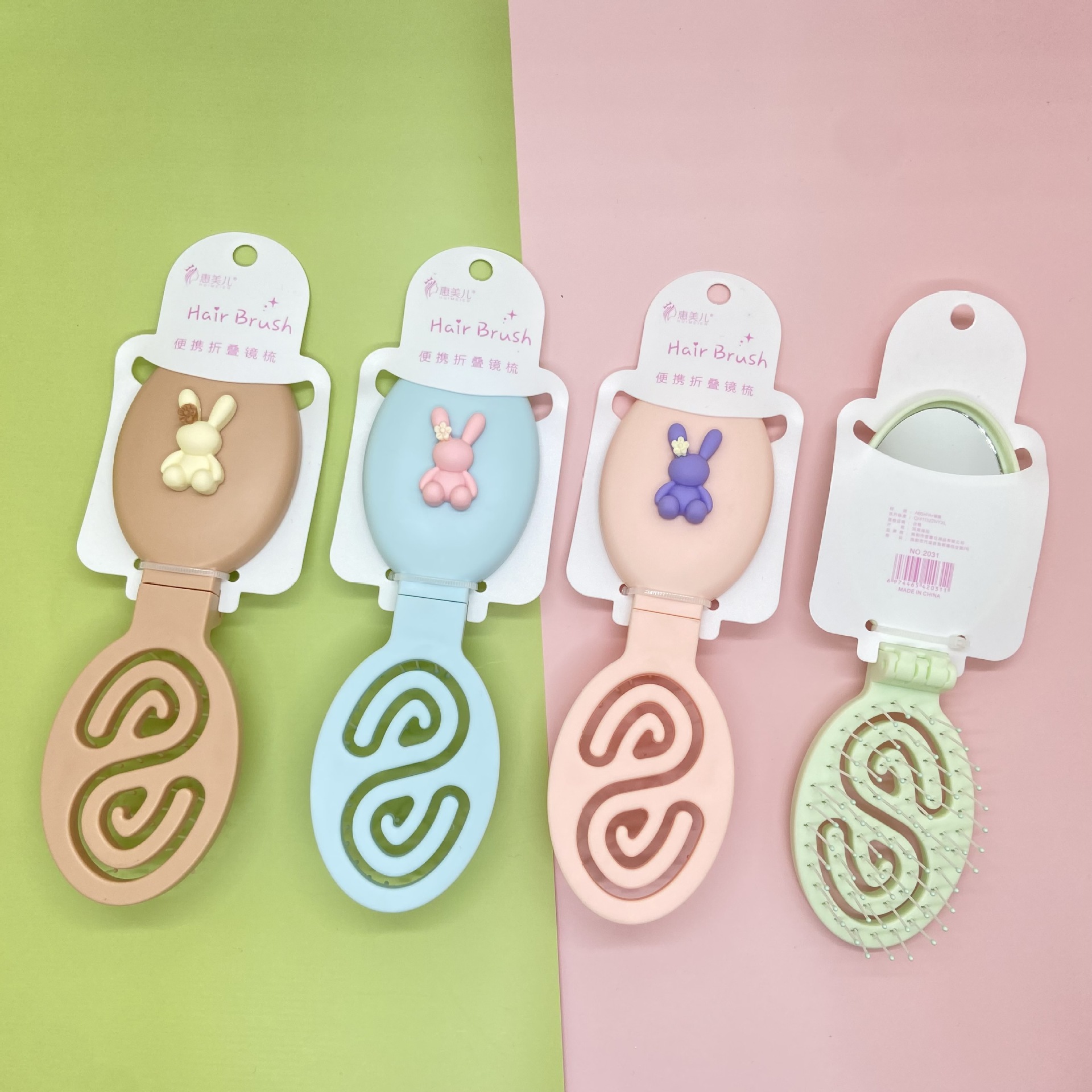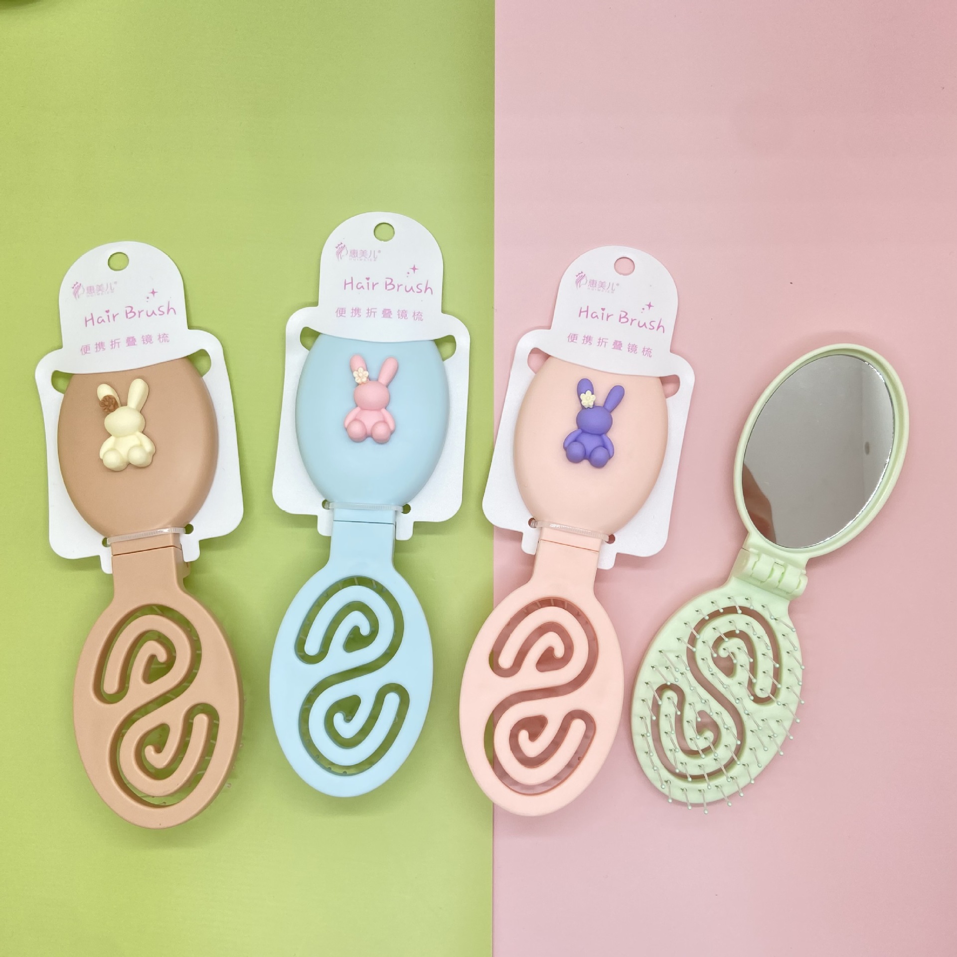 可爱卡通折叠梳带镜顺发梳便携儿童梳学生宿舍打理用直发梳按摩梳