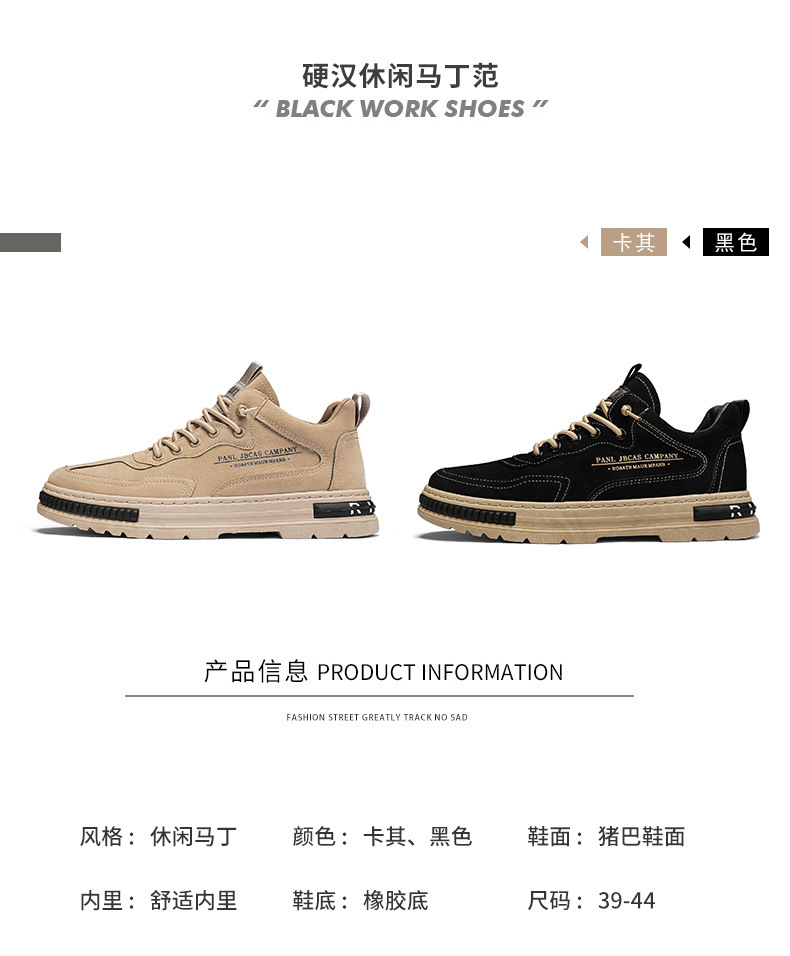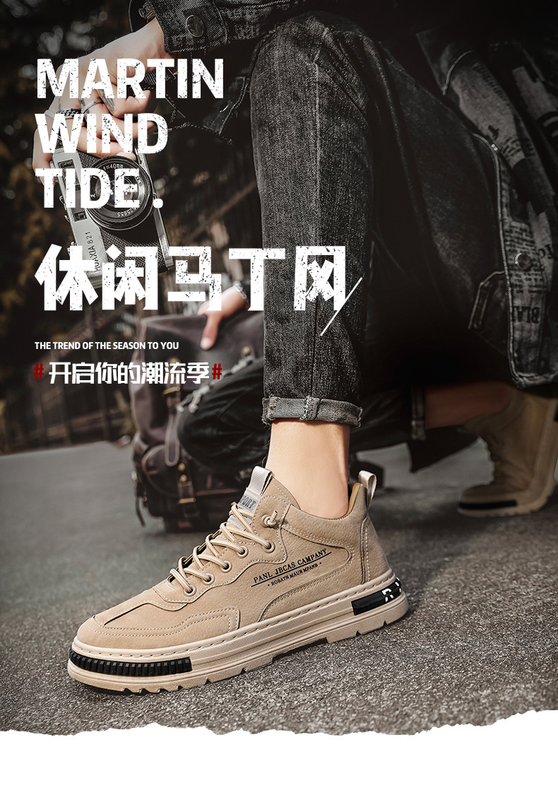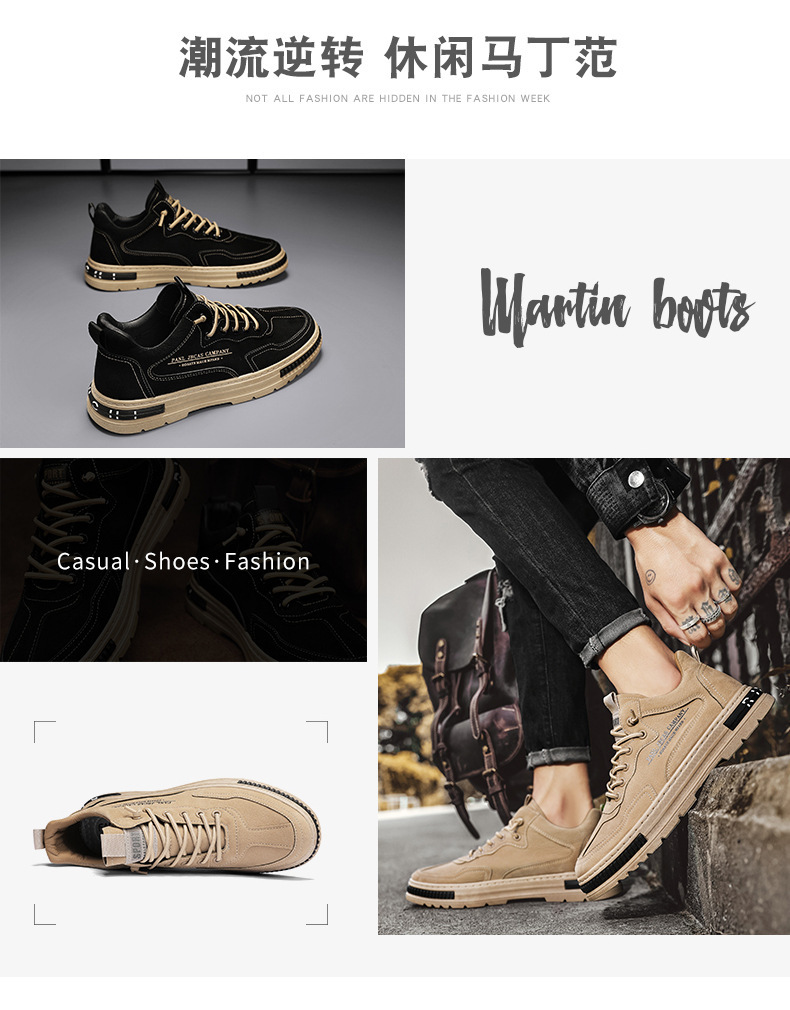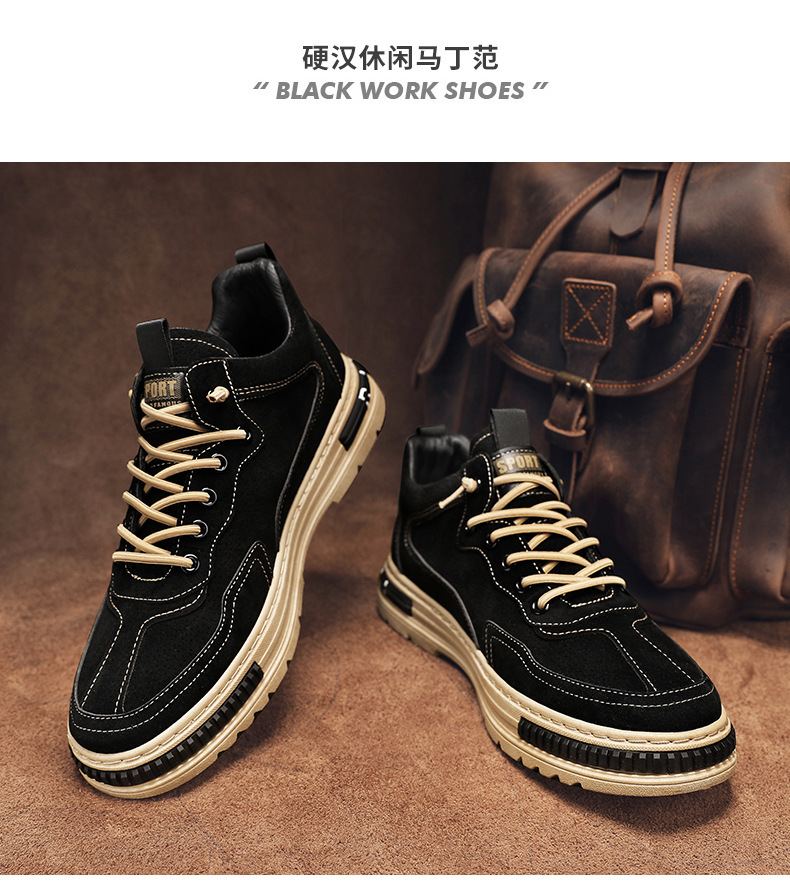 男鞋2025春季新款防滑耐磨工作鞋男士工装鞋潮流百搭厚底马丁靴男