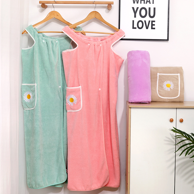 小菊花浴裙 家用 珊瑚绒浴巾性感魔术加厚吸水吊带百变浴袍可穿戴