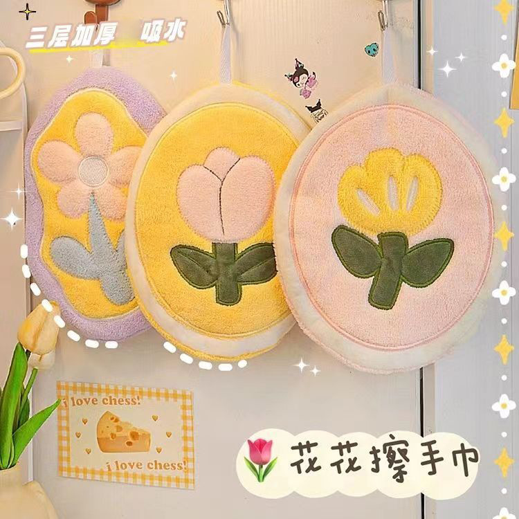 花花擦手巾郁金香小雏菊卡通擦手巾吸水方巾浴室厨房挂式小毛巾