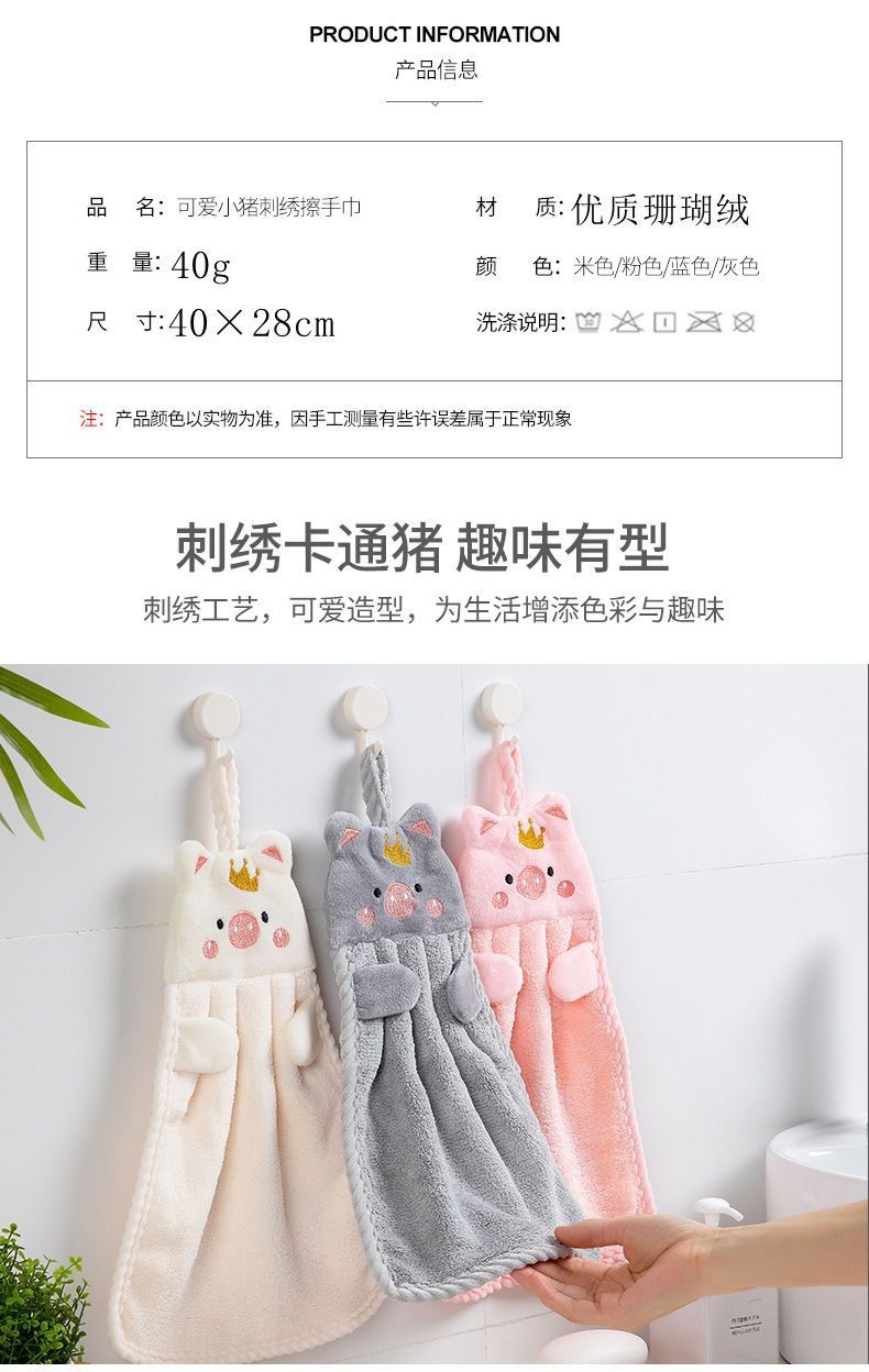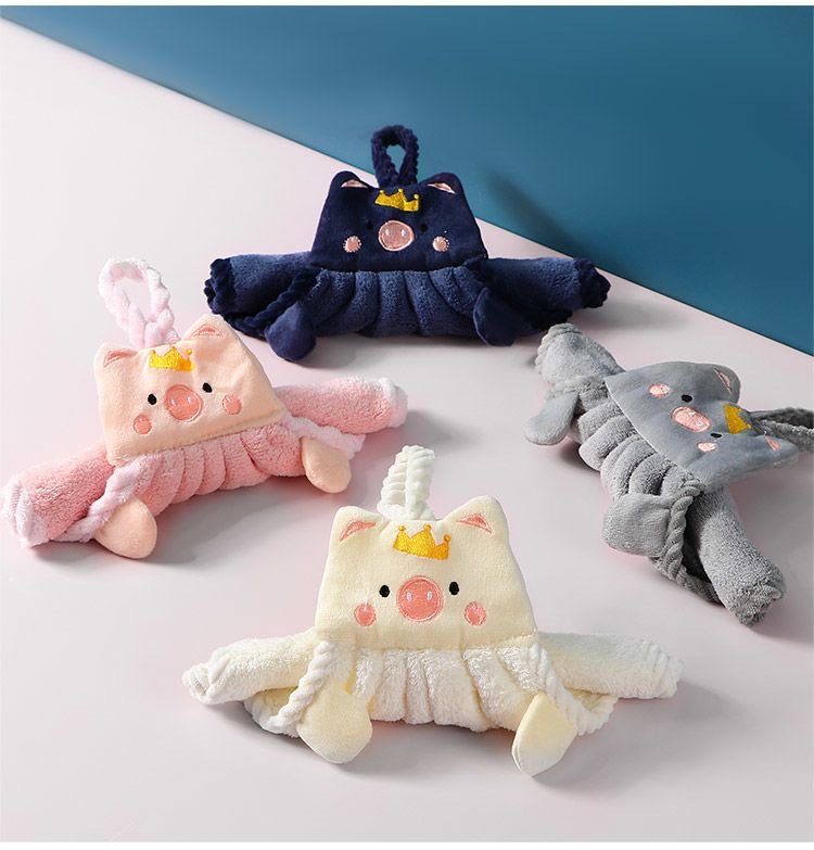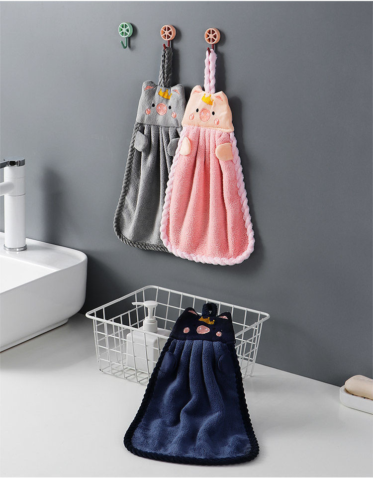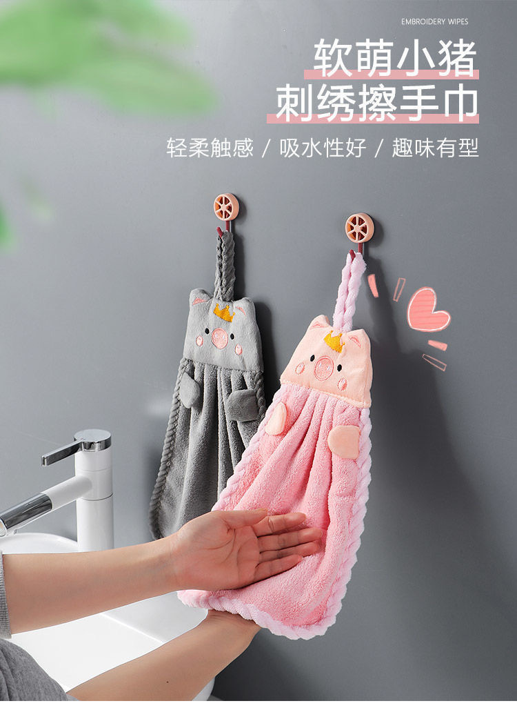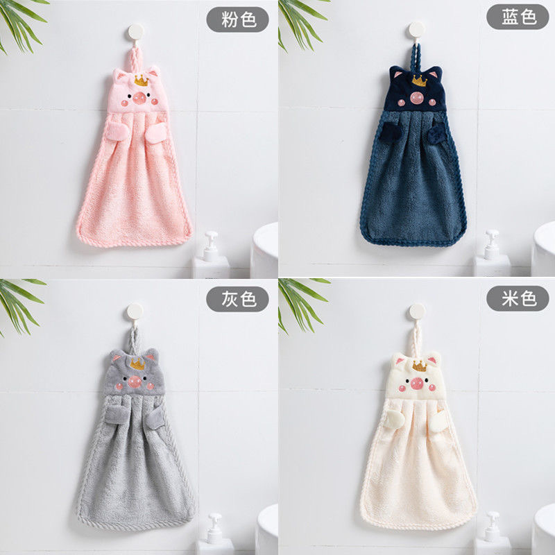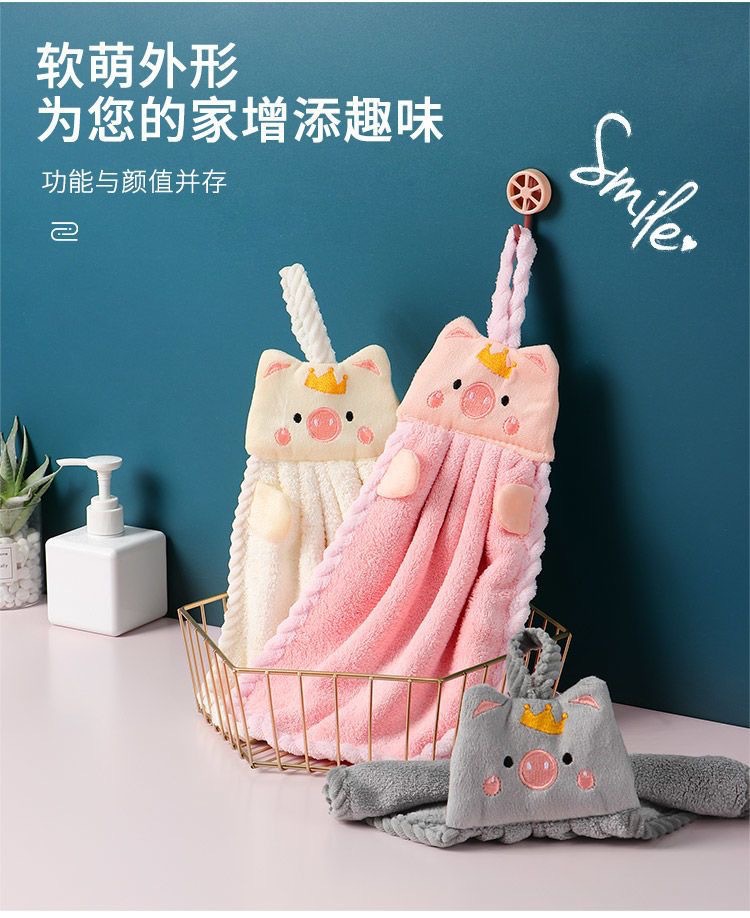 小猪擦手巾厨房吸水小毛巾可挂式珊瑚绒手帕不易掉毛卡通儿童手巾
