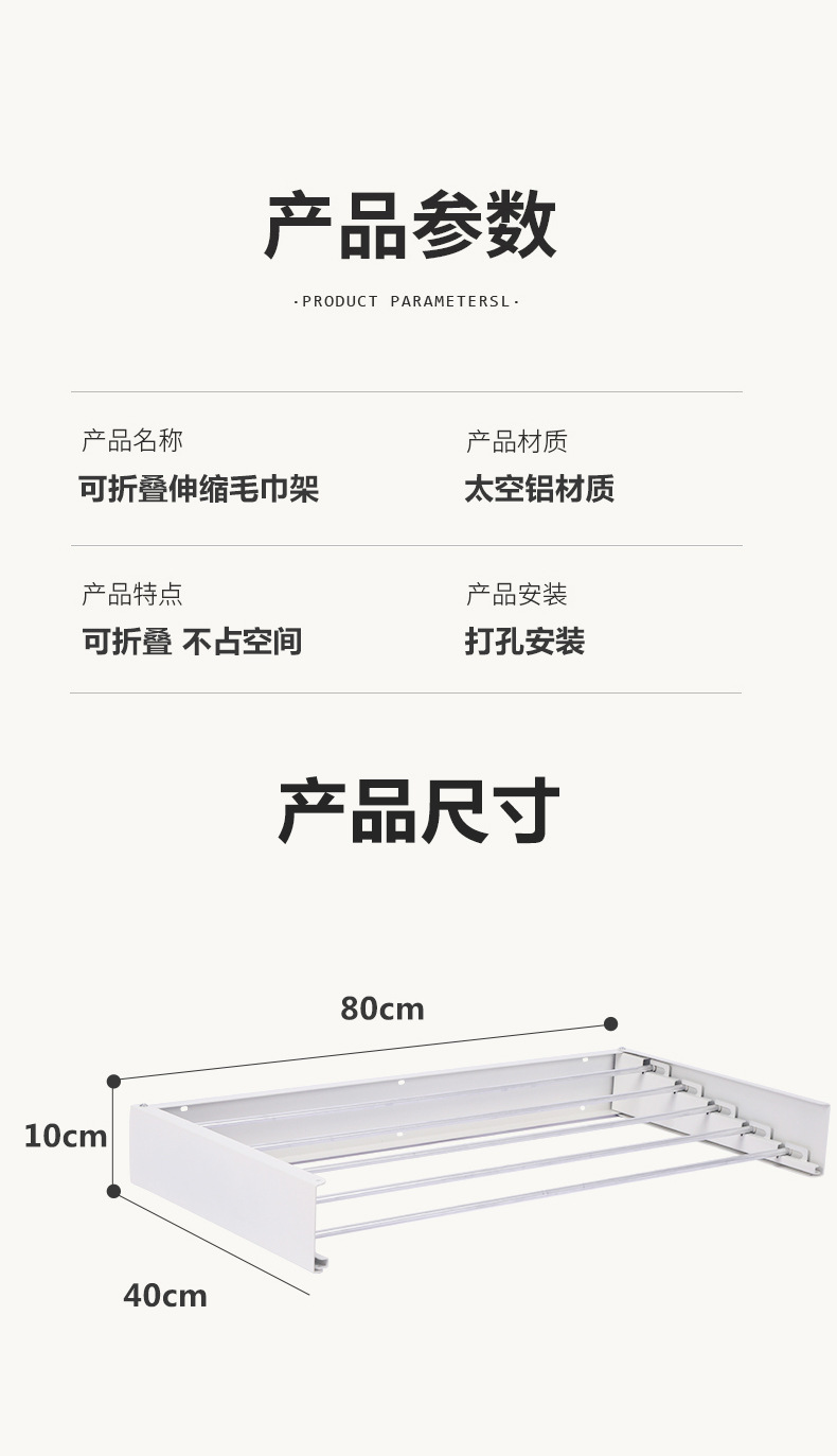 隐藏式浴室毛巾架多功能折叠衣架卫浴五金挂件跨境壁挂式晾晒架