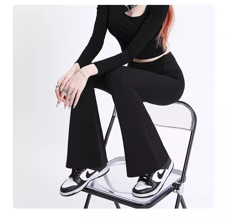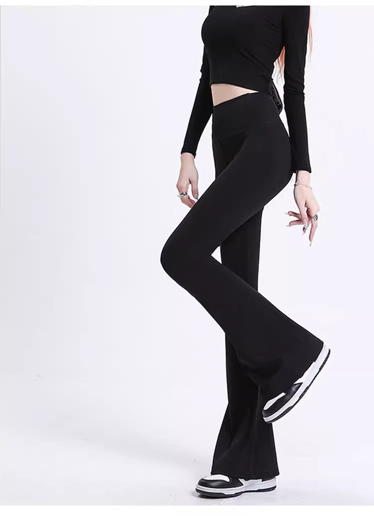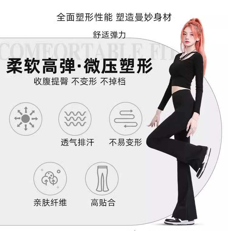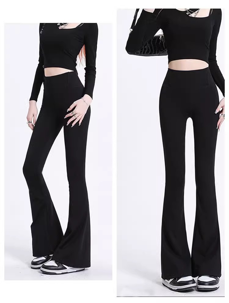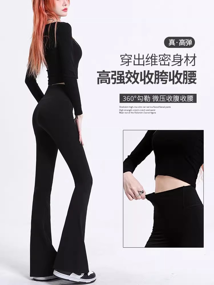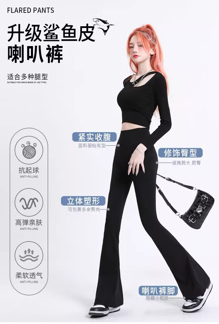 新款微喇裤时尚鲨鱼裤无痕提臀裤高腰外穿垂坠感显瘦休闲裤喇叭裤