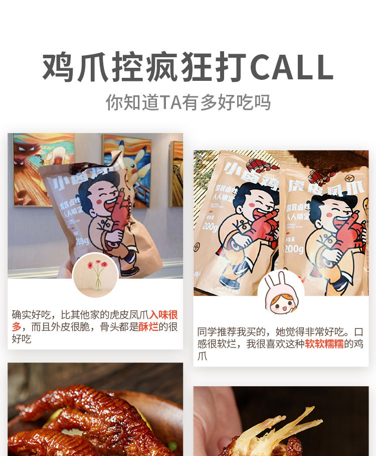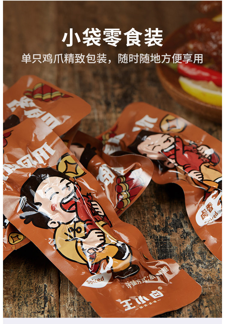 王小卤虎皮凤爪210g香辣火锅卤味鸡爪即食休闲网红香辣零食小吃