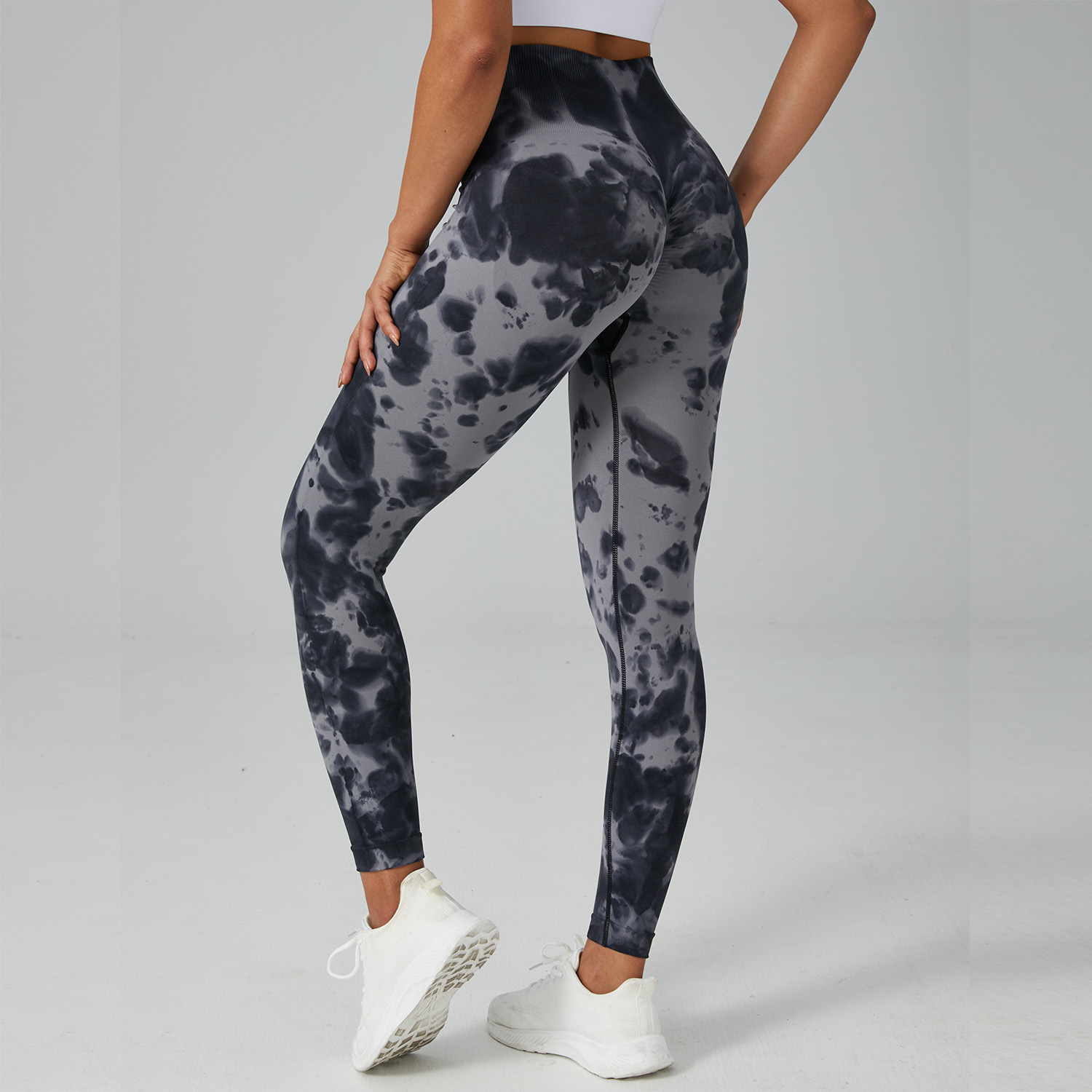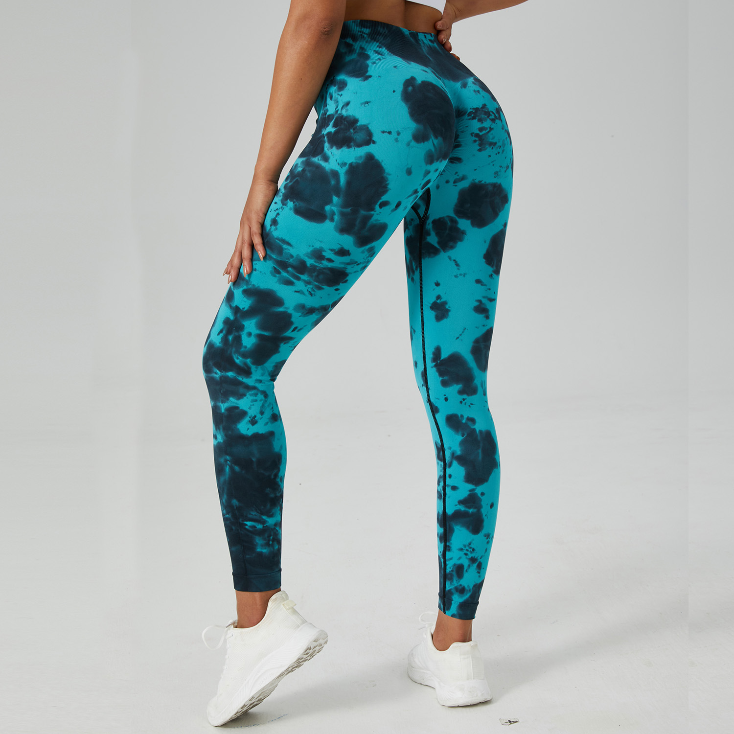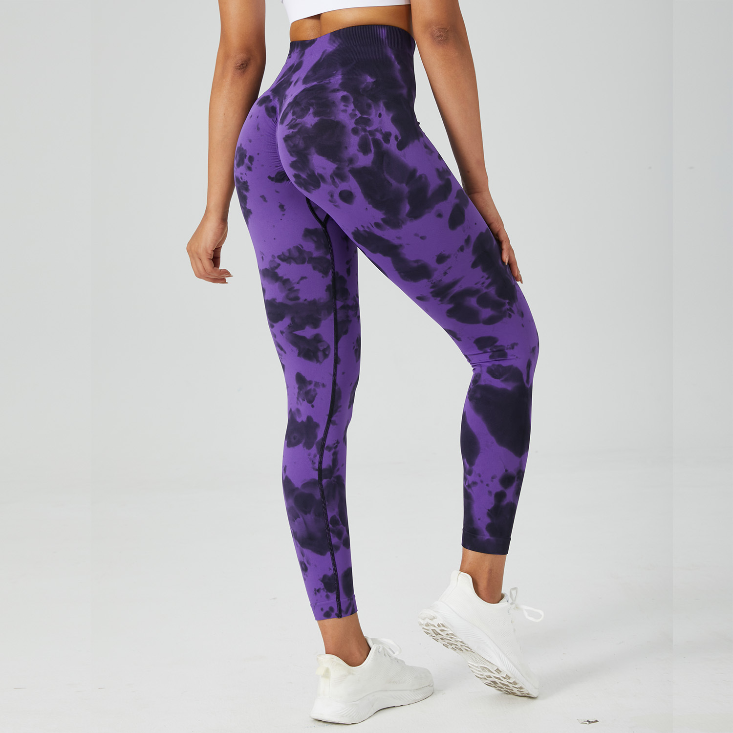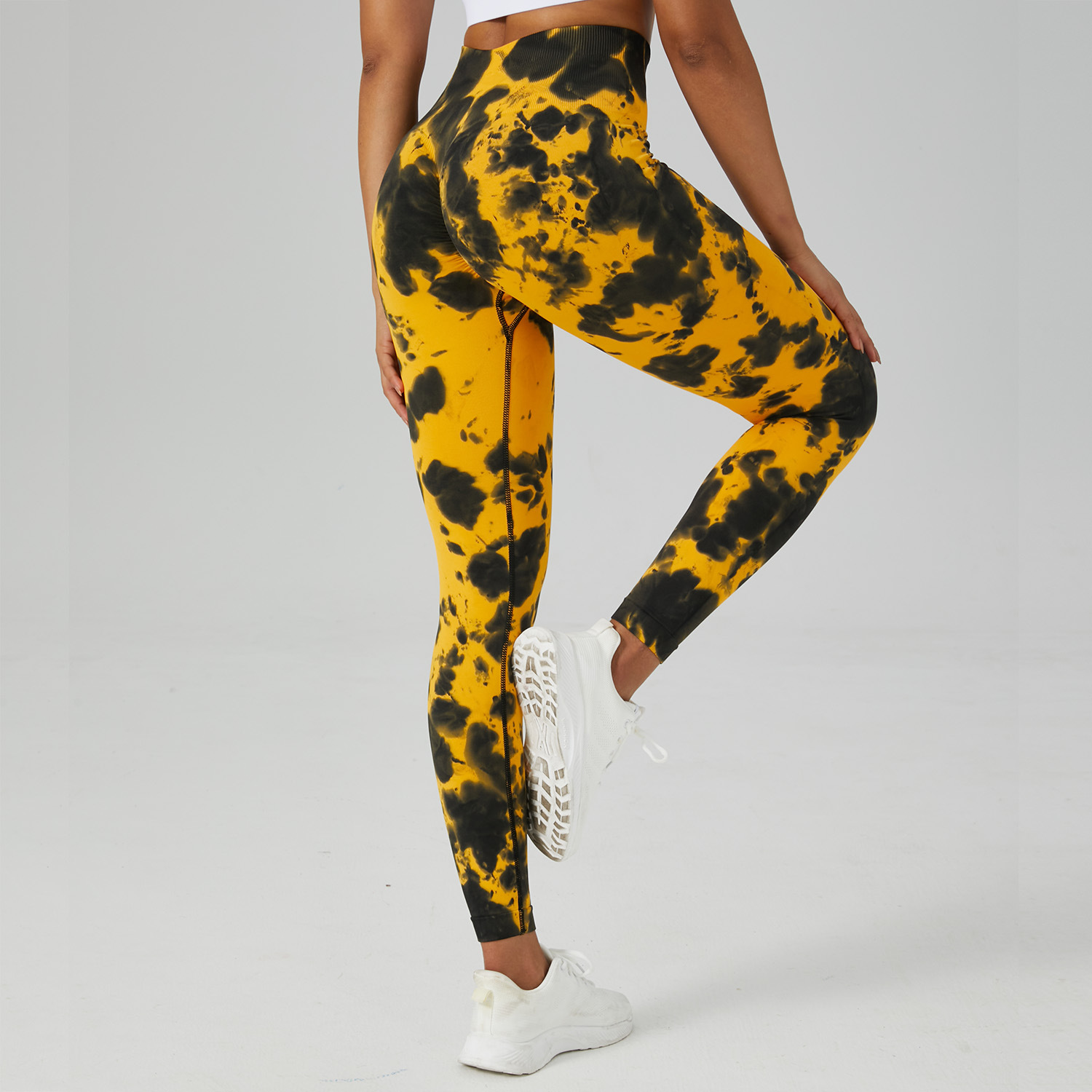 跨境无缝非漂蜜桃臀瑜伽裤高腰收腹健身裤女激光跑步运动紧身长裤