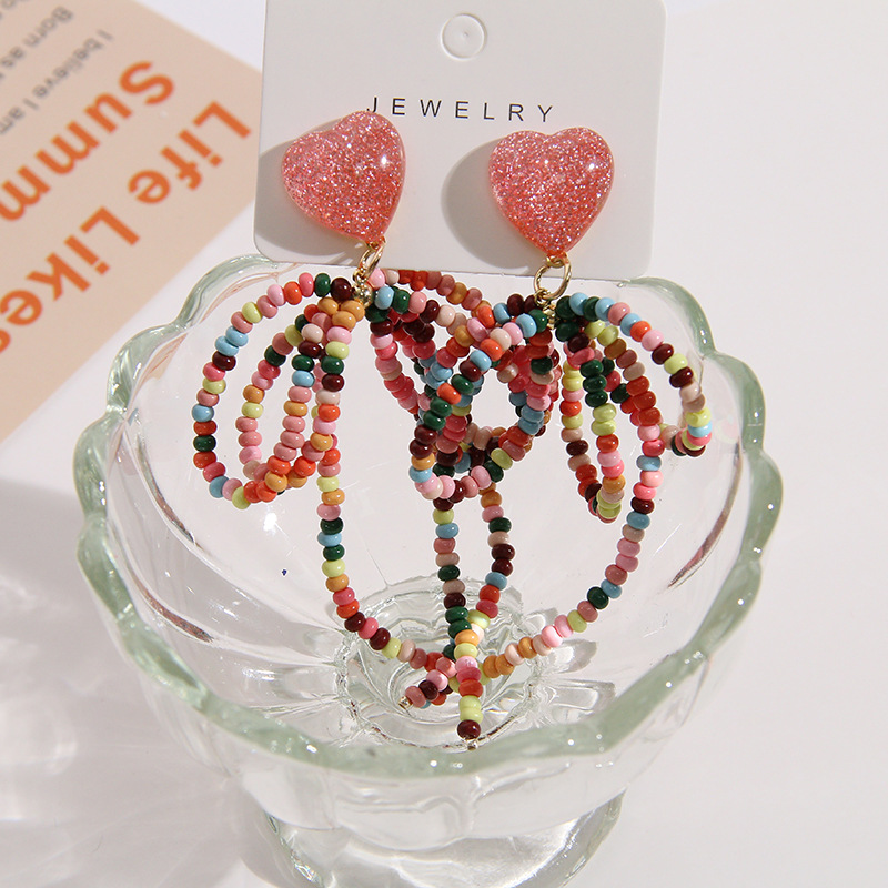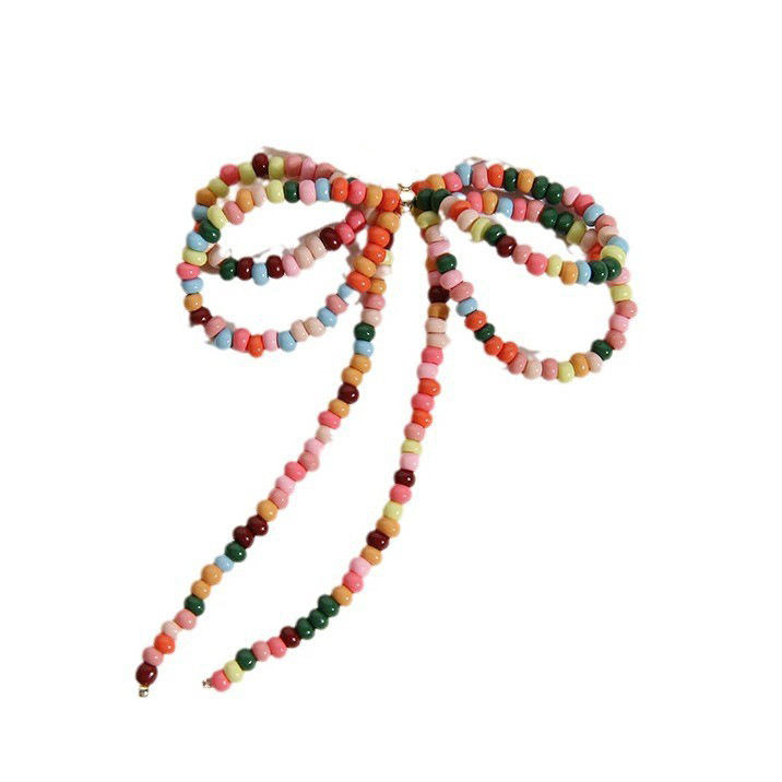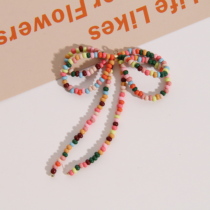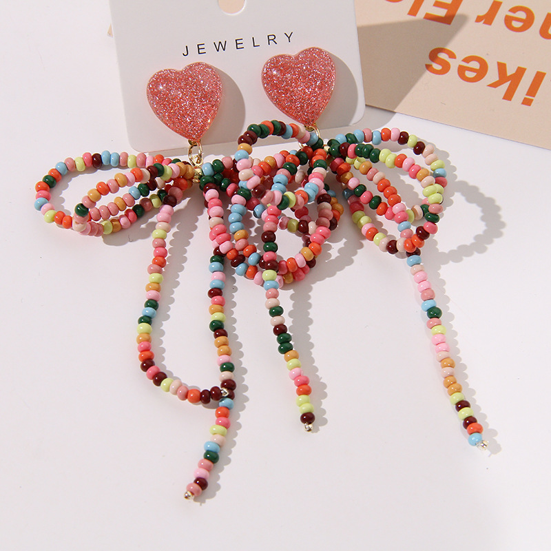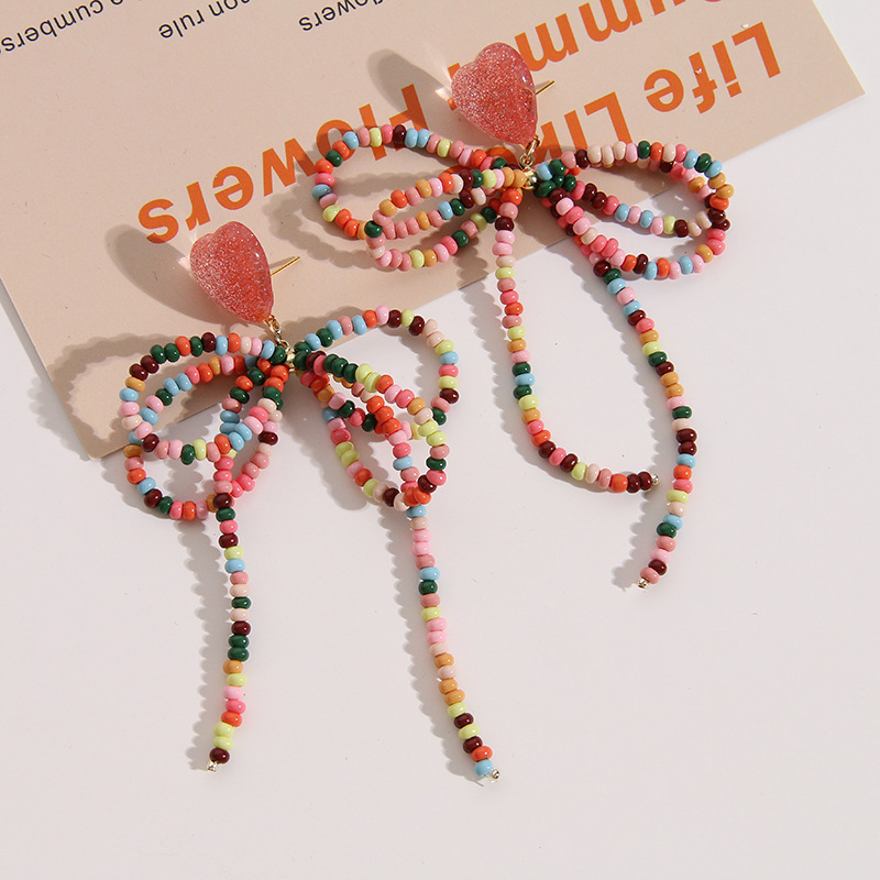 小清新彩色亚克力串珠手工编织长款蝴蝶结耳环女DIY饰品配件批发