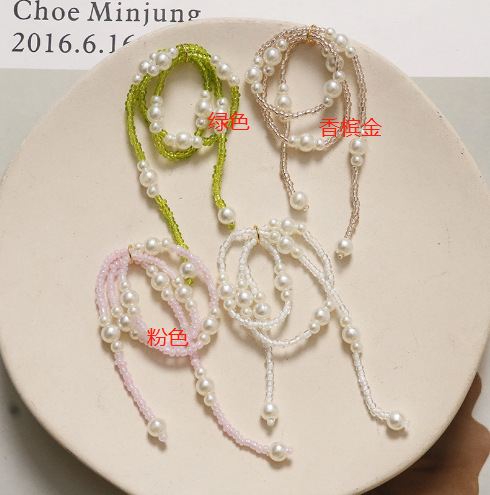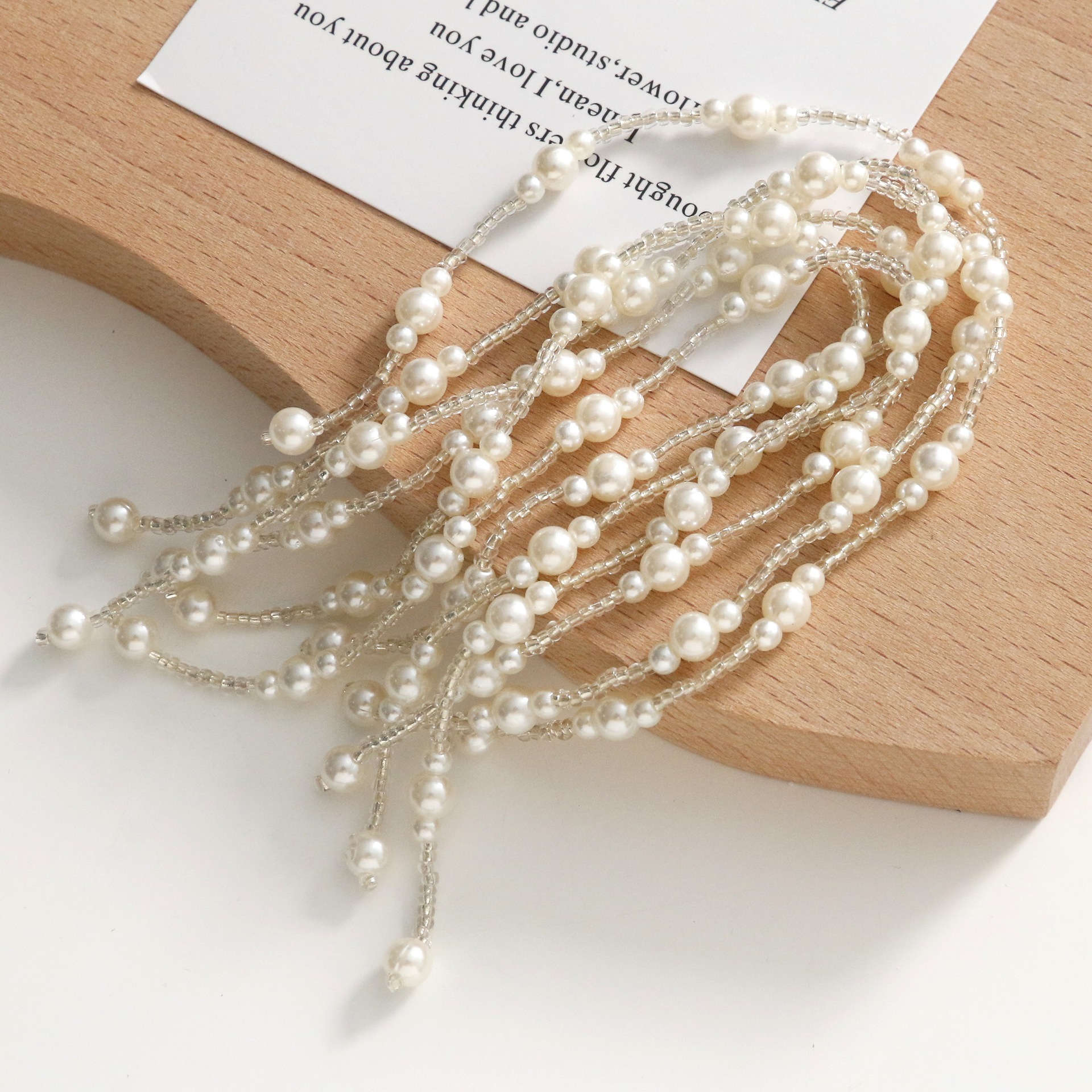 法式唯美长款大小珍珠串珠链条diy亚克力配件耳饰发饰材料批发