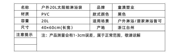 户外野营沐浴袋20L太阳能热水袋野外洗澡淋浴便携冲凉洒水储水袋