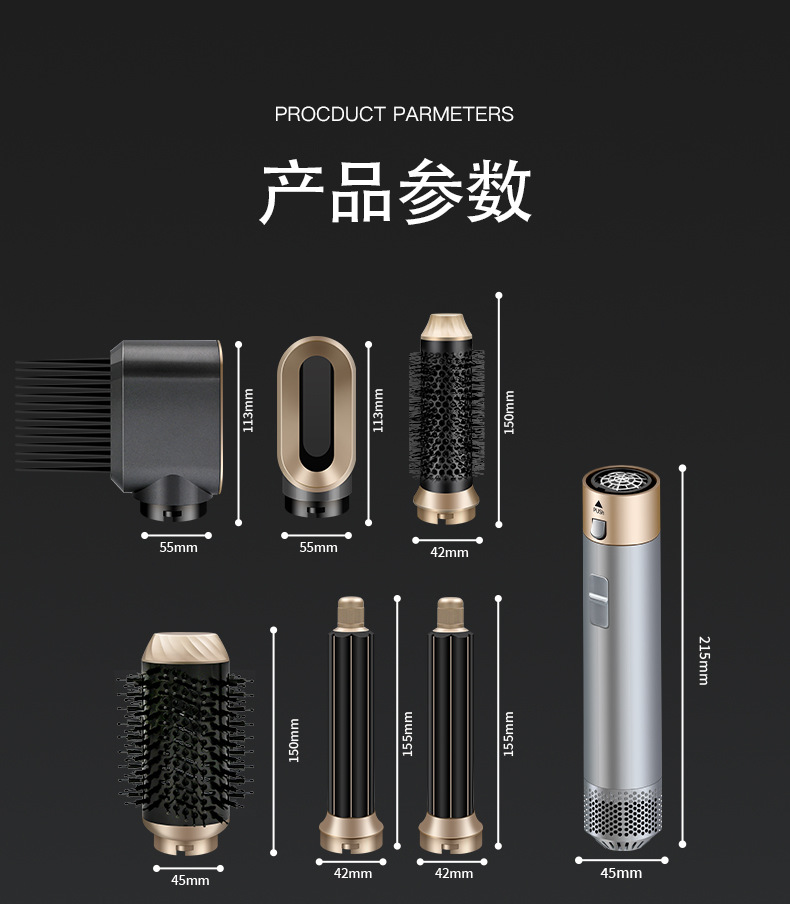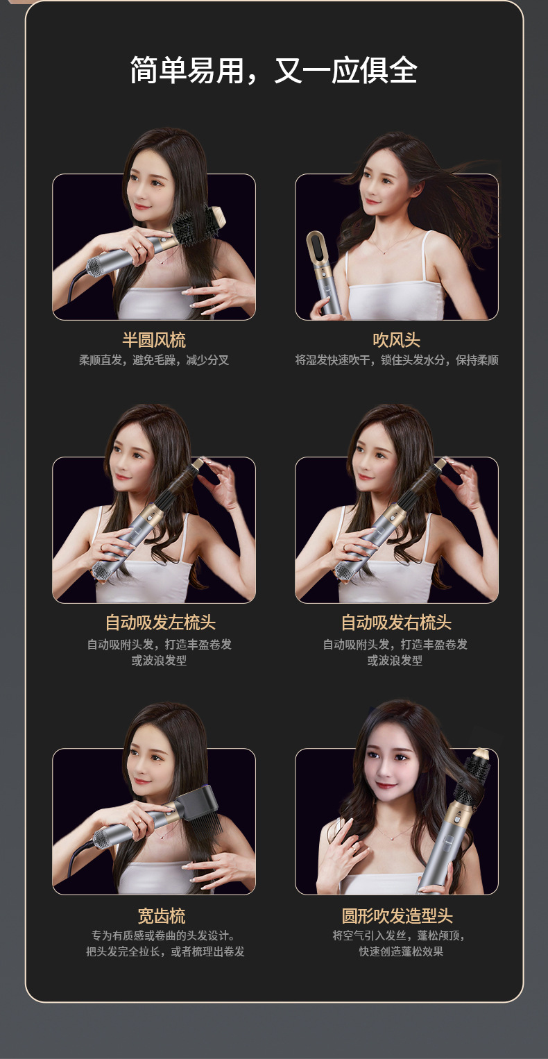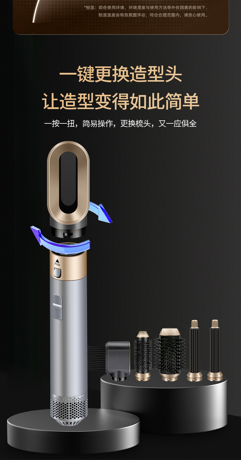 亚马逊跨境新款五合一多头功能便携吹风机家用自动直热风梳卷发棒