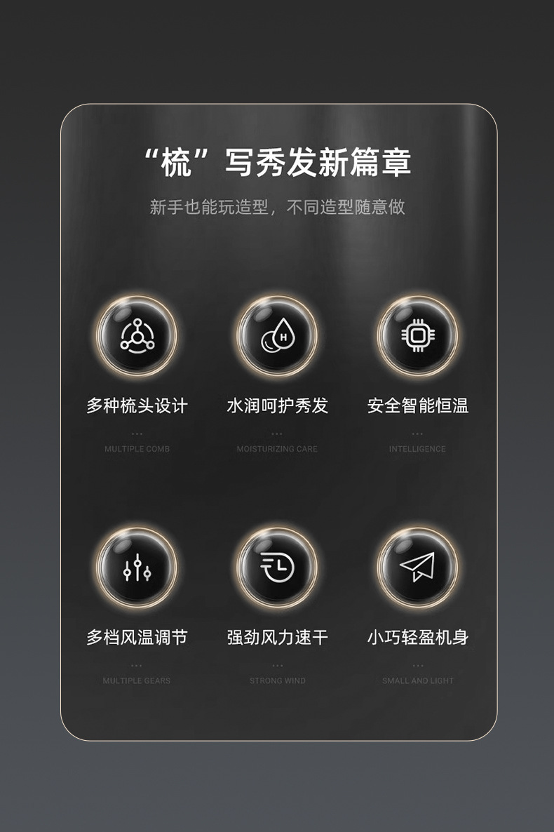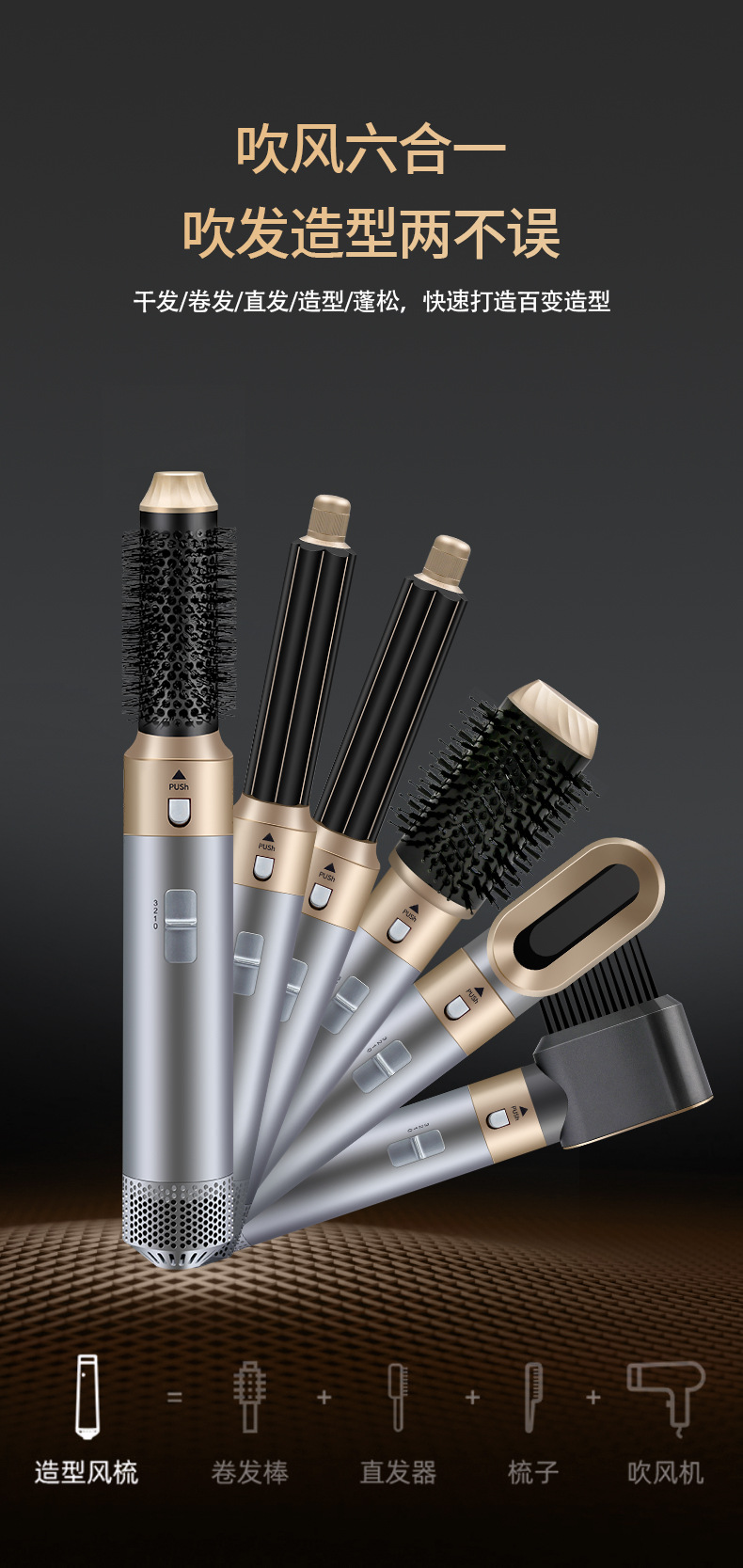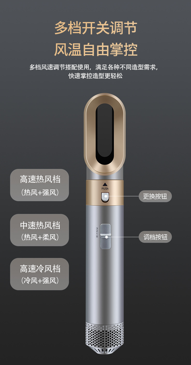 亚马逊跨境新款五合一多头功能便携吹风机家用自动直热风梳卷发棒