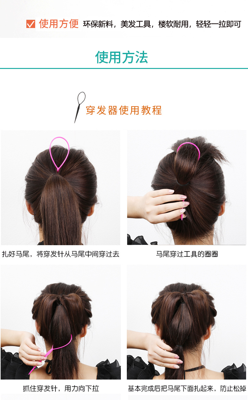韩版盘发器儿童拉发针穿发棒拉发两件套拉发器编发丸子头工具神器