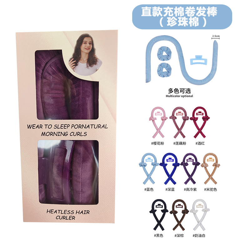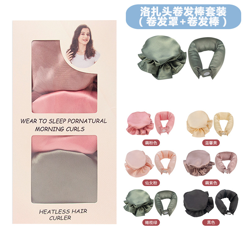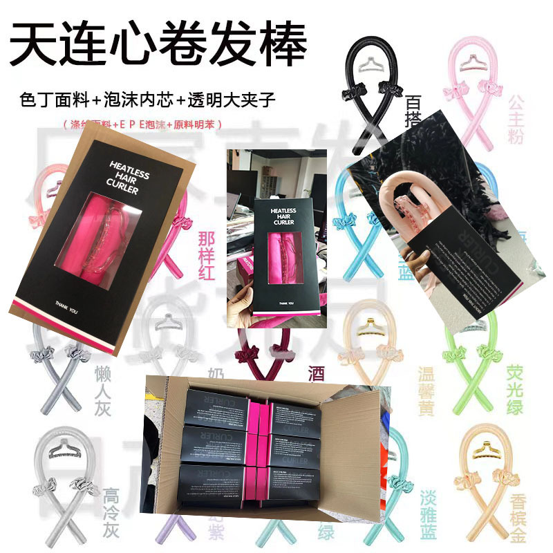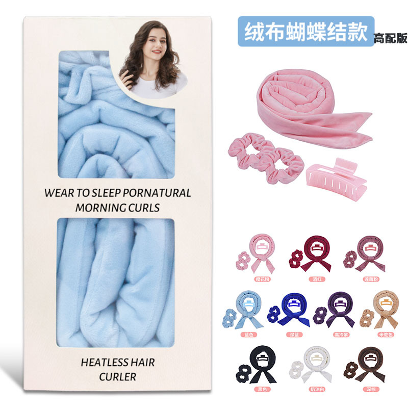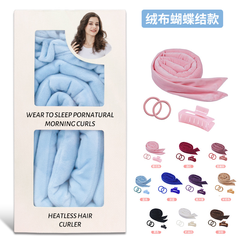 跨境专供无热懒人卷发棒套装礼盒蝴蝶绒布仿真丝带铁丝多用盒子