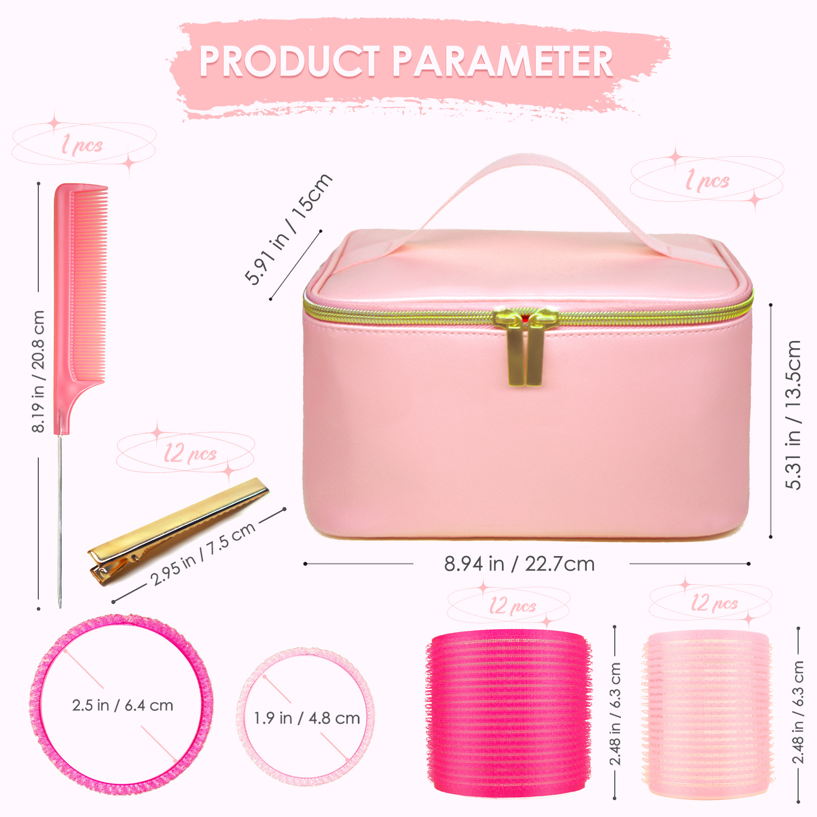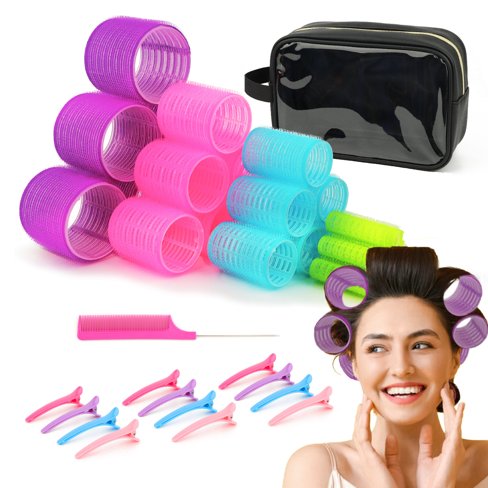 跨境空气刘海卷发筒大号化妆包卷发器套装八字刘海懒人卷发神器