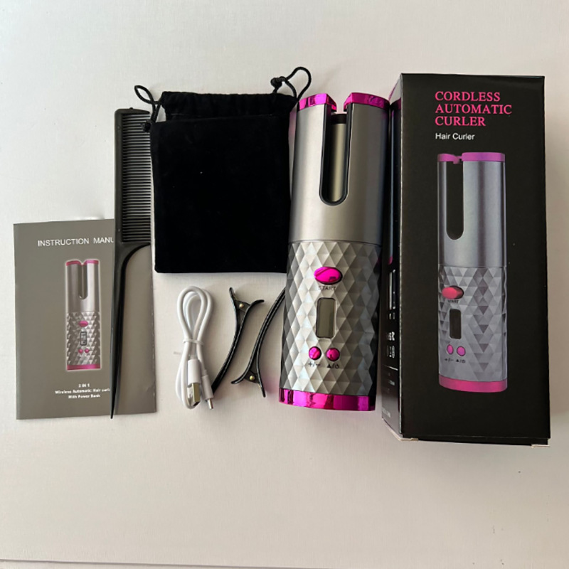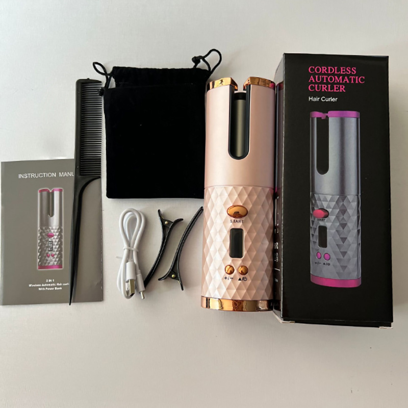 跨境智能无线自动卷发器便携美发梳多用途懒人USB电动卷发棒套装