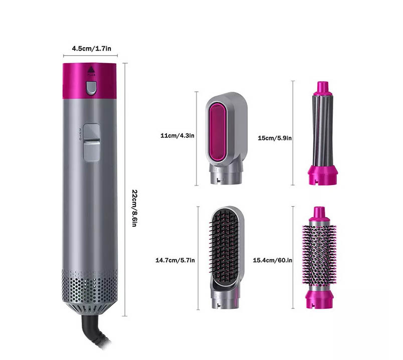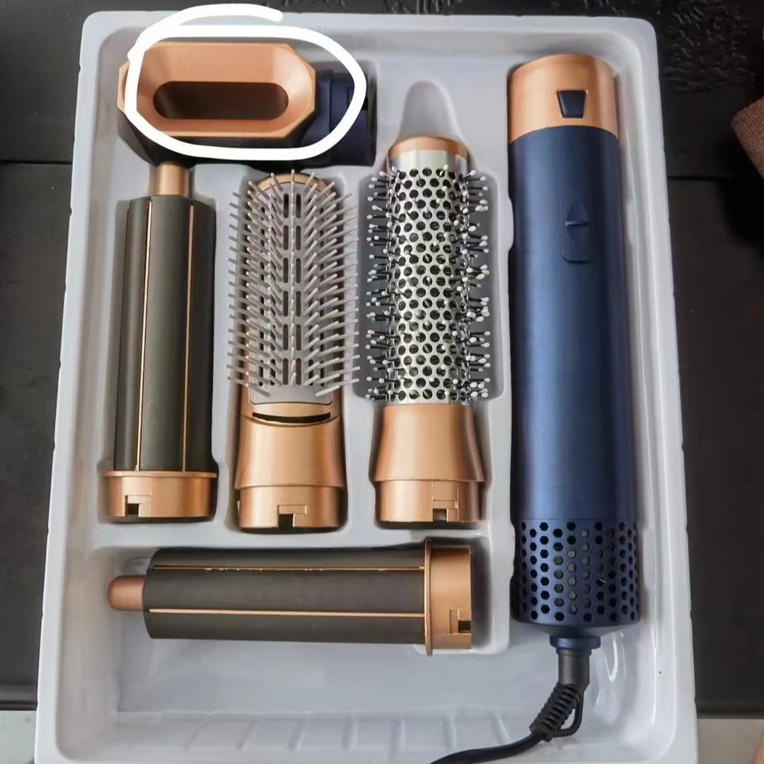 跨境hot comb五合一热风梳铝合金直发器自动烫卷发棒吹风机套装
