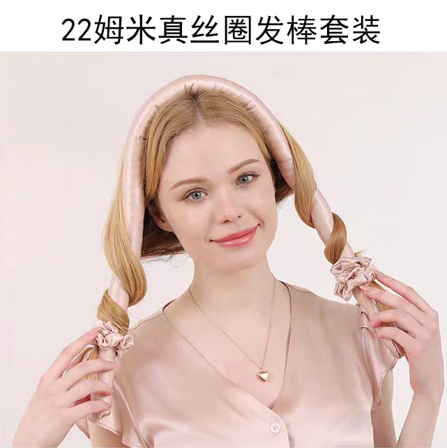 22姆米真丝卷发棒套装无热睡眠大波浪桑蚕丝卷发器跨境不伤发免烫