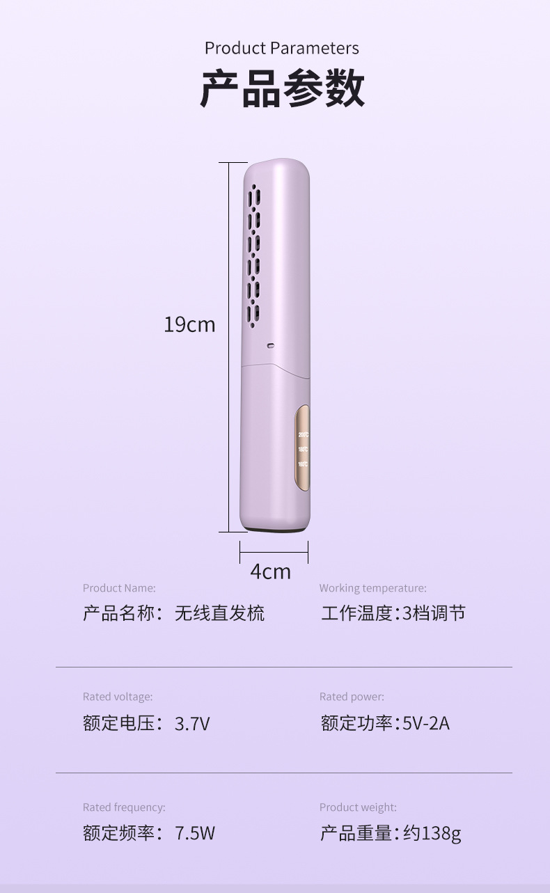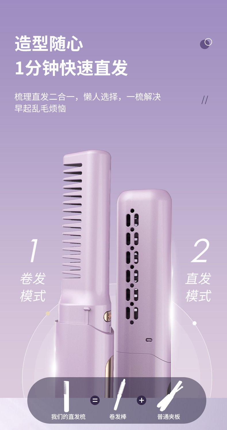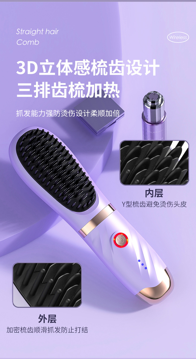 迷你充电直发梳宿舍便携旅行时尚护发柔顺护发直发器无线直发梳