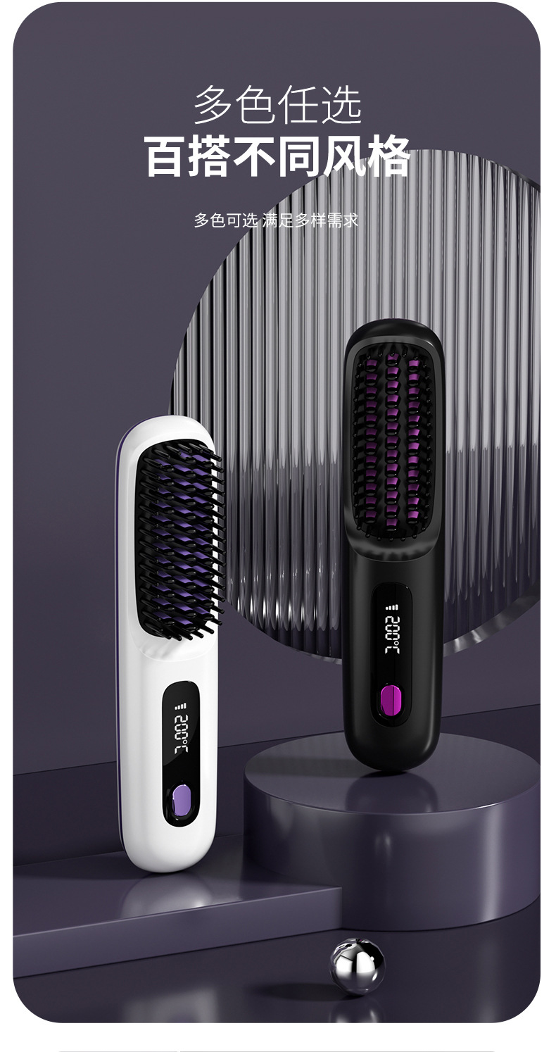 2024新款液晶USB充电陶瓷加热电梳子直发器无线便携直发梳