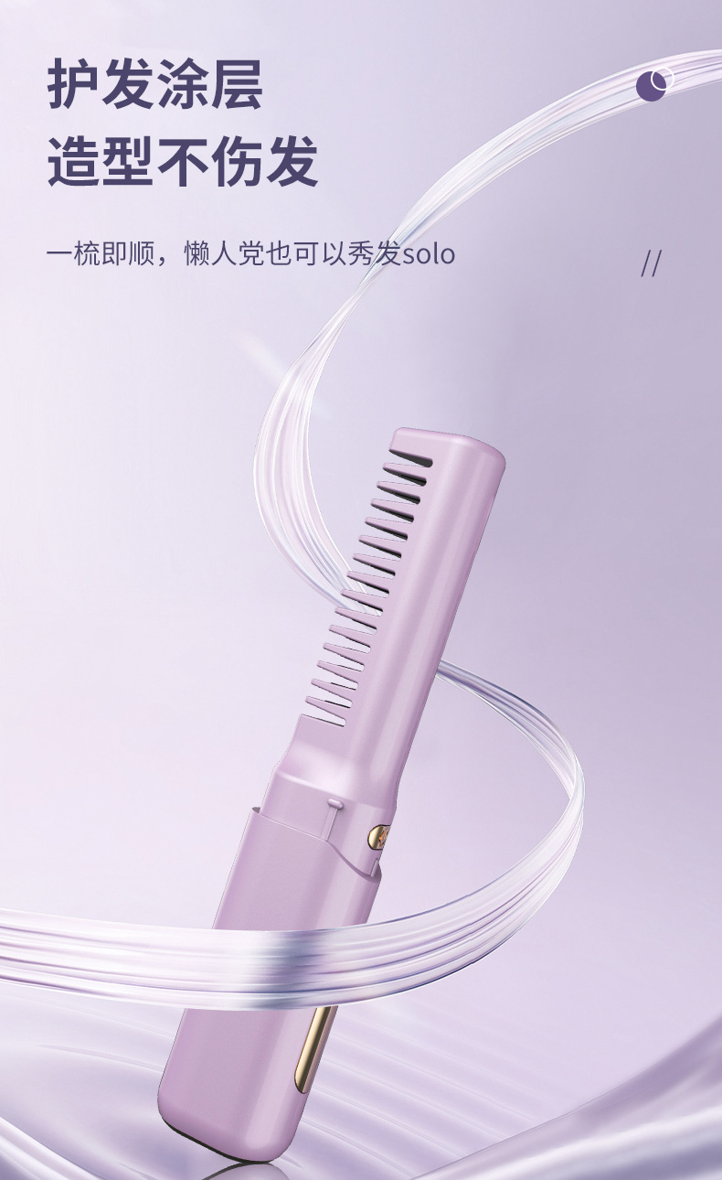 跨境USB充电直发器直发梳小型充电出差旅游便携美发无线直发神器
