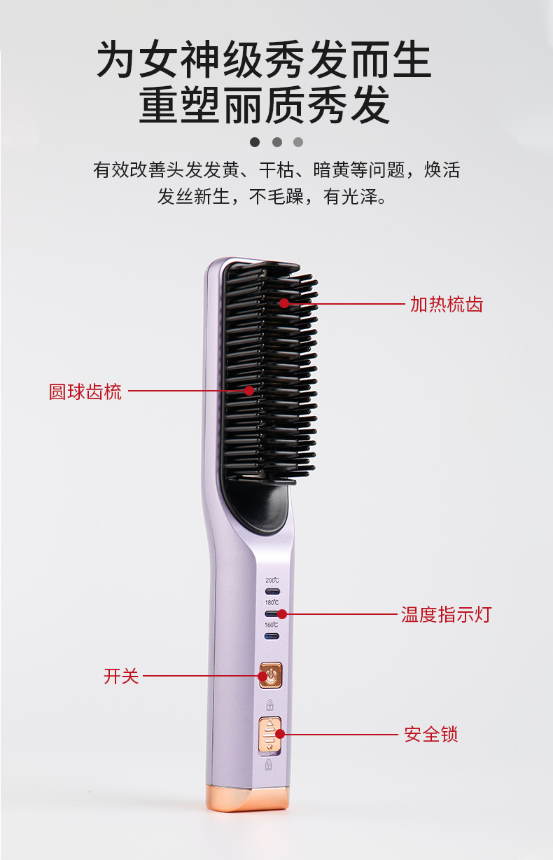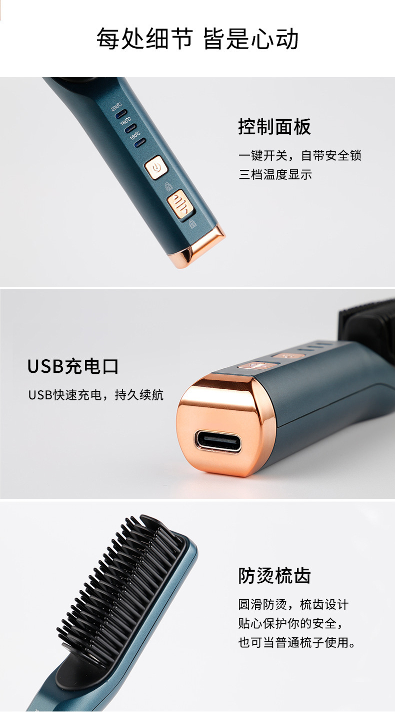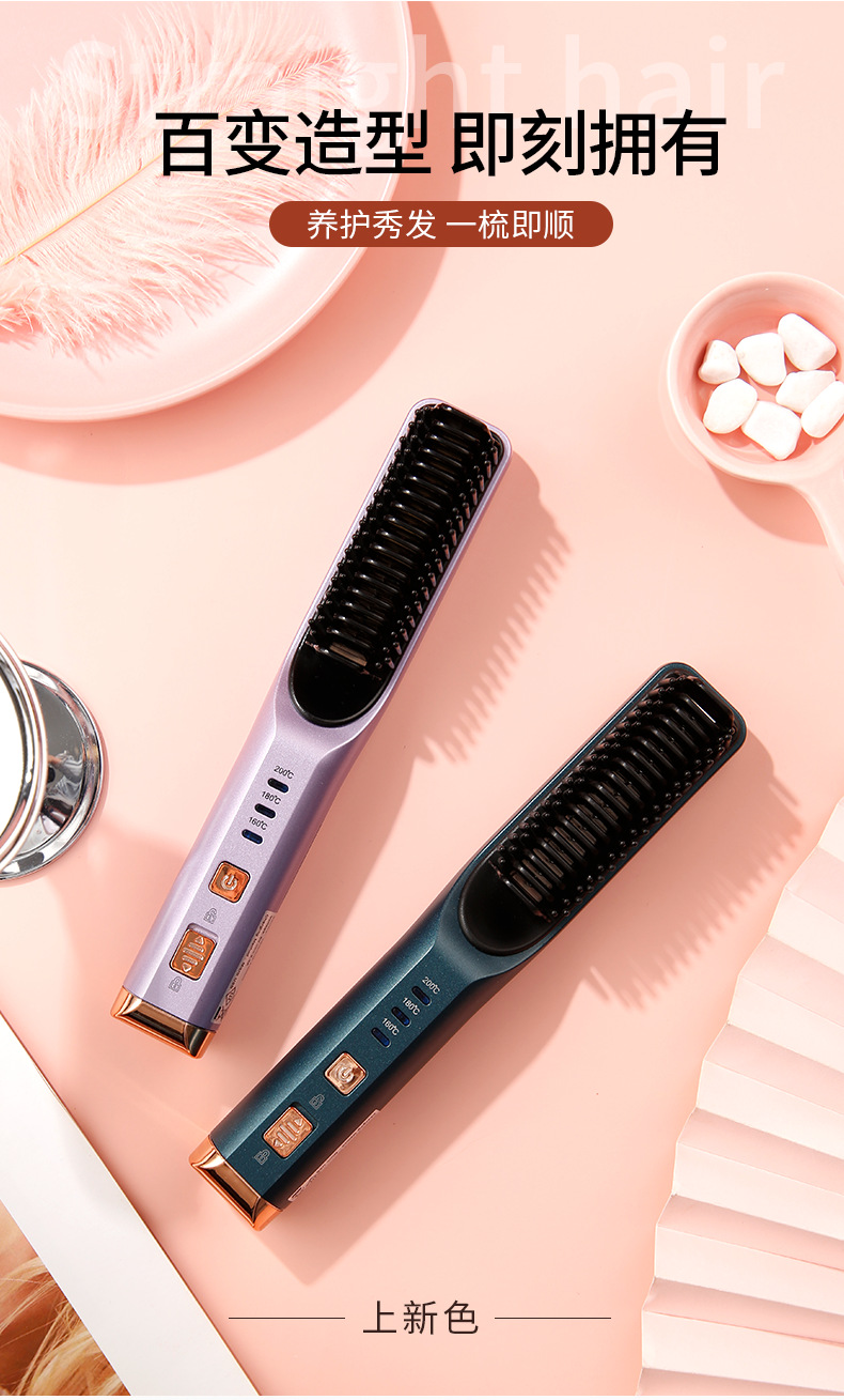 新款艾尔迷你直发器充电直发梳卷无线卷发梳直两用陶瓷小型卷发器