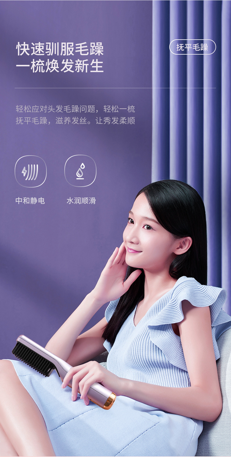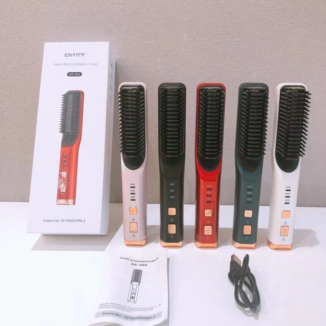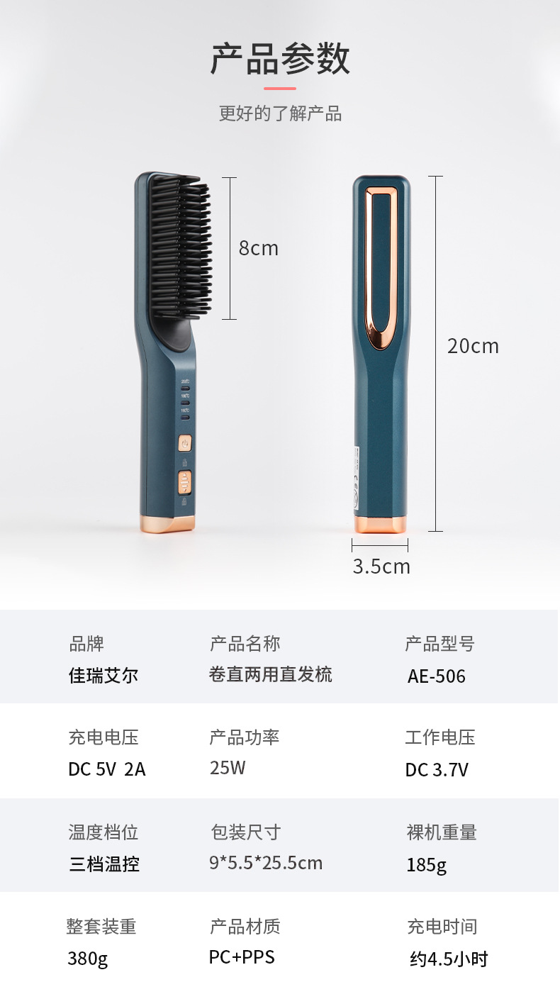 新款艾尔迷你直发器充电直发梳卷无线卷发梳直两用陶瓷小型卷发器