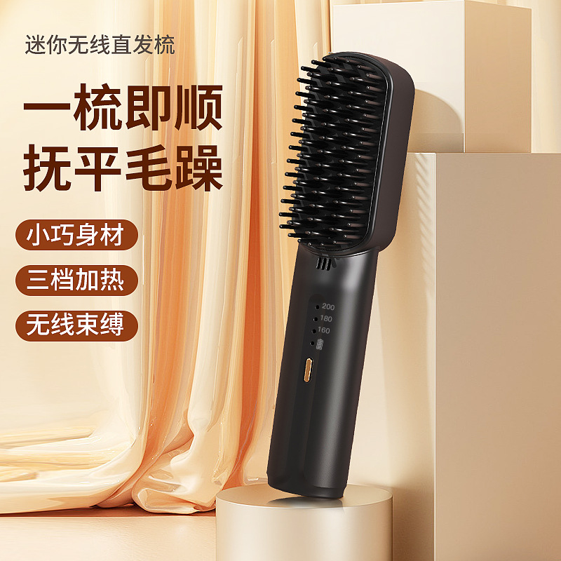 新款充电直发梳无线便携旅行懒人电梳负离子不伤发直卷两用直发器