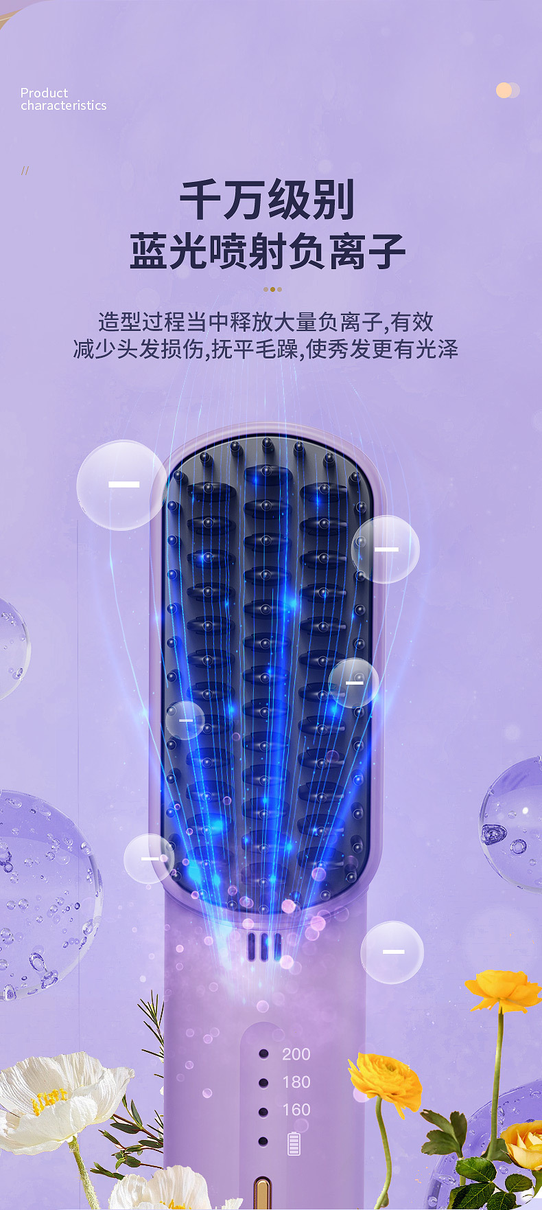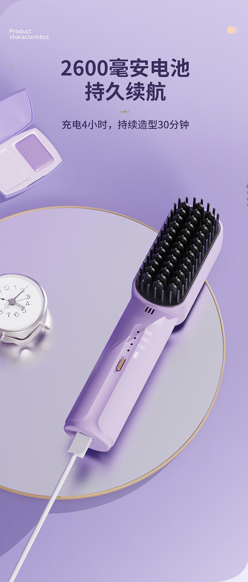 新款跨直发梳境迷你直发器便携式USB充电无线卷直两用造型梳家用