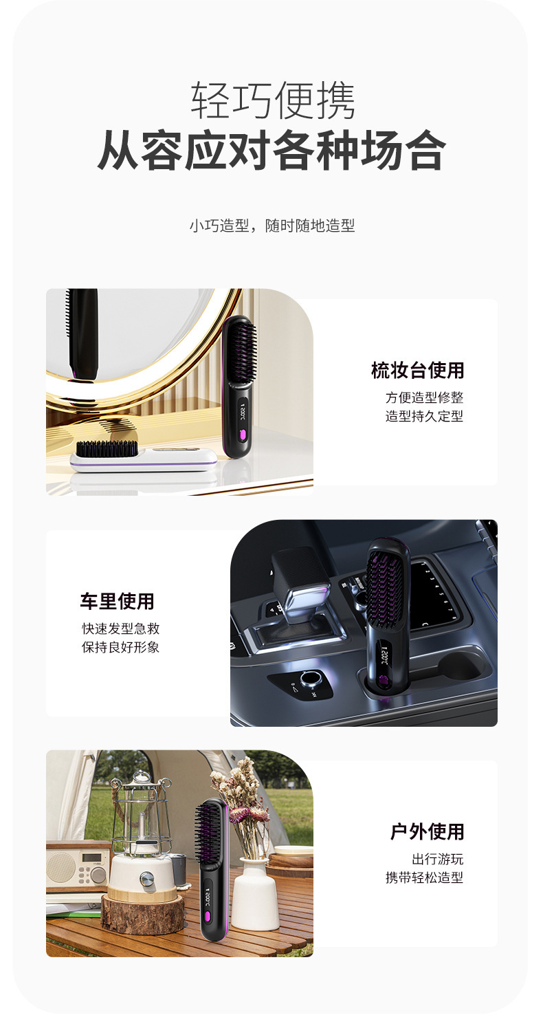2024新款液晶USB充电陶瓷加热电梳子直发器无线便携直发梳
