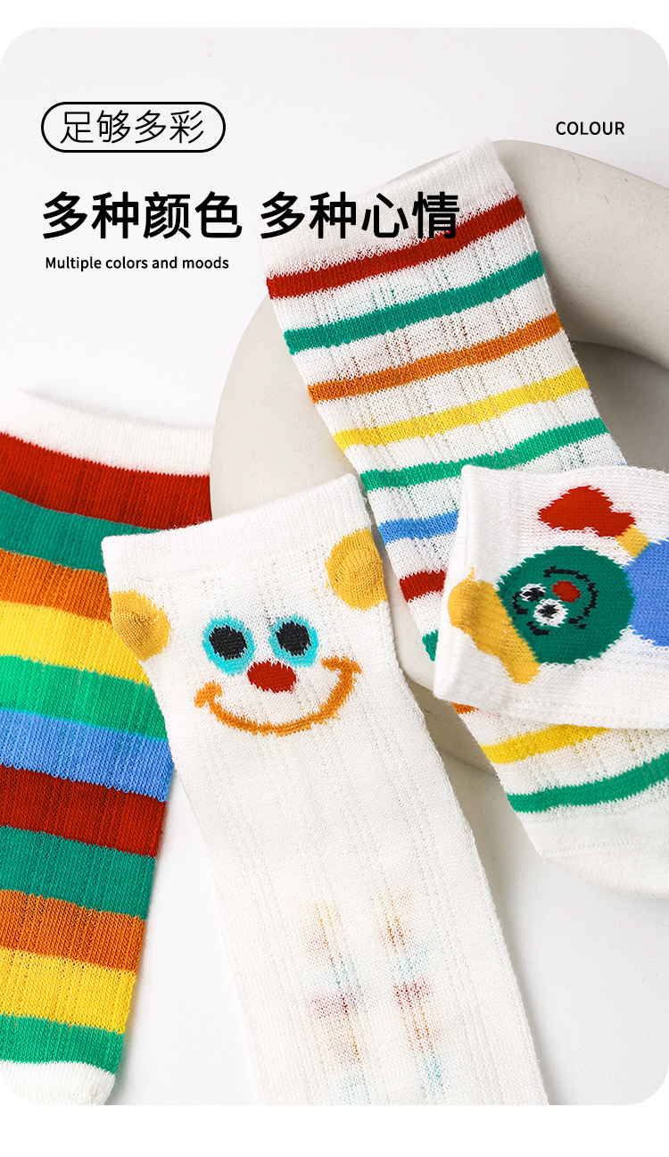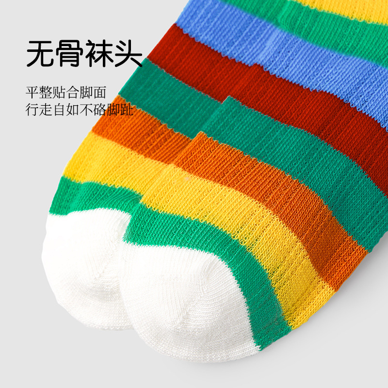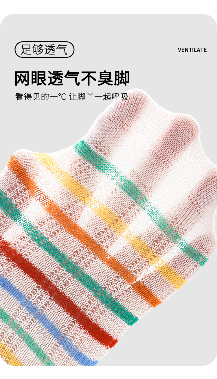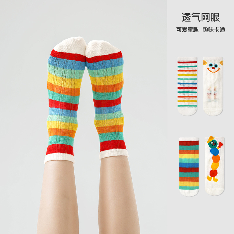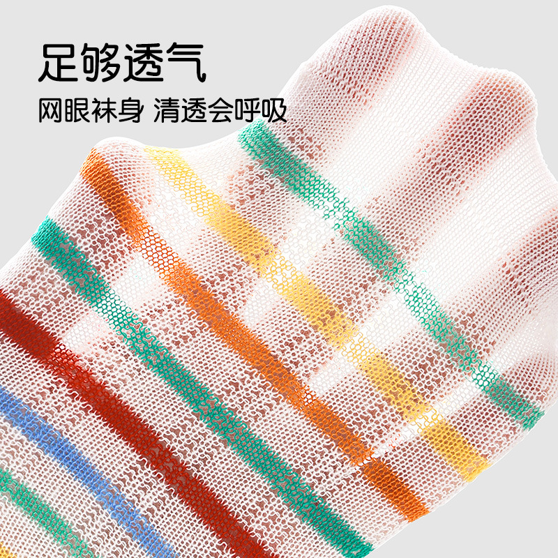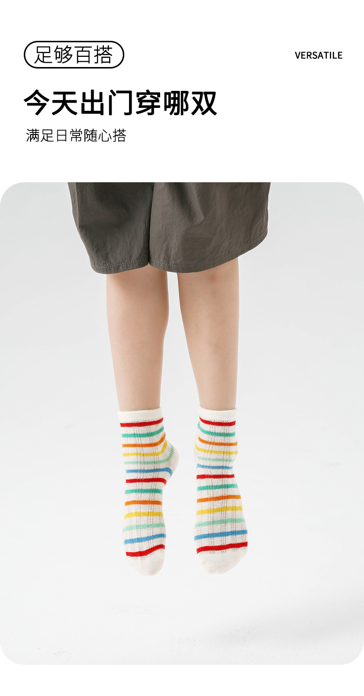 24春夏新款网眼透气清凉干爽男女童袜子彩虹拼色无骨棉质儿童袜子