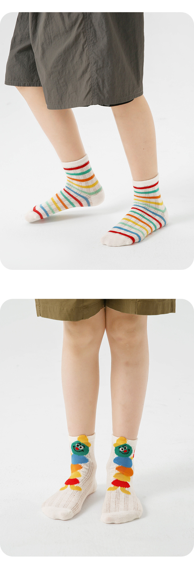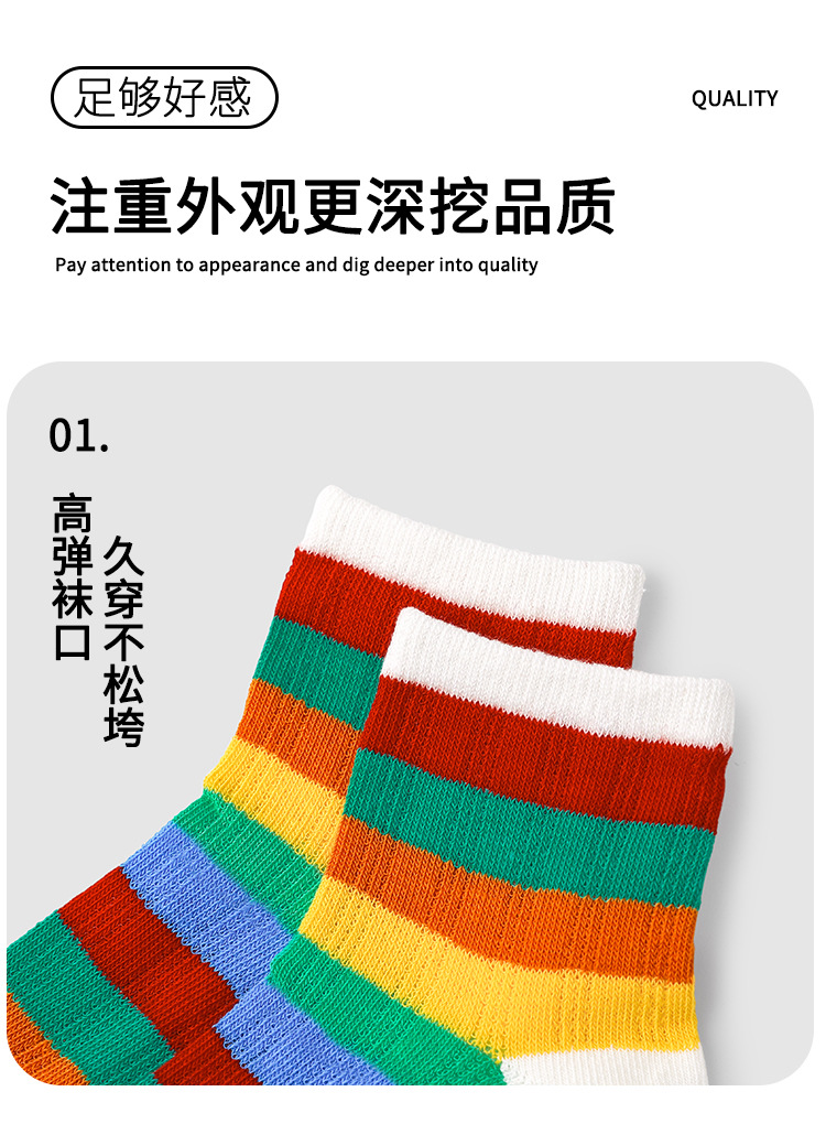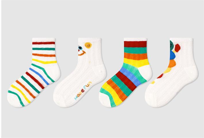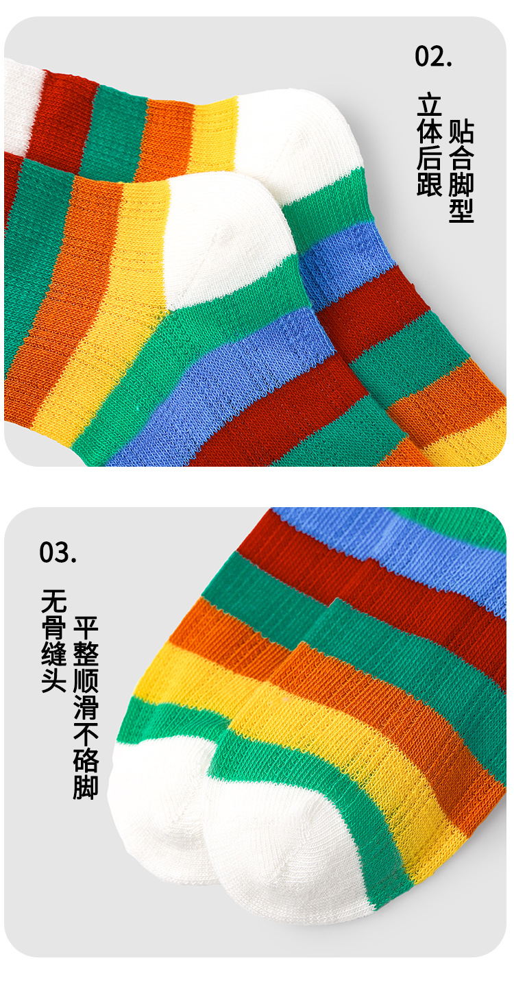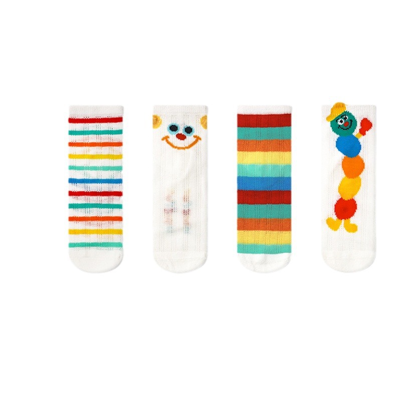 24春夏新款网眼透气清凉干爽男女童袜子彩虹拼色无骨棉质儿童袜子