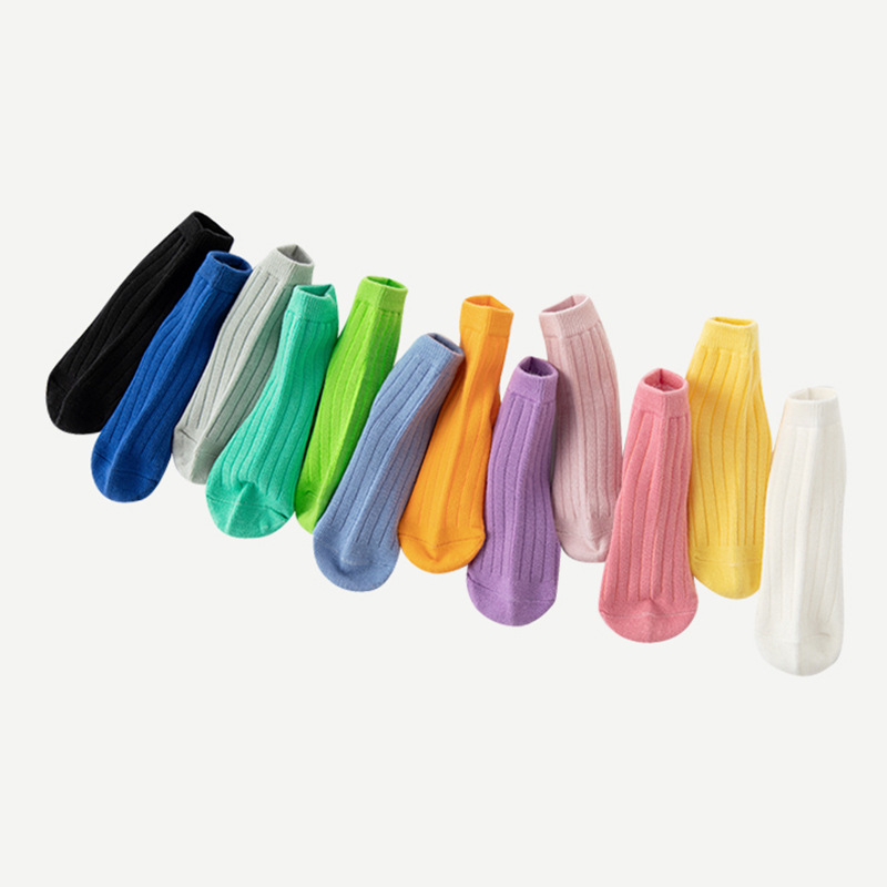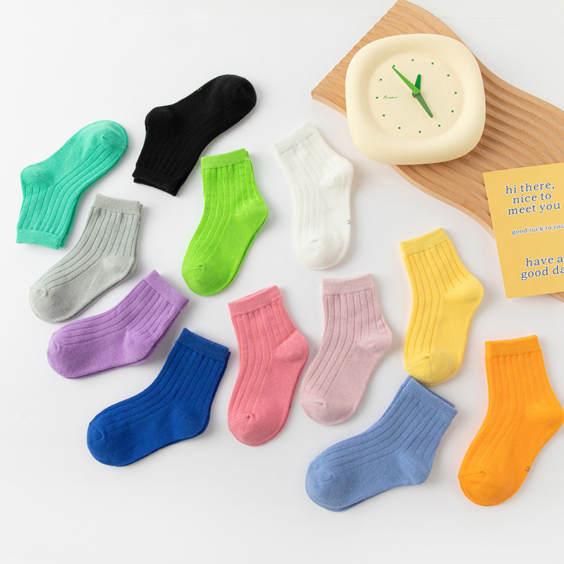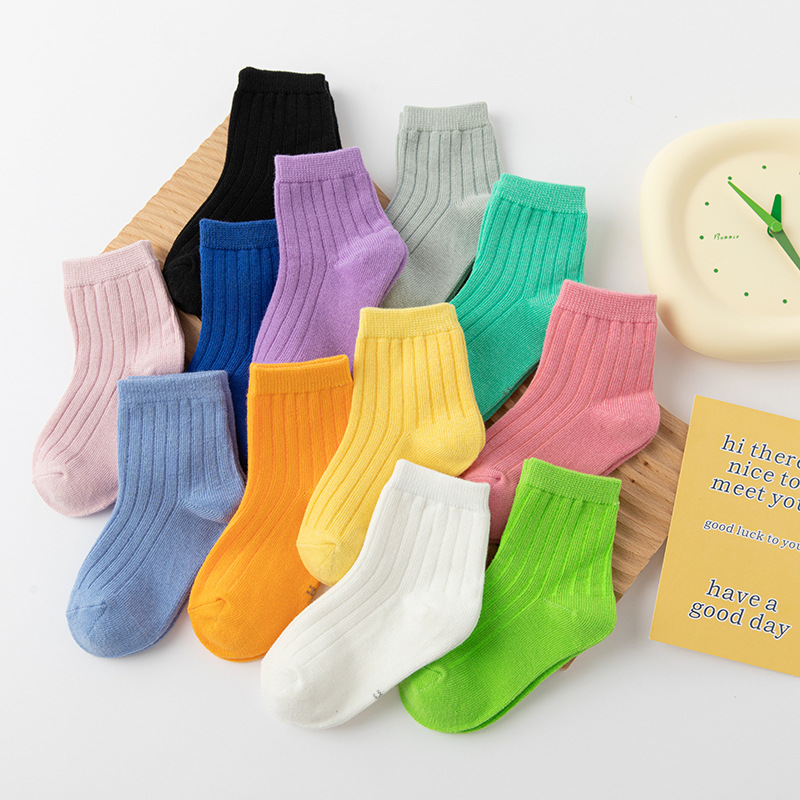 儿童袜子秋冬款糖果色中筒袜男女童韩版纯色棉袜透气堆堆袜宝宝袜