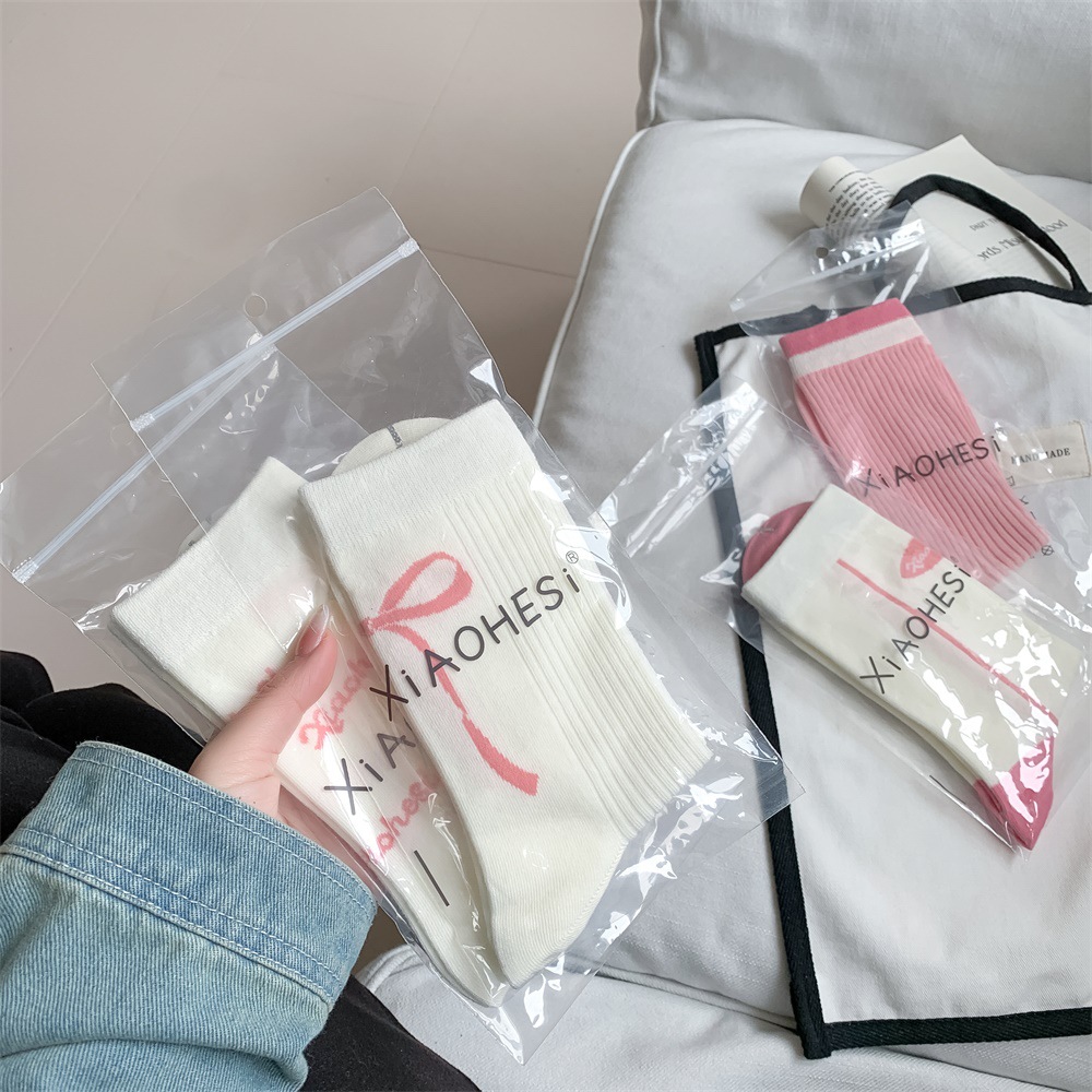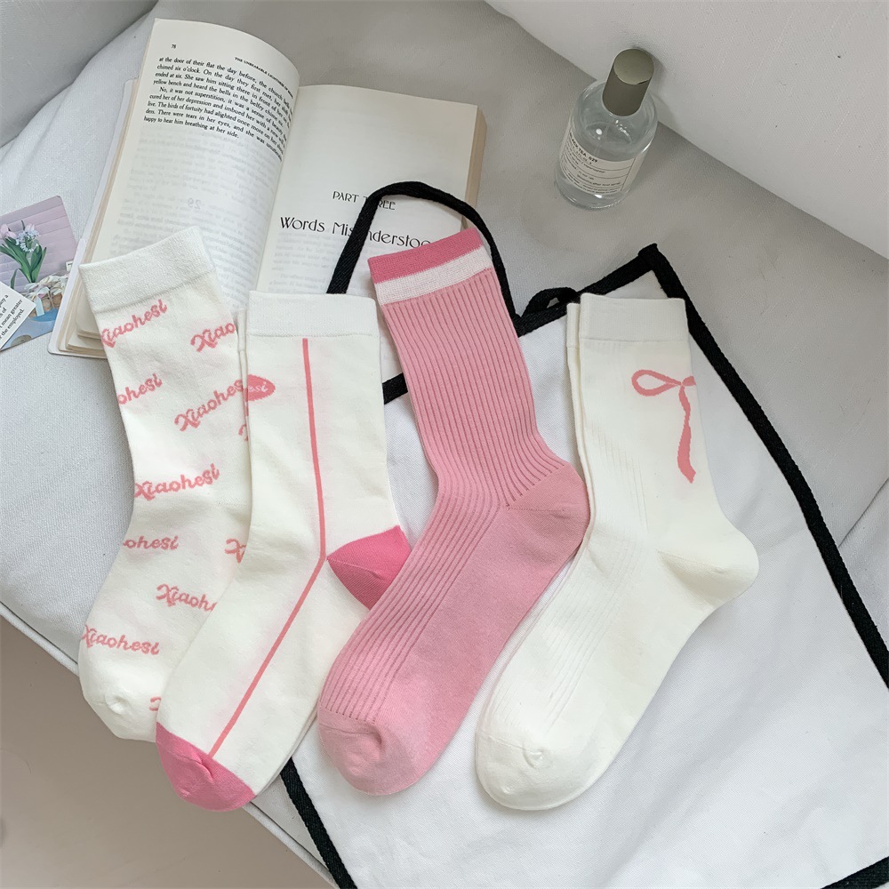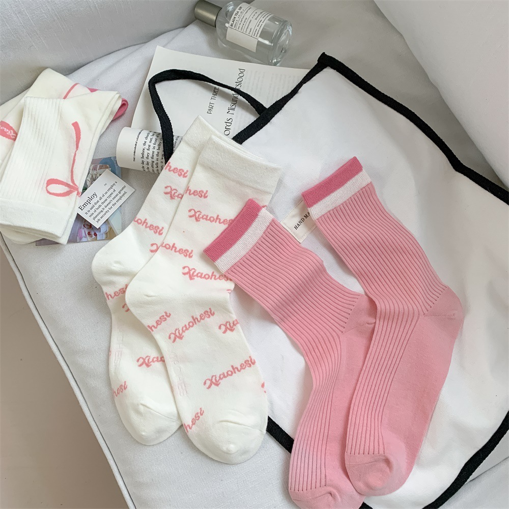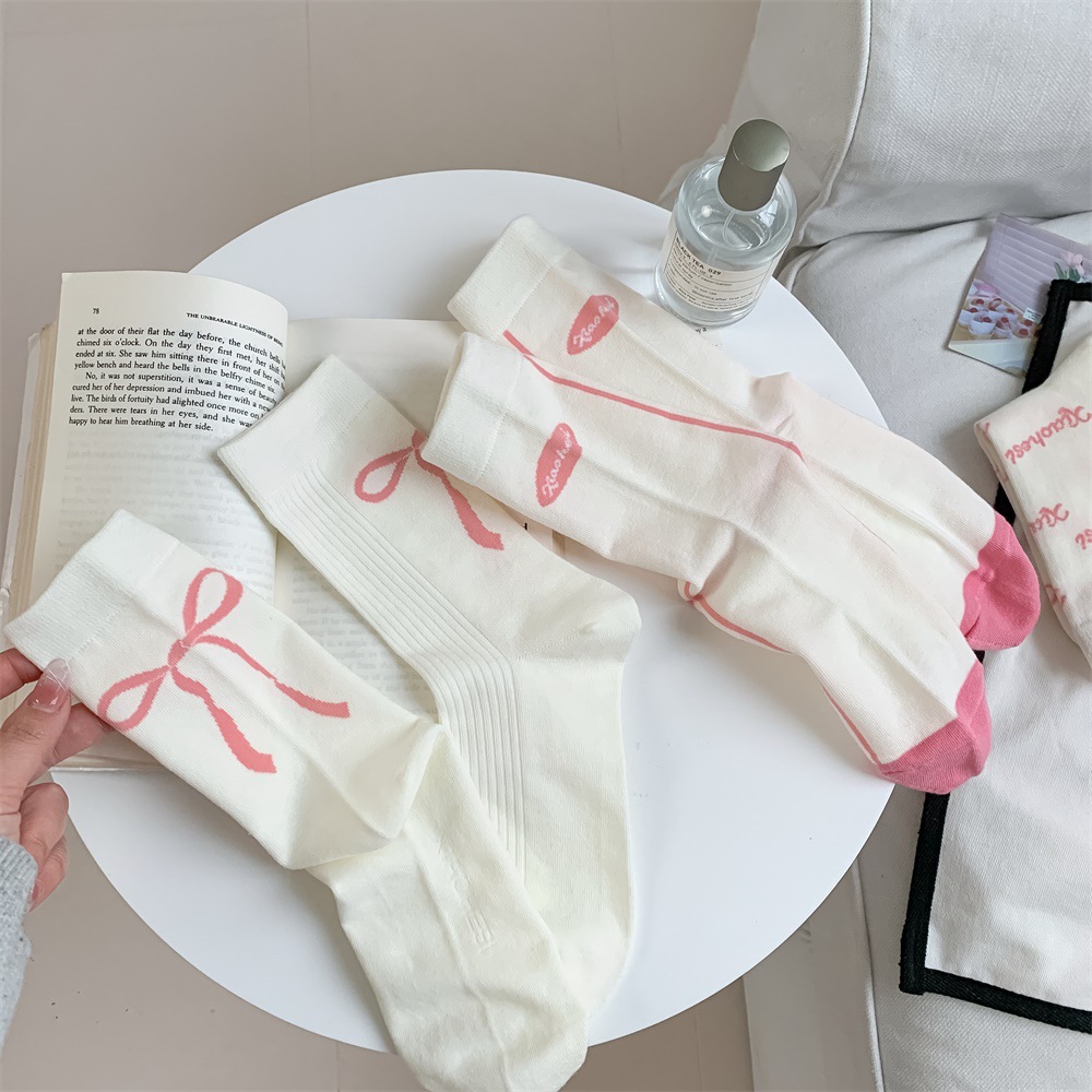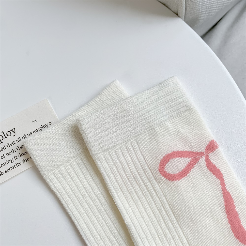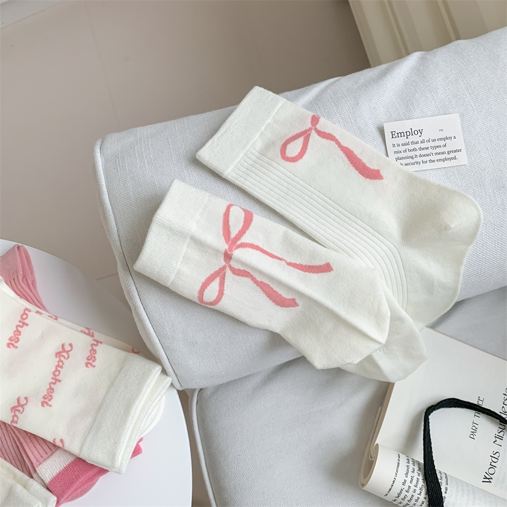 韩国东大门粉色蝴蝶结袜子女中筒袜春夏季日系ins少女学院风长袜