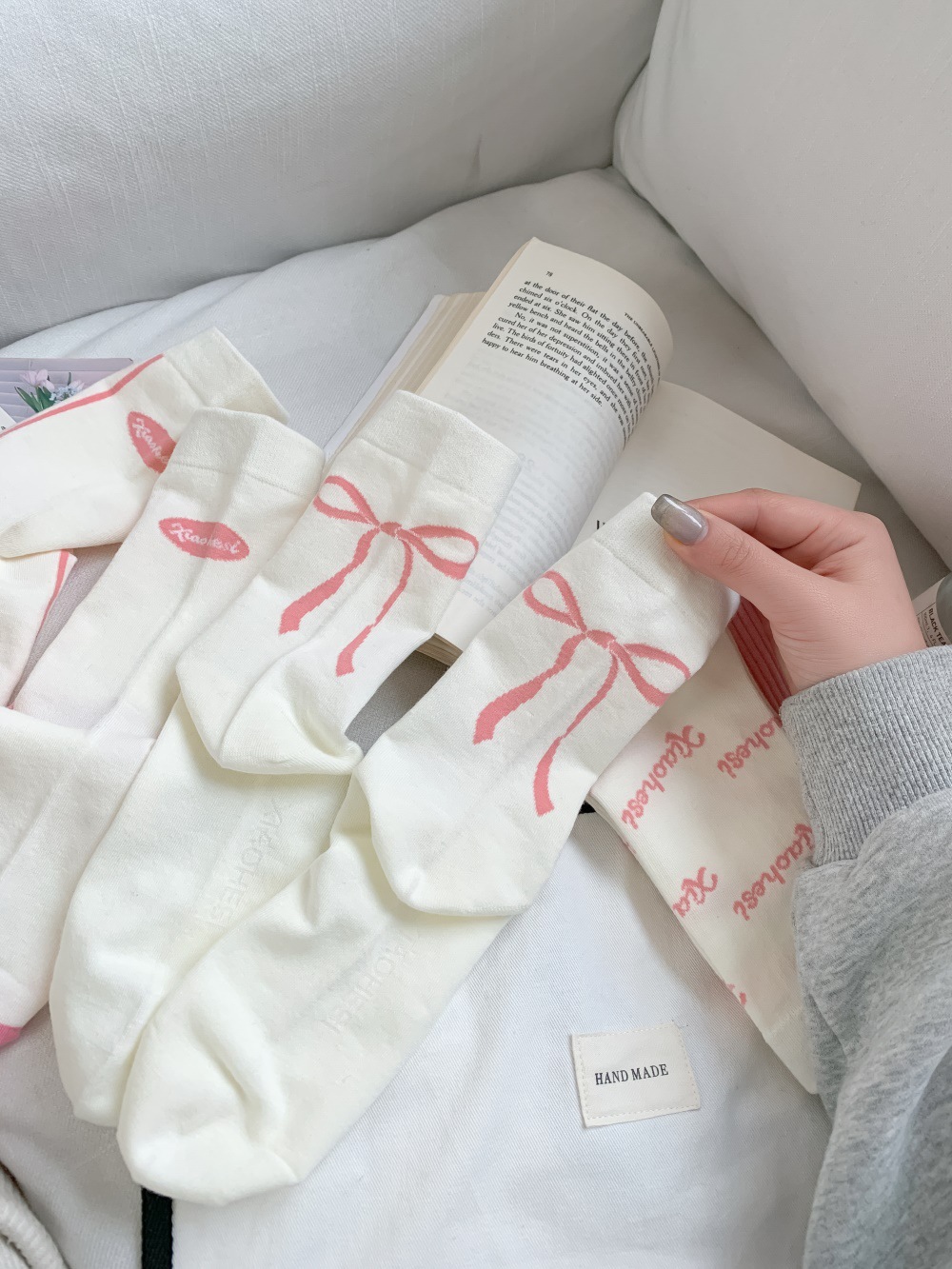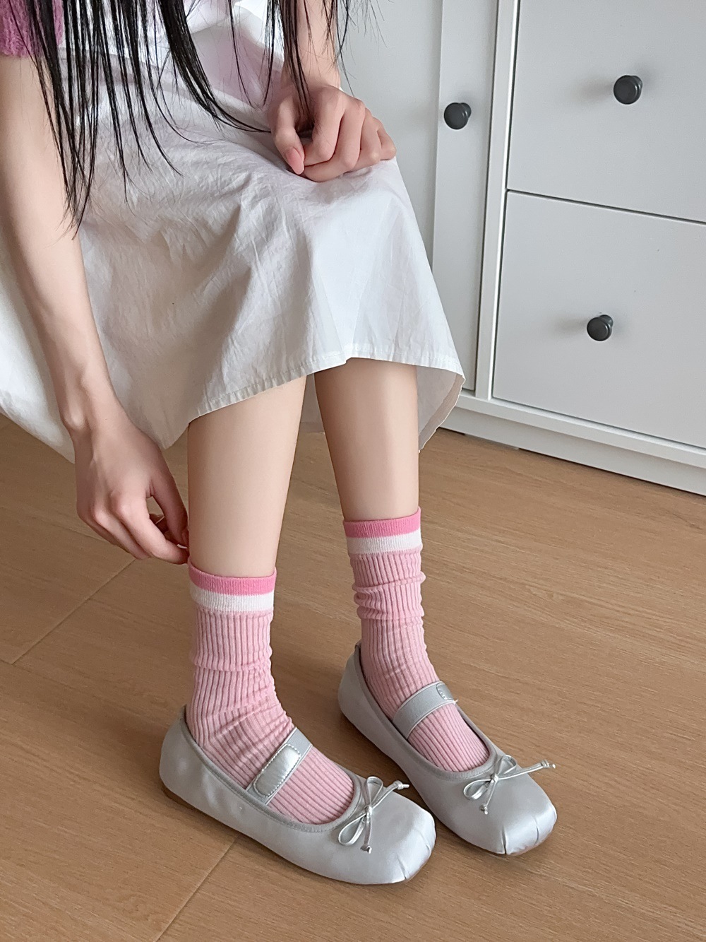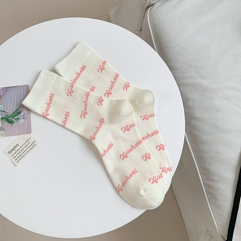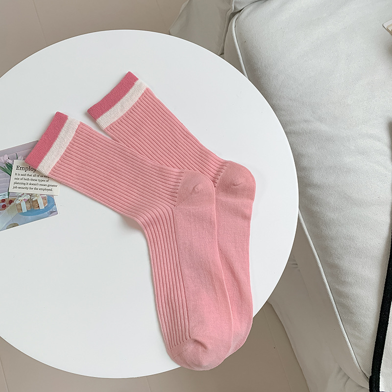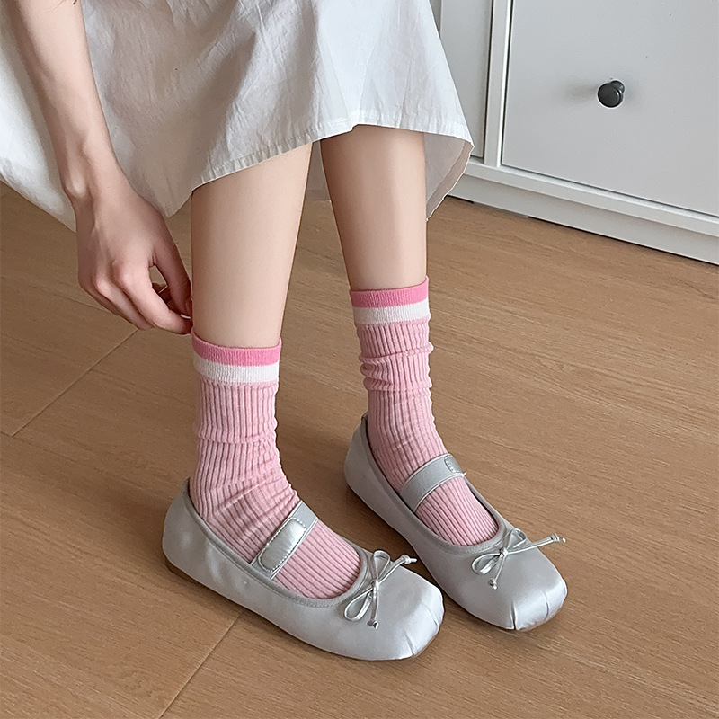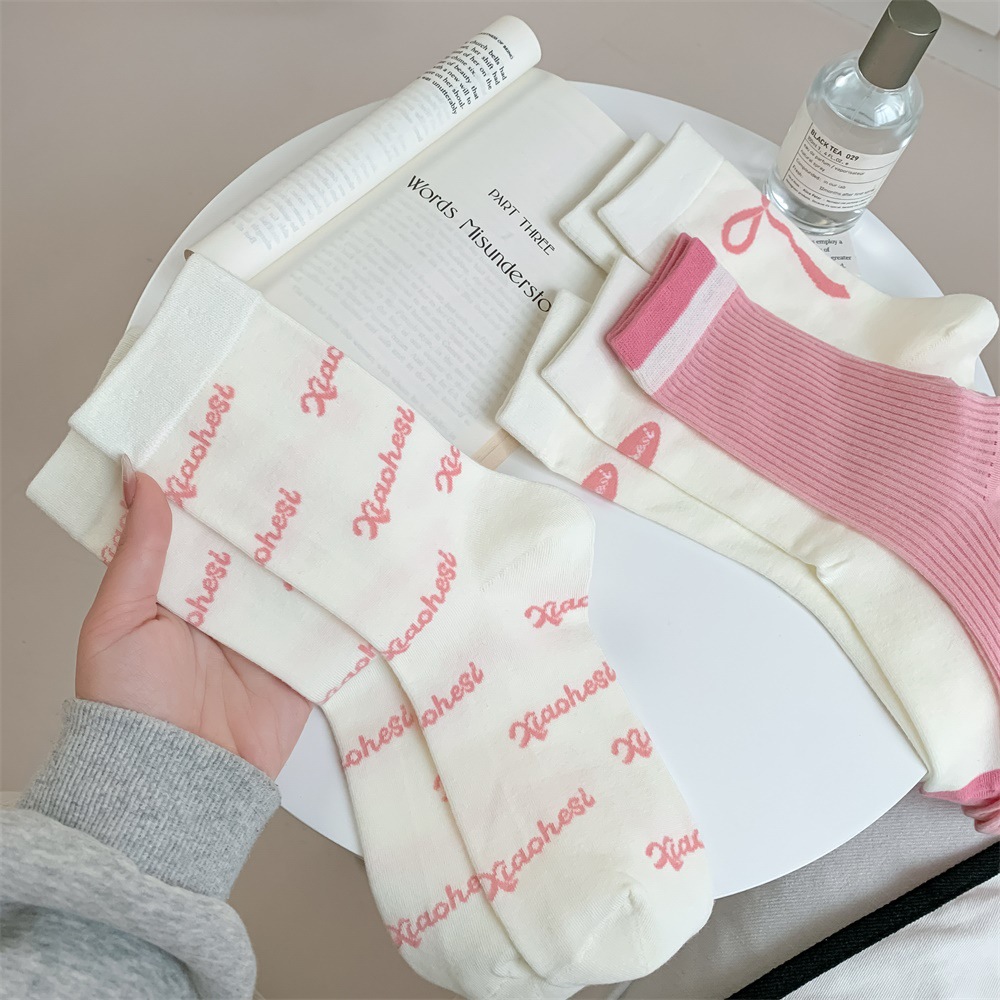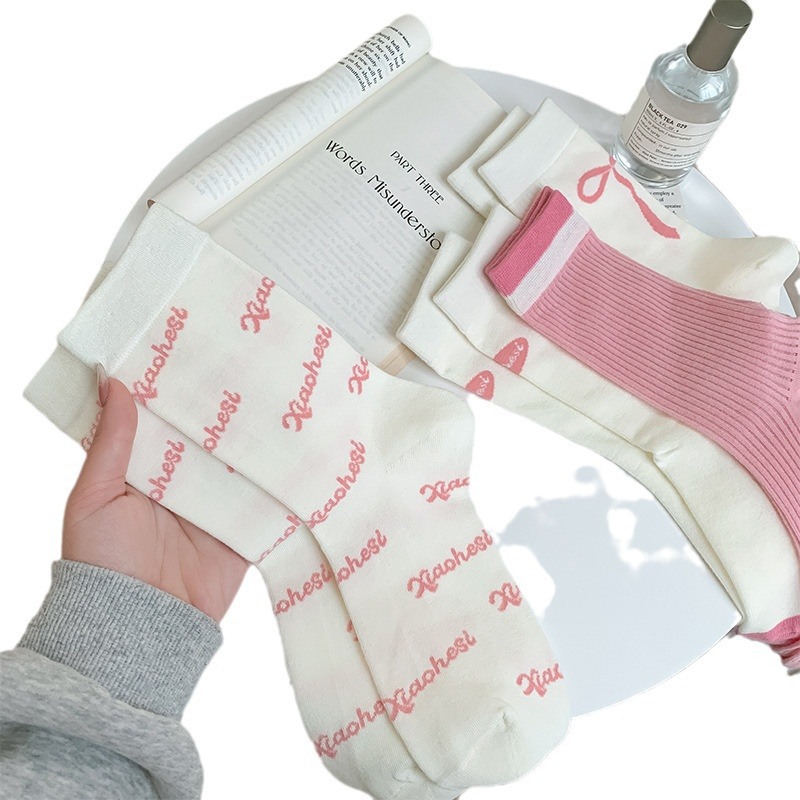 韩国东大门粉色蝴蝶结袜子女中筒袜春夏季日系ins少女学院风长袜