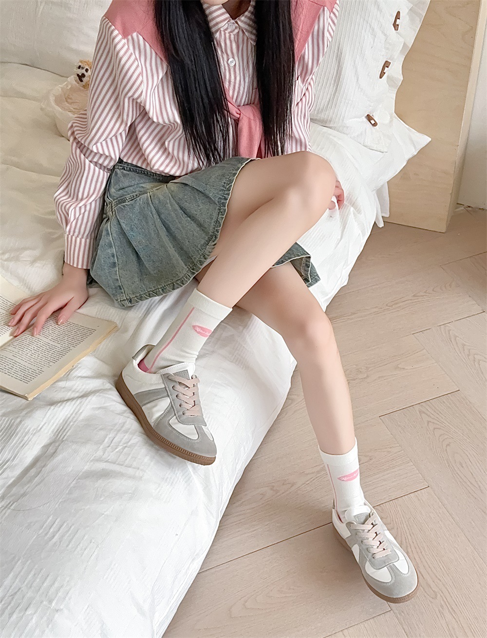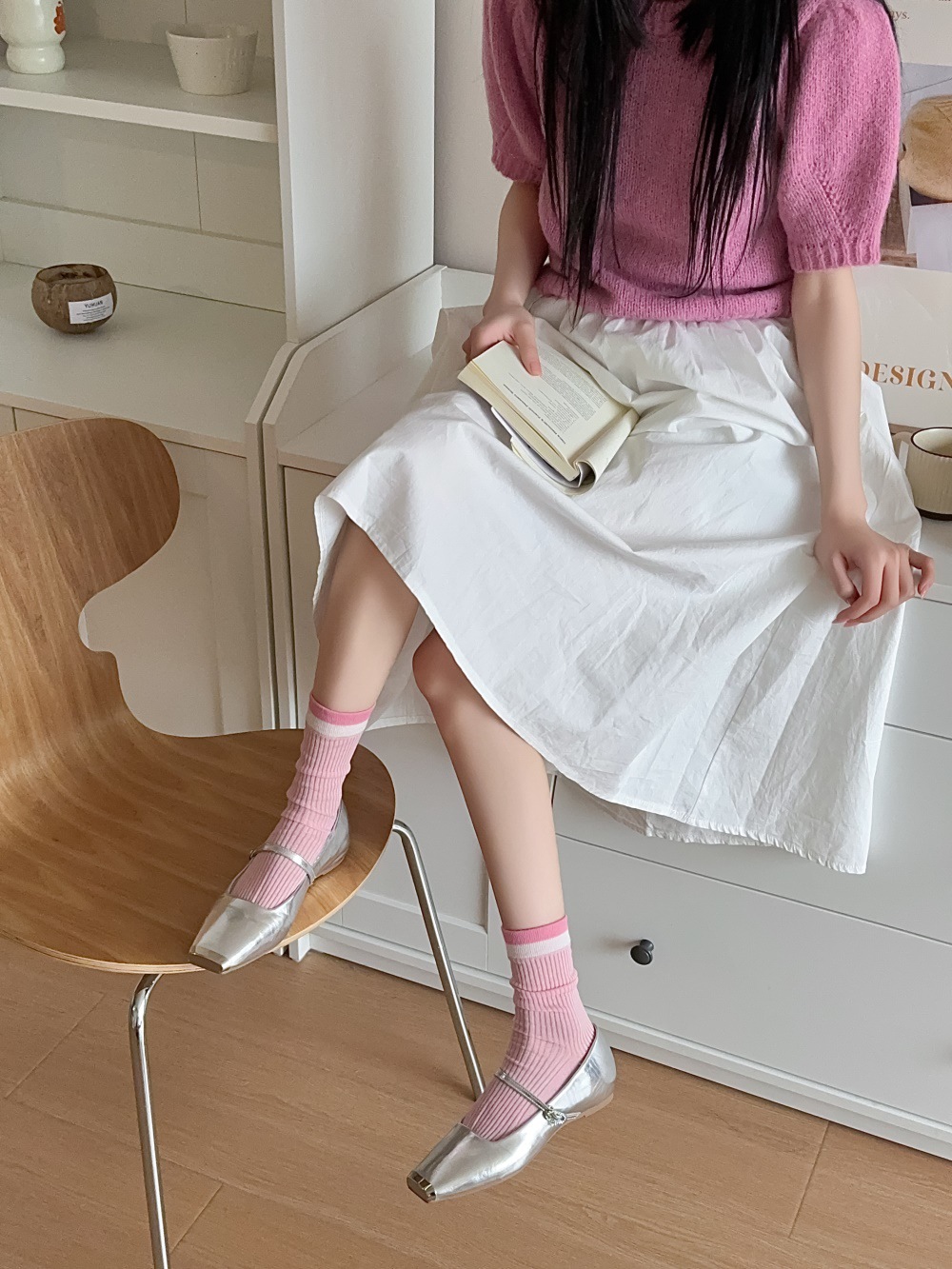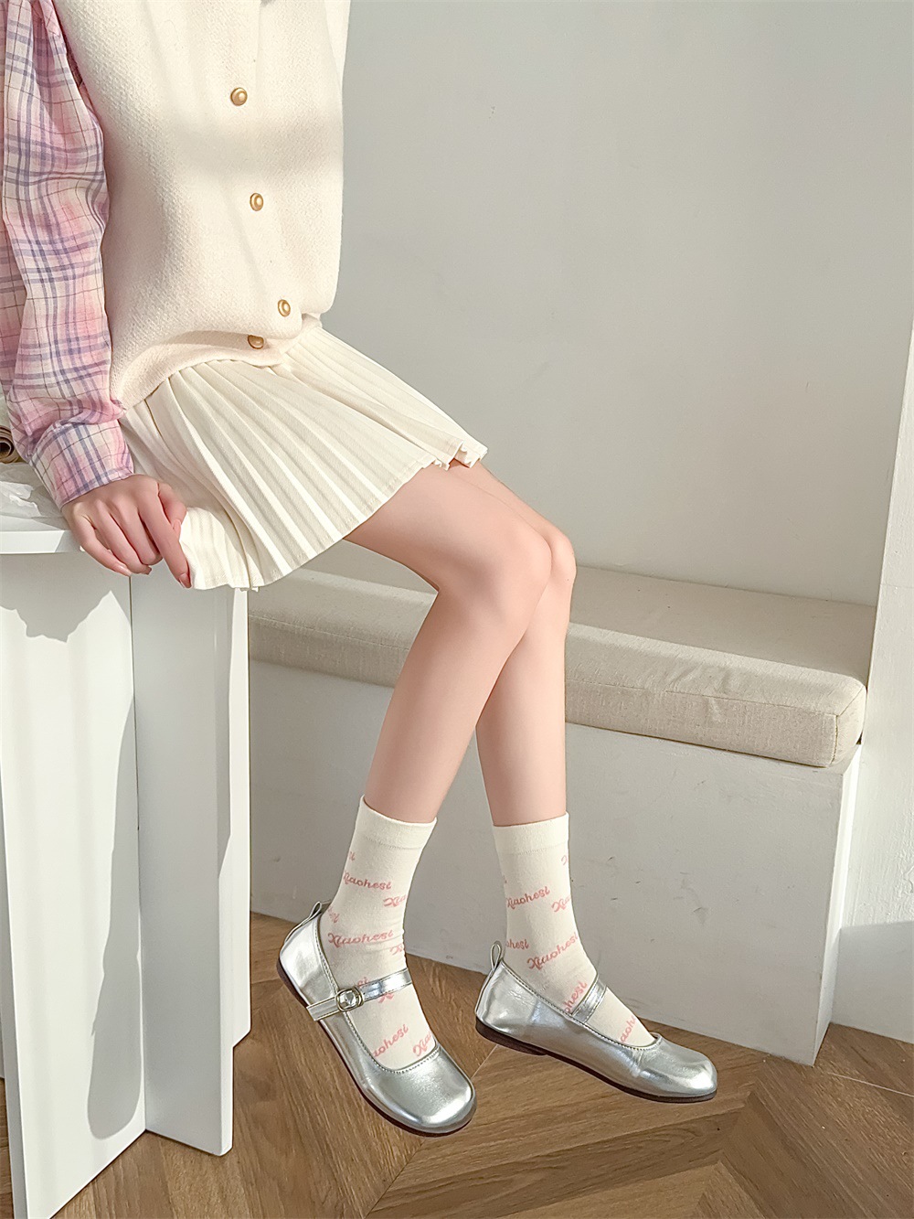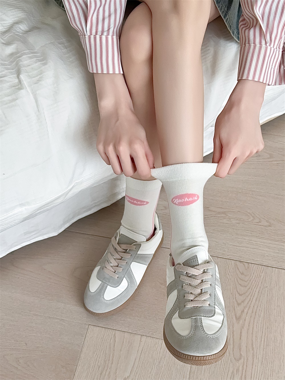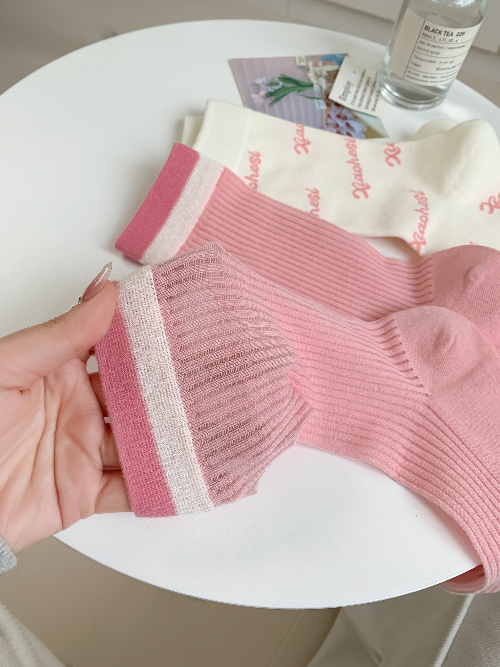 韩国东大门粉色蝴蝶结袜子女中筒袜春夏季日系ins少女学院风长袜